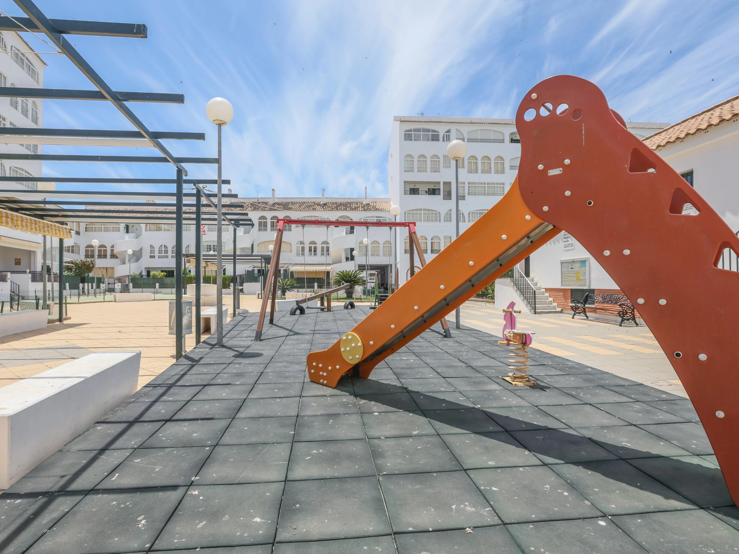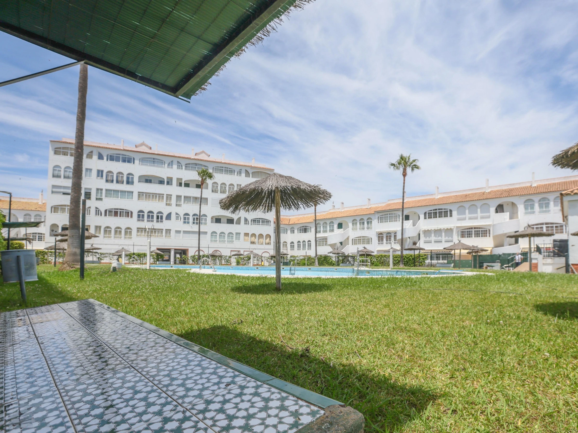El exterior de la propiedad es perfecto para aprovechar el clima cálido del sur. Encontrarán una piscina comunitaria de cloro con unas medidas de 35 metros de largo por 21 metros de ancho y una profundidad que varía entre el 1.20m y 1.90 y podrán relajarse tomando el sol en la zona de césped o refrescarse dándose una ducha de agua dulce en el exterior. Tengan en cuenta que al ser una urbanización tienen vecinos directos.