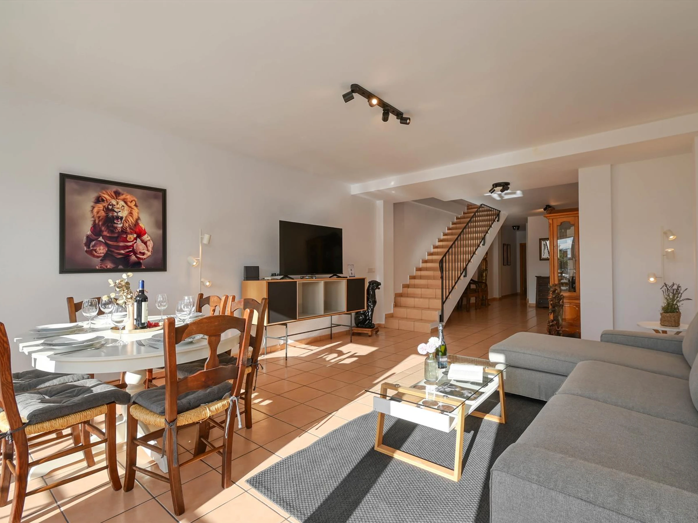 El apartamento dispone de 2 dormitorios y 2 baños, distribuidos en 2 plantas. El confort y la cercanía de la playa, sitios para salir, actividades deportivas, zonas de entretenimiento, lugares para ir de compras, lugares de interés y cultura hacen de este apartamento un alojamiento apropiado para pasar sus vacaciones en España con su familia, sus amigos y sus mascotas.