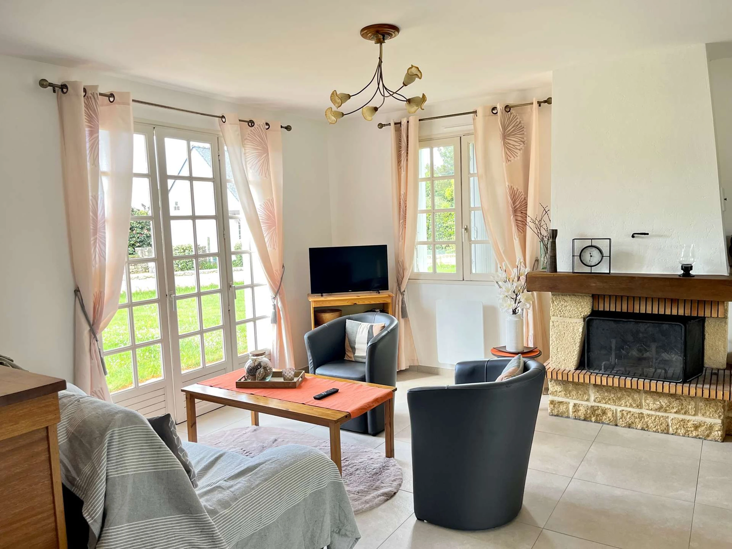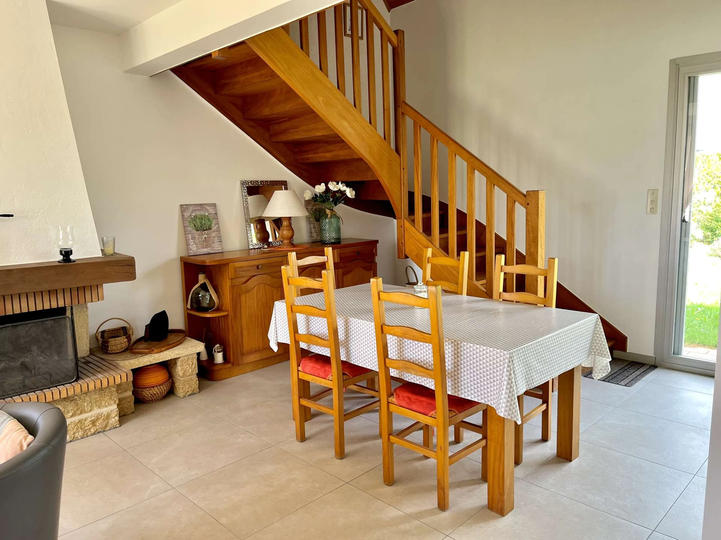 Ven a disfrutar de esta casa adosada con garaje situada en una zona residencial arbolada a 3 km de las playas de Kerhilio. Todos los comercios a 600m. Carnac 9 kilómetros.
