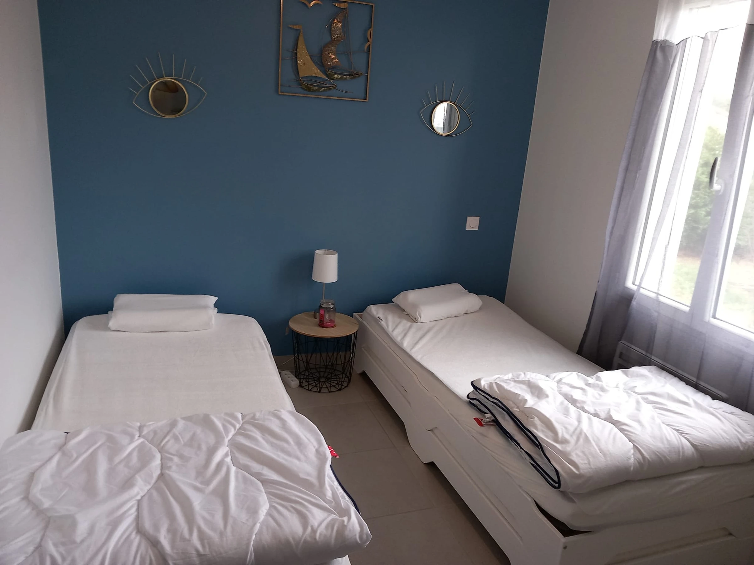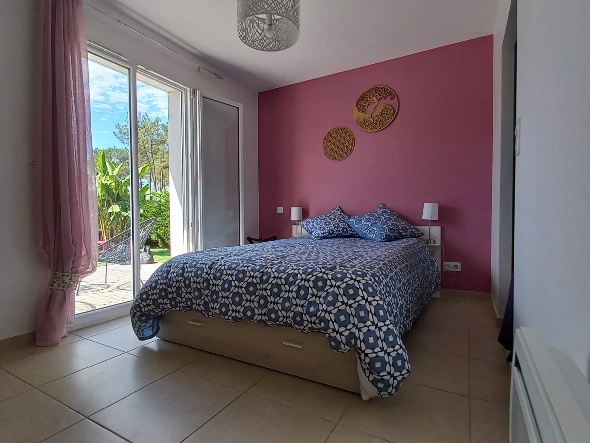 La casa tiene dos dormitorios. El primer dormitorio está equipado con una cama de 140 cm y un baño privado con WC. El segundo dormitorio dispone de dos camas de 80 cm que se pueden juntar para formar una cama de 160 cm y además dispone de baño privado. Un segundo baño está separado para mayor comodidad. El aire acondicionado reversible garantiza un confort óptimo sea cual sea la estación del año. También podrá beneficiarse del Wi-Fi para mantenerse conectado durante su estancia, ya sea por ocio o por necesidades profesionales.