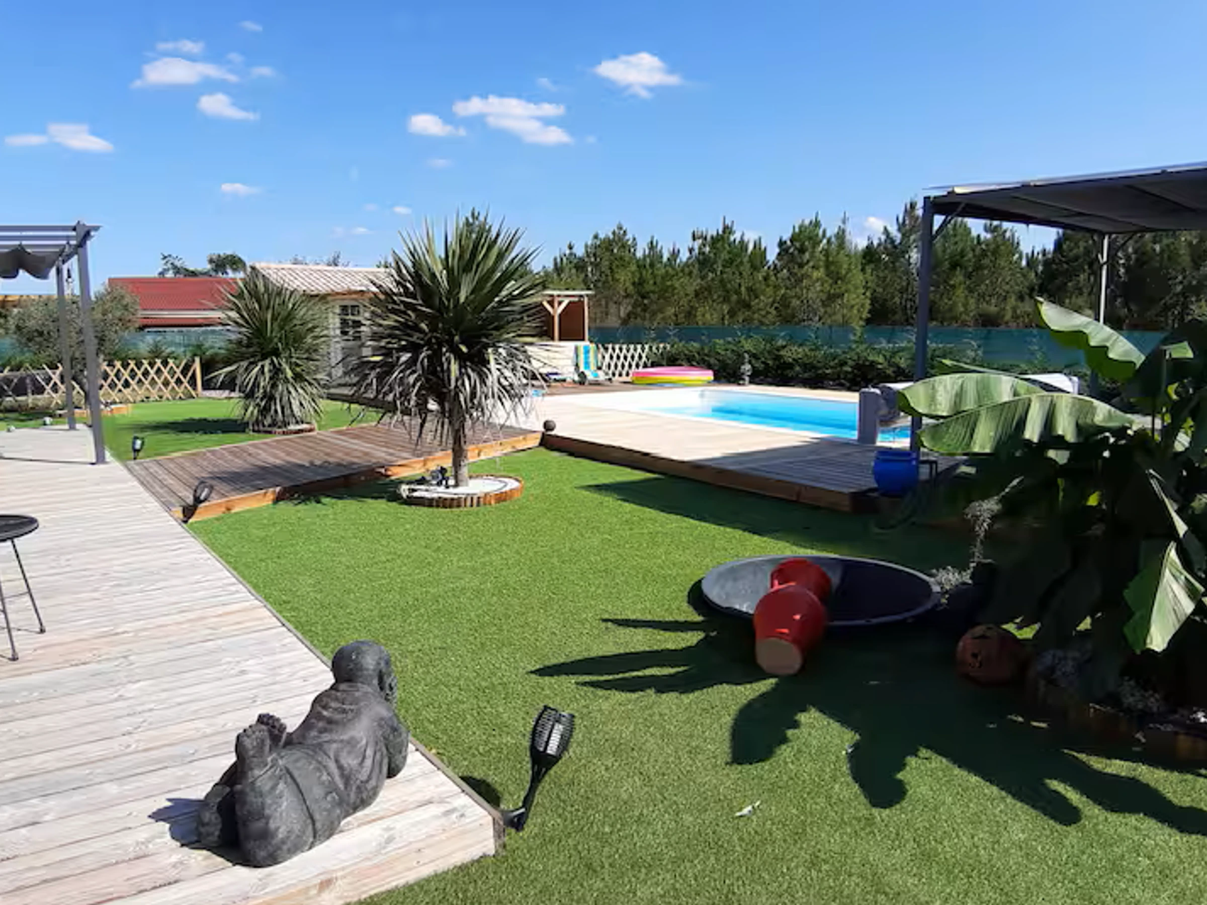 Ven a pasar unas vacaciones inolvidables en esta encantadora casa situada en Escource, en la región de las Landas, al borde del bosque. Este entorno natural y tranquilo le ofrece todo el confort necesario para una agradable estancia en familia o con amigos. Además, Mimizan y sus playas están a solo 20 minutos en coche, lo que le brinda fácil acceso al océano y a las actividades de verano.