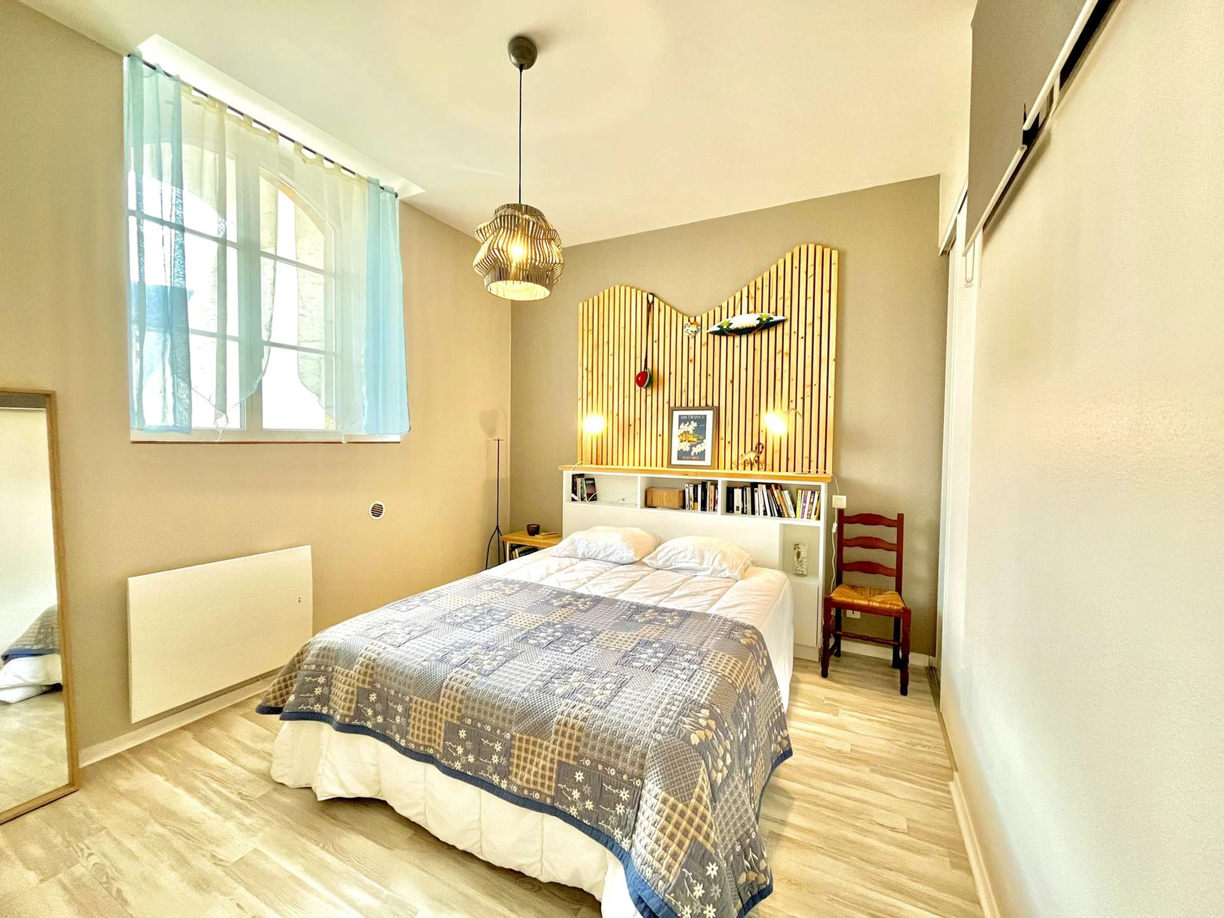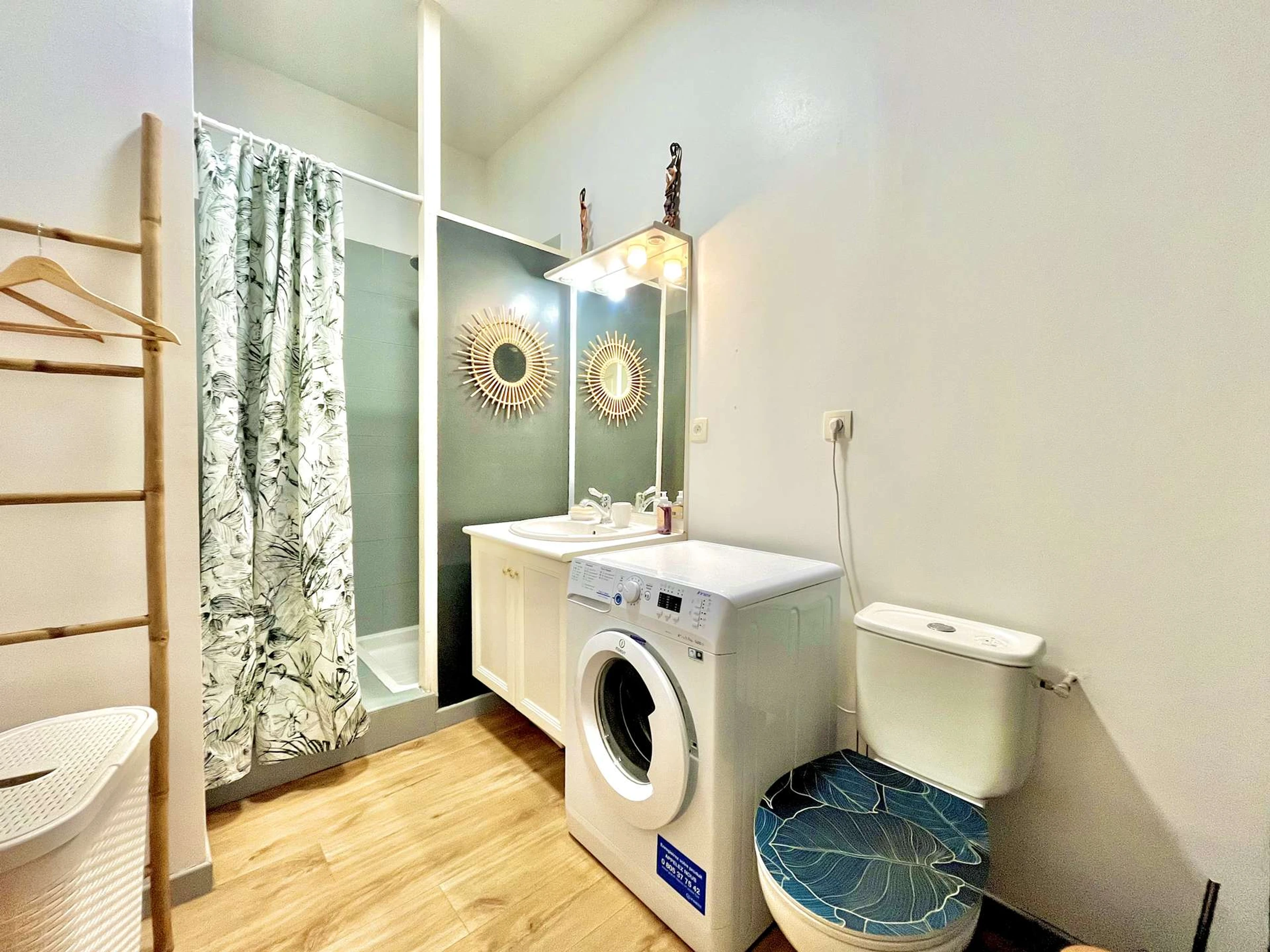 Baño: Equipado con una moderna ducha, lavabo, toallero calefactado, lavadora y secador de pelo. La habitación cuenta con un aseo y ventilación mecánica controlada (VMC) para un confort óptimo.