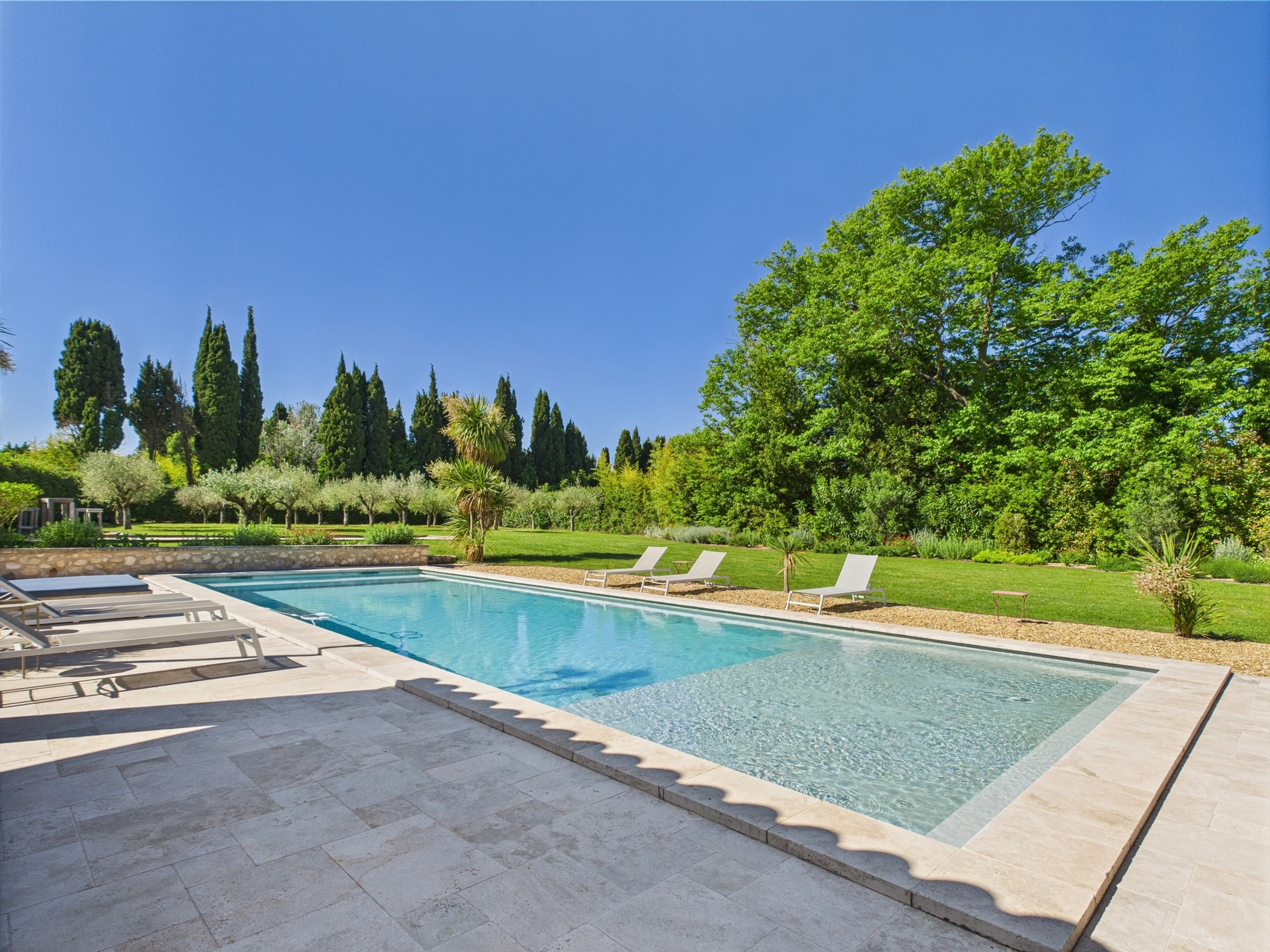 El exterior es igualmente atractivo, con una piscina de 14 x 6 m y su caseta de piscina. Esta casa de vacaciones combina comodidad, modernidad y espacio y ofrece un entorno idílico en los Alpilles. Caerá bajo el hechizo de esta magnífica propiedad... ¡diríjase a Eygalières!