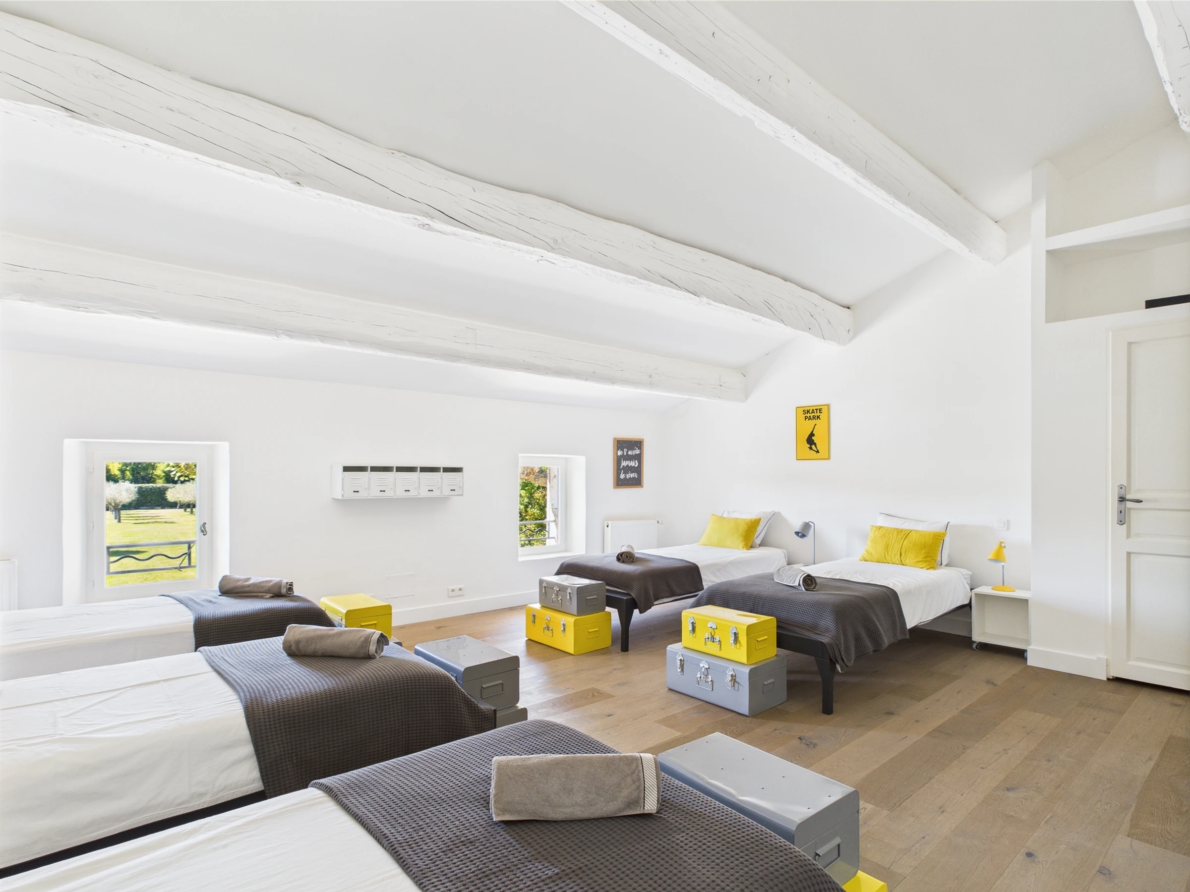 Completamente renovada, cada habitación tiene su propio carácter y universo. Con una superficie de 350 m², "El Pocomas" se distribuye en dos niveles y ofrece un amplio espacio habitable que incluye una cocina totalmente equipada, un salón/comedor, una sala de televisión, una sala de billar y 8 dormitorios, incluido un dormitorio. con 5 camas individuales, con capacidad para 19 personas. Es el lugar perfecto para unas vacaciones en familia o con amigos, donde disfrutaréis plenamente del placer de estar juntos.