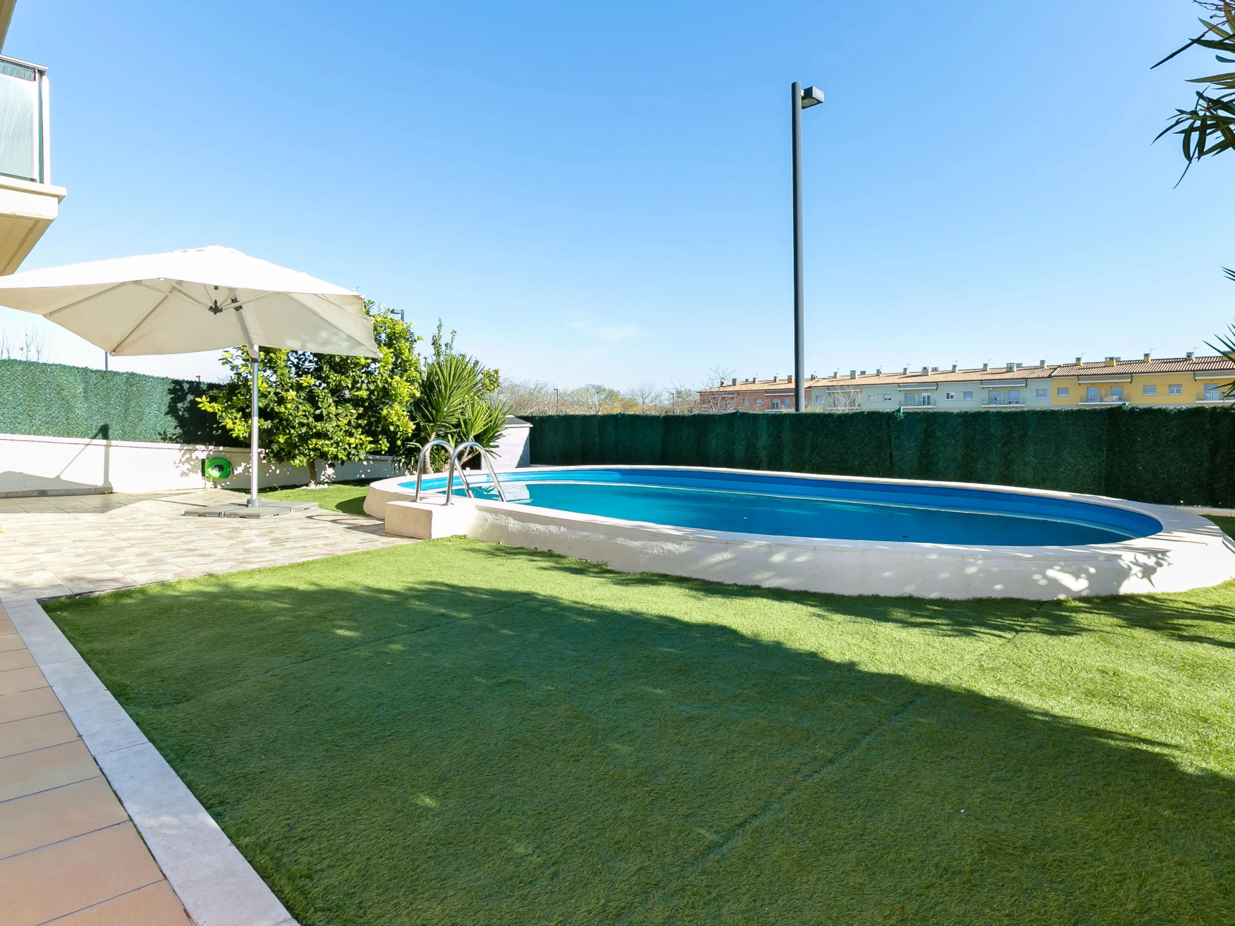 Apartamento muy agradable situado a la entrada de Figueres, con piscina y jardin privados. Consta de 3 dormitorios (un dormitorio doble con baño privado, otro dormitorio doble y un dormitorio con literas), un salón/comedor luminoso con acceso directo a la piscina y al jardín, una cocina independiente moderna y muy bien equipada y un segundo baño con ducha . Este apartamento tiene una amplia zona exterior privada con terraza, jardín y piscina privada. Equipado con: lavadora, lavavajillas, horno, microondas, WIFI, TV vía satélite, aire acondicionado reversible (en el salón-comedor y los dos dormitorios principales) y aparcamiento privado. Propiedad ideal para aquellos que quieren descubrir el norte de Cataluña: cerca de las playas (Roses, Empuriabrava, Llançà, etc.), a poca distancia del centro de Figueres, donde se encuentra, entre otros, el famoso museo Dalí, y no muy lejos de la Jonquera, de la frontera francesa o de Girona. Fácil de acceso ya que se encuentra cerca de la entrada/salida de la autopista. Figueres ofrece todas las comodidades: supermercados, mercado semanal, tiendas, bares y restaurantes, etc. Este apartamento único, ya que dispone de piscina privada, es el lugar ideal para pasar unas vacaciones agradables en la Costa Brava y descubrir todos sus rincones. [hidden]-58