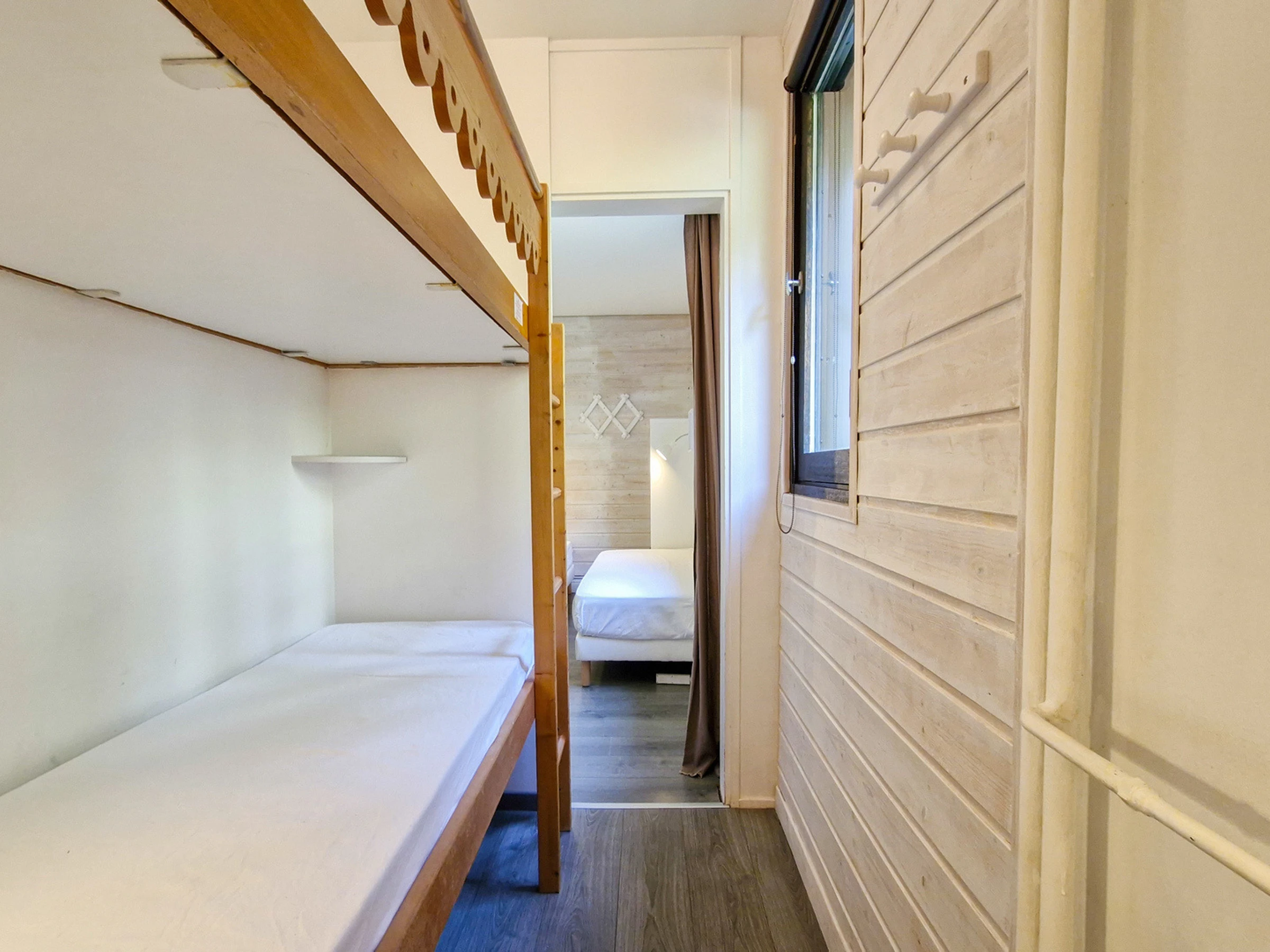- Salón: sofá cama individual + cama nido, TV de pantalla plana, reproductor de DVD.