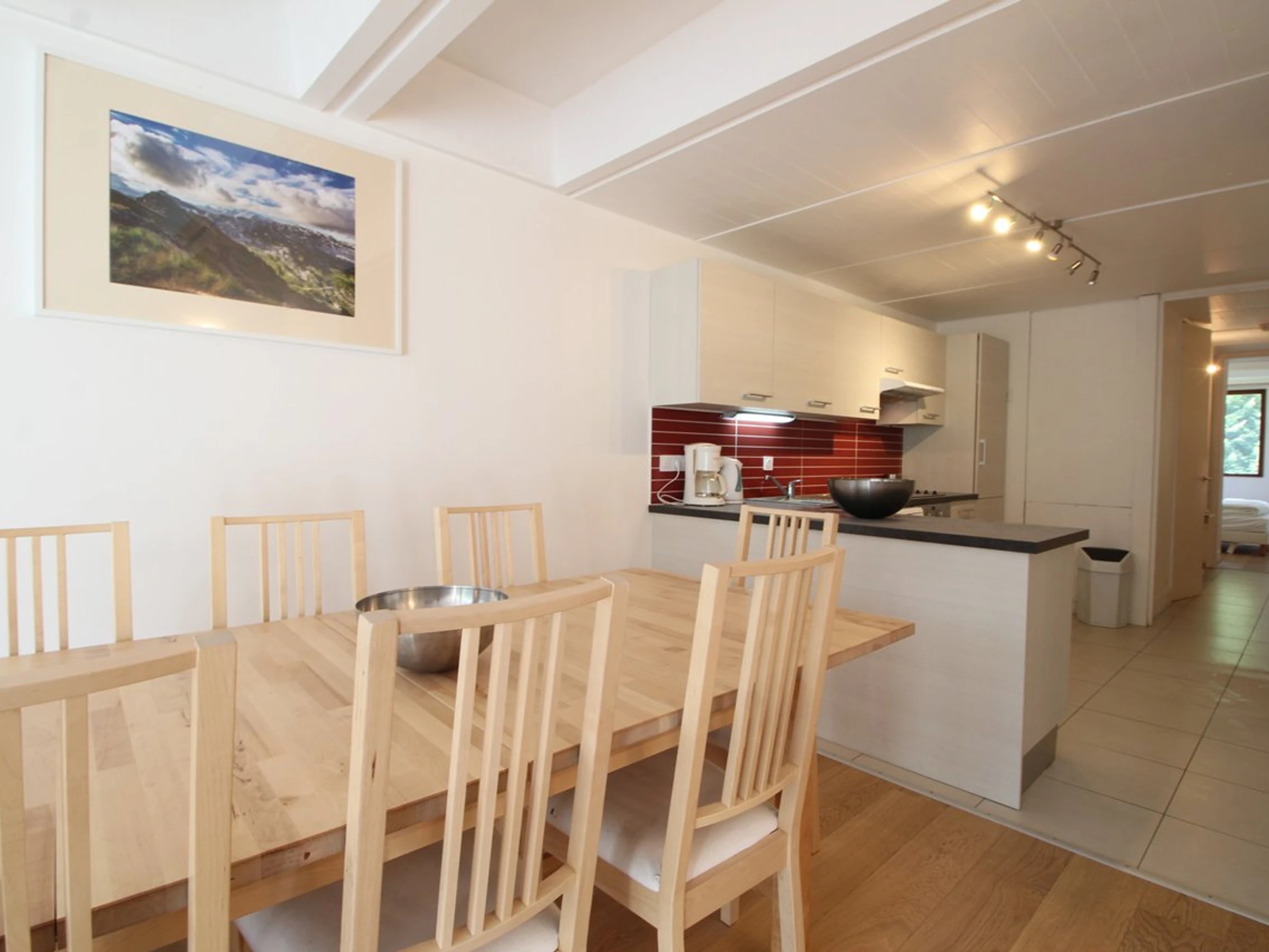 El apartamento tiene capacidad para hasta 8 personas. El salón cuenta con dos sofás cama dobles. El primer dormitorio tiene dos literas (la litera superior no se recomienda para menores de 6 años). El segundo dormitorio tiene dos camas individuales. El baño dispone de bañera y el aseo es independiente. La cocina está totalmente equipada con horno, microondas, vitrocerámica de cuatro fuegos, lavavajillas, frigorífico-congelador y cafetera de filtro. El apartamento también cuenta con TV de pantalla plana. La calefacción y el agua caliente son compartidas. Hay un guardaesquís privado (trastero n.º 6) accesible en la planta baja. El complejo dispone de aparcamiento exterior. No se permite fumar.