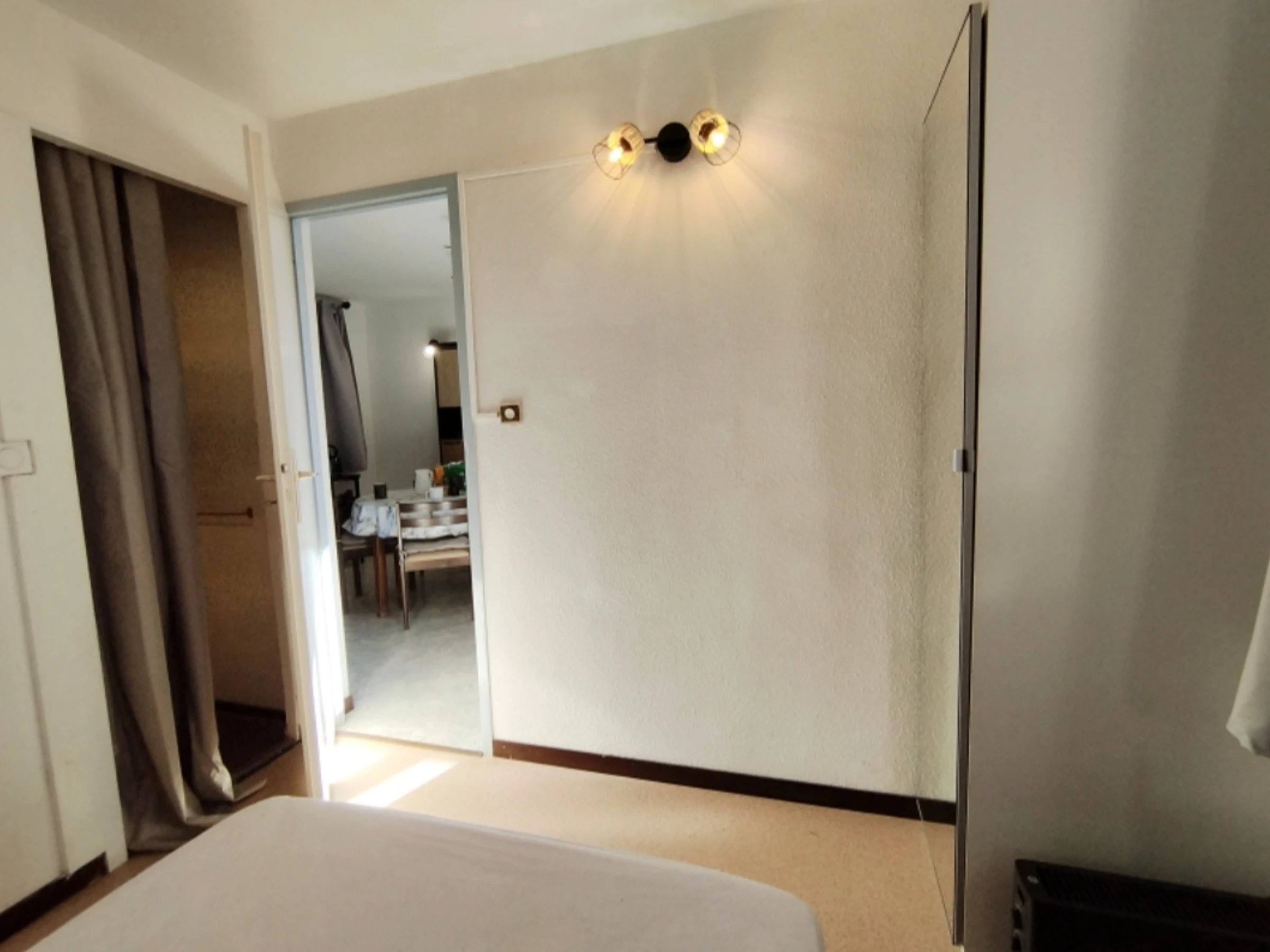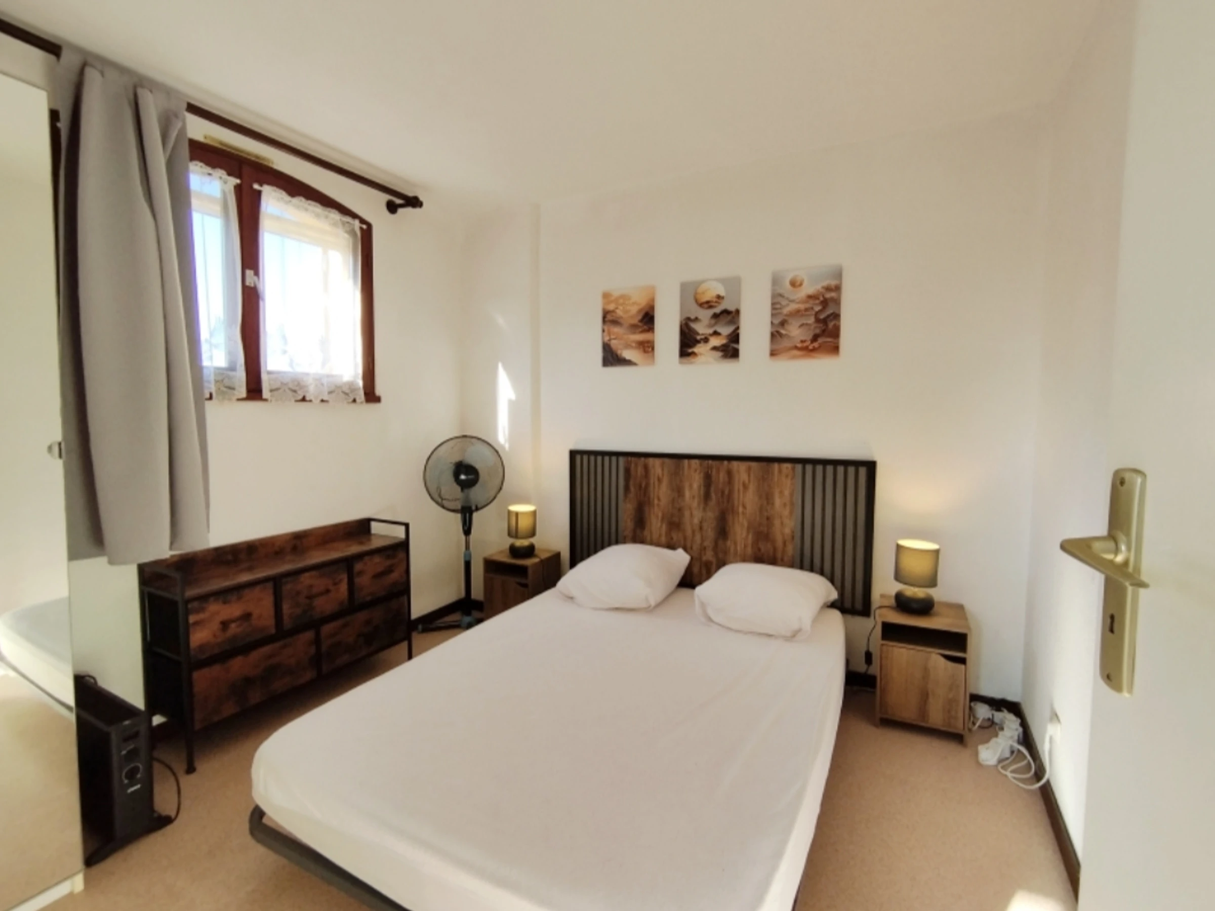 Dormitorio (cama de 140 cm) que da a un pequeño cuarto de ducha/WC.