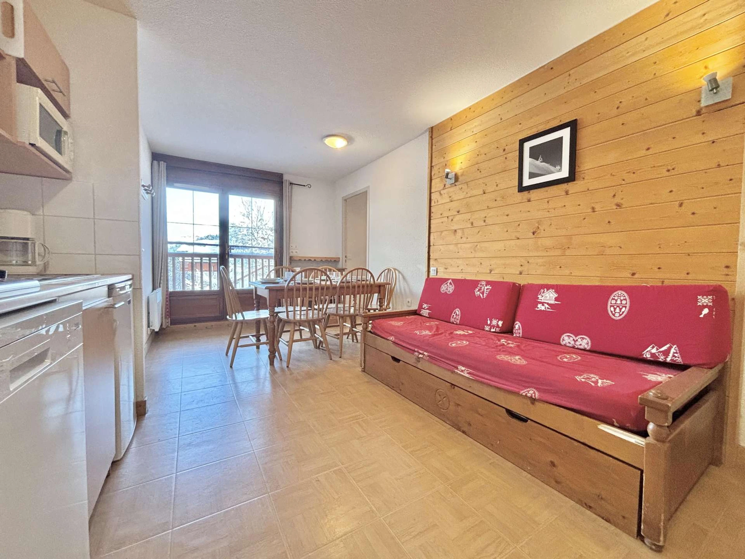 Este alojamiento vacacional se encuentra a pie de las pistas de Flumet, conectado con el Espace Diamant (accesible a pie y regreso en esquís). Se encuentra a unos 5 km de Praz-sur-Arly y a unos 3 km del pueblo de Flumet.