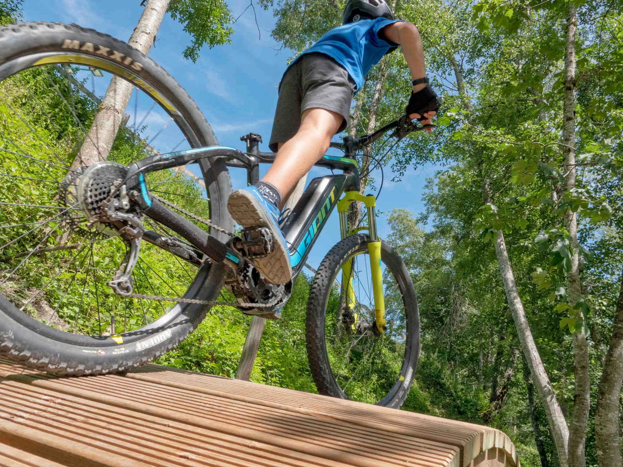 Una zona de petanca, una torre de escalada para principiantes o escaladores avanzados, un bike park con sombra y una estructura de escalada de pyracord de 7,5 metros para los más aventureros. La región circundante también ofrece excepcionales excursiones de un día a los Alpes: