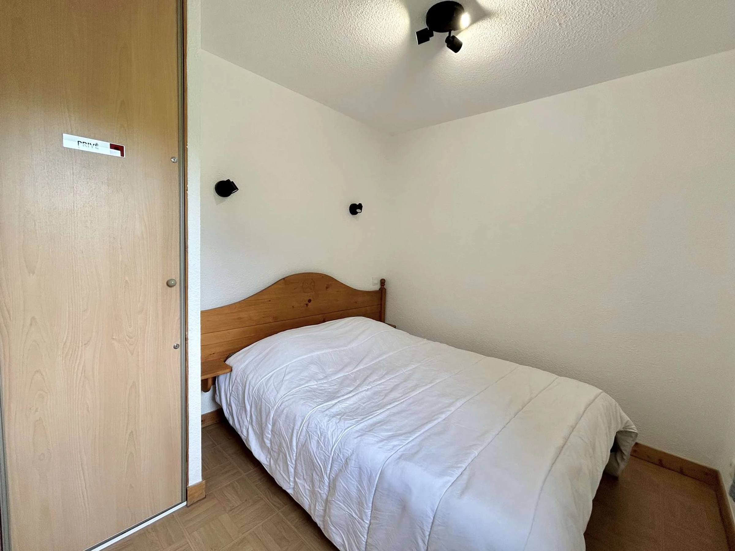 Situado en la planta baja de la residencia, este apartamento de montaña de aproximadamente 37 m² consta de un salón con sofá cama para dos personas, una cocina totalmente equipada abierta al comedor y al salón, un dormitorio con cama de matrimonio, un baño con bañera y un aseo independiente.