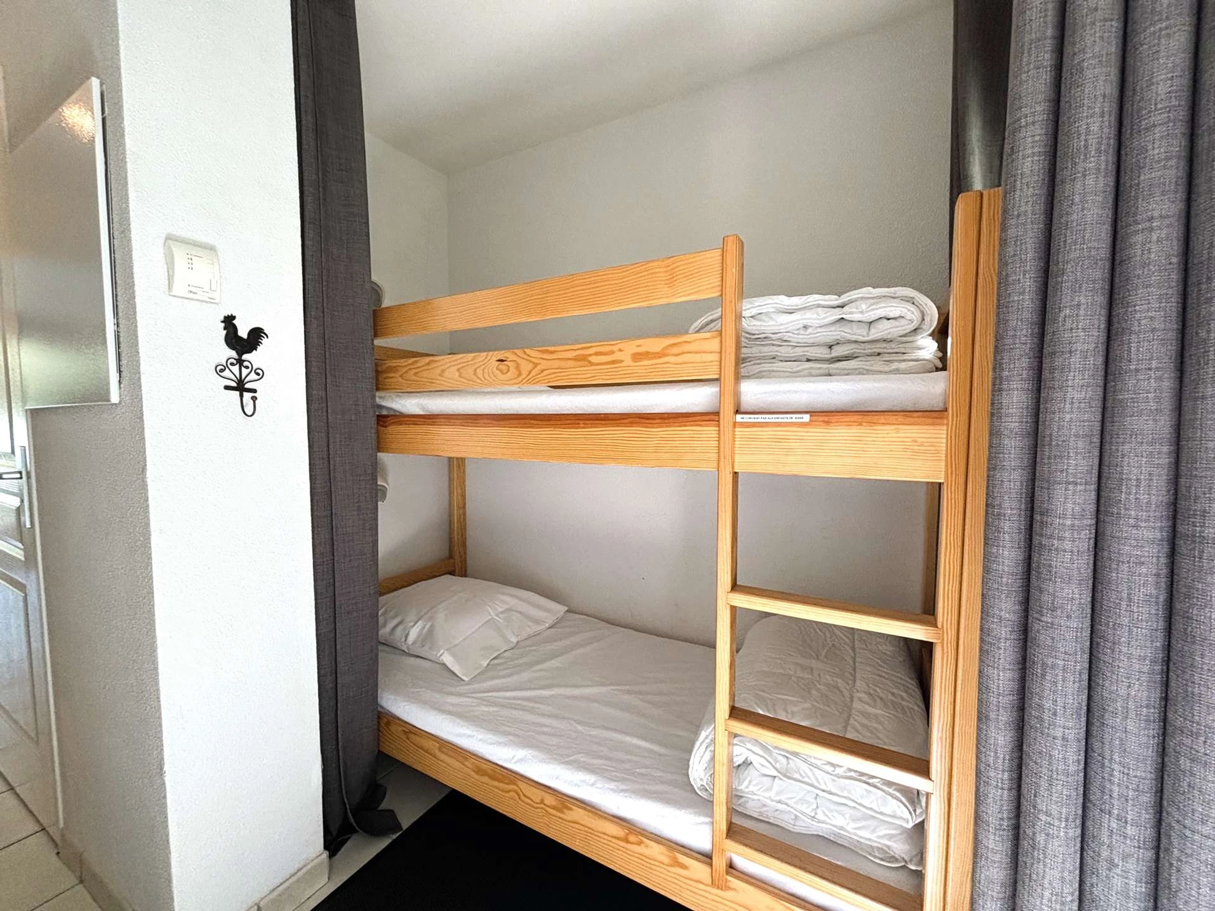 - Un dormitorio tipo cabaña junto a la entrada del apartamento con dos camas individuales (90 x 190 cm).