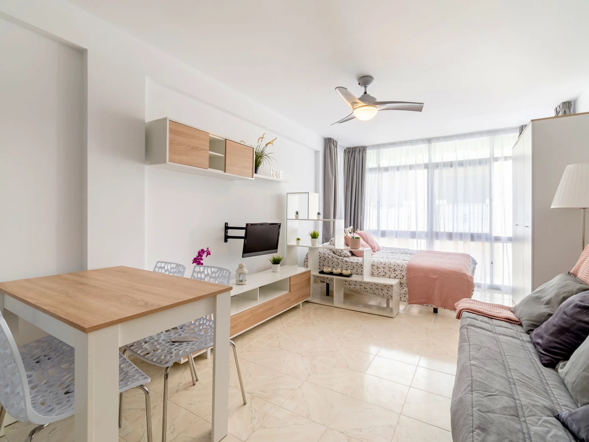 Estudio 40 m2 en el 2° piso. Vivienda adecuada para 2 adultos + 2 niños. Con mobiliario funcional y confortable: salón-comedor con 1 cama (135 cm), 1 sofá-cama (150 cm), TV digital y pantalla plana. Cocina (4 placas de vitrocerámica, microondas). Ducha/WC. Calefacción eléctrica. El alojamiento dispone de: lavadora. Adecuado para familias. [hidden]