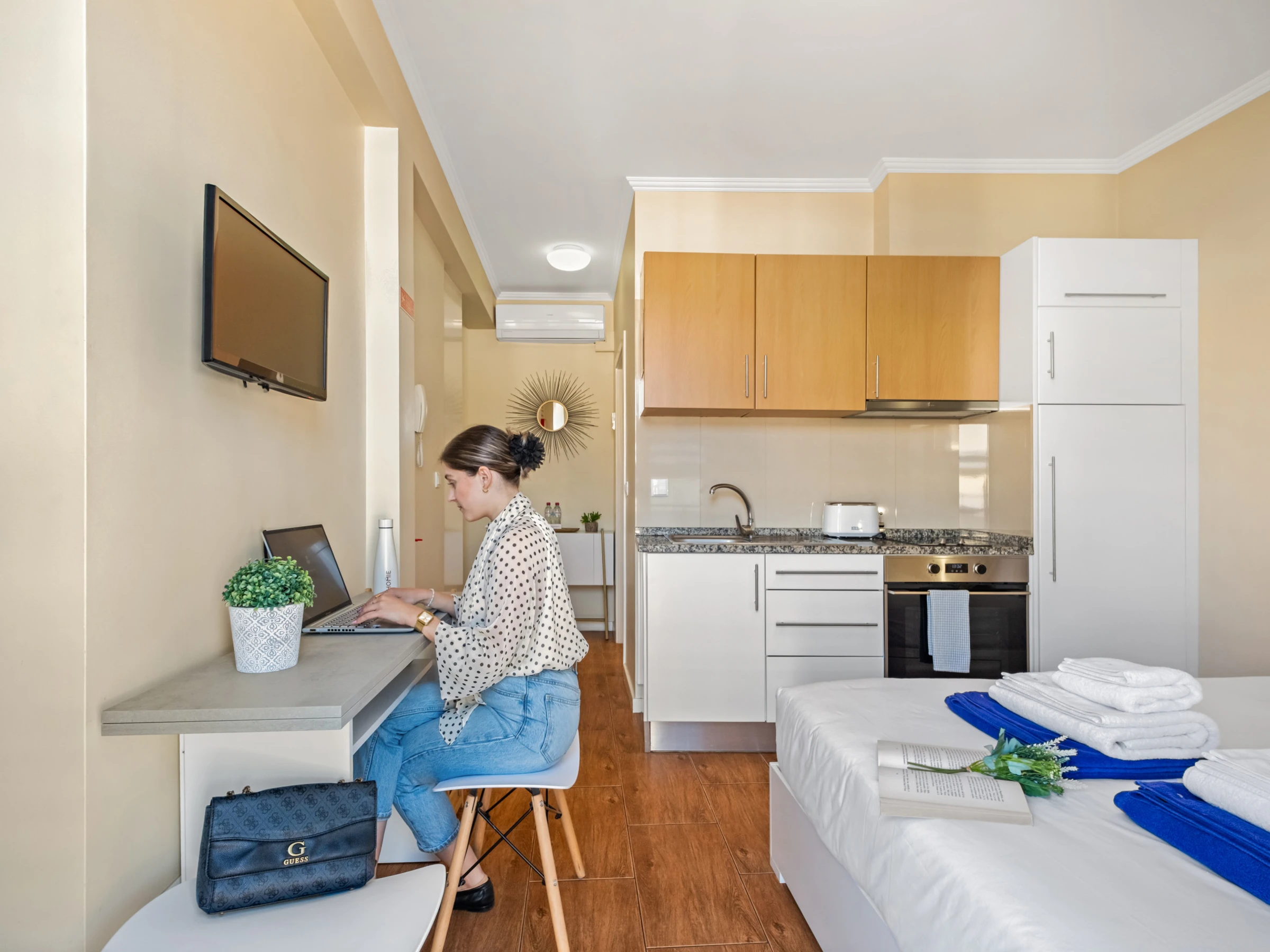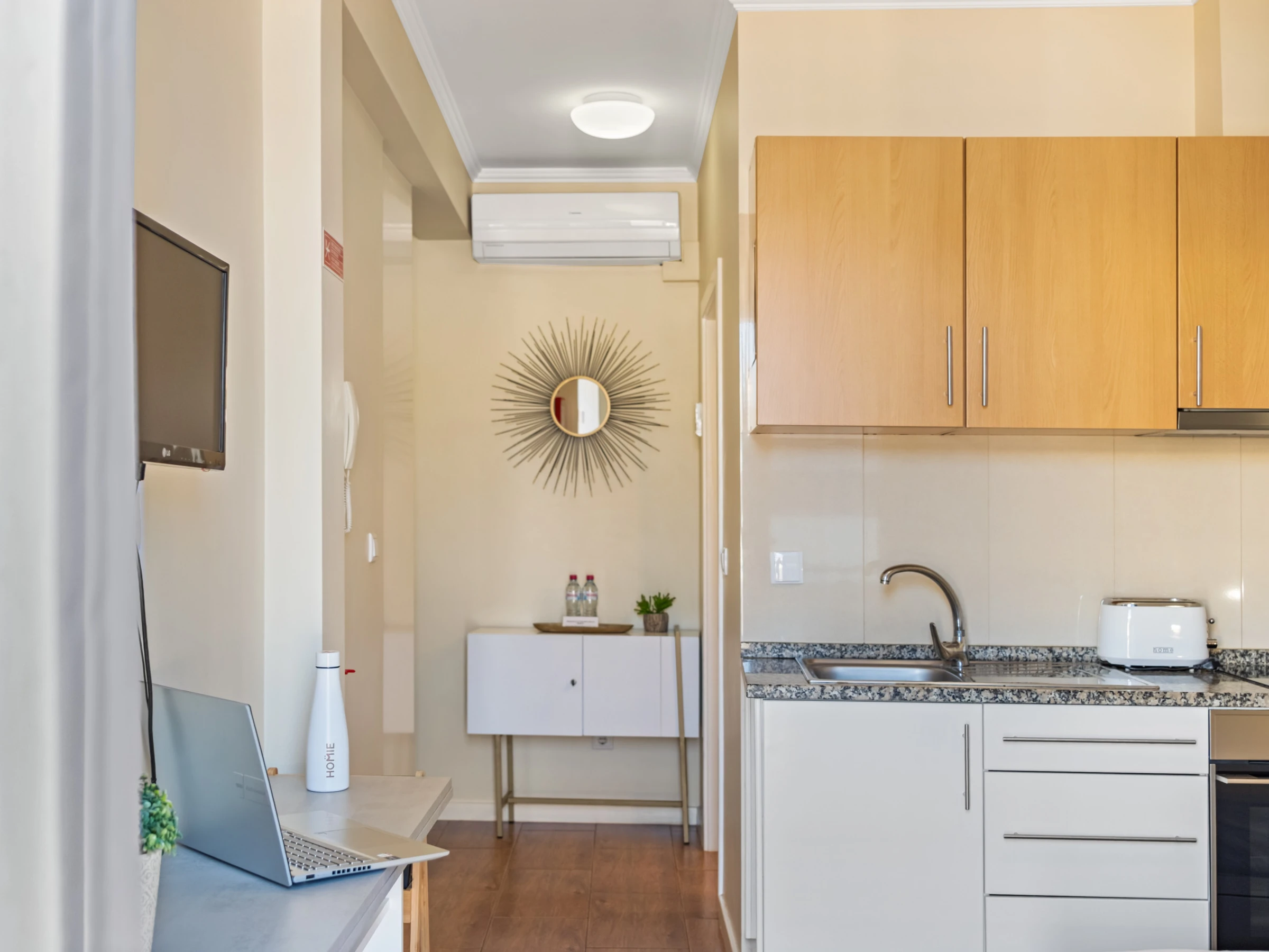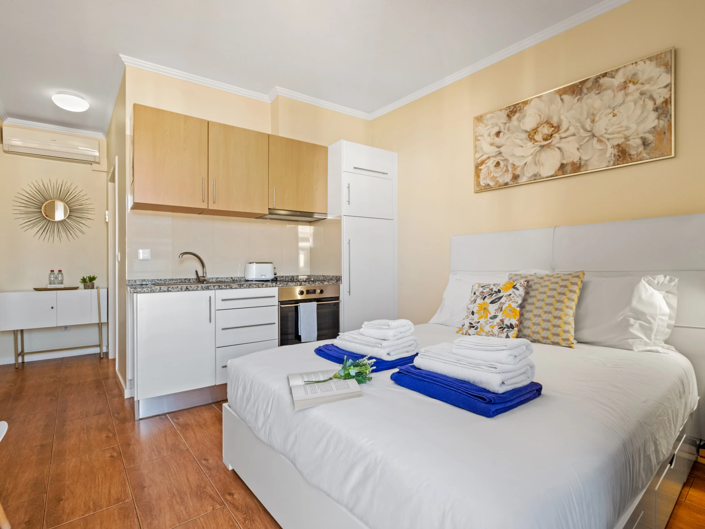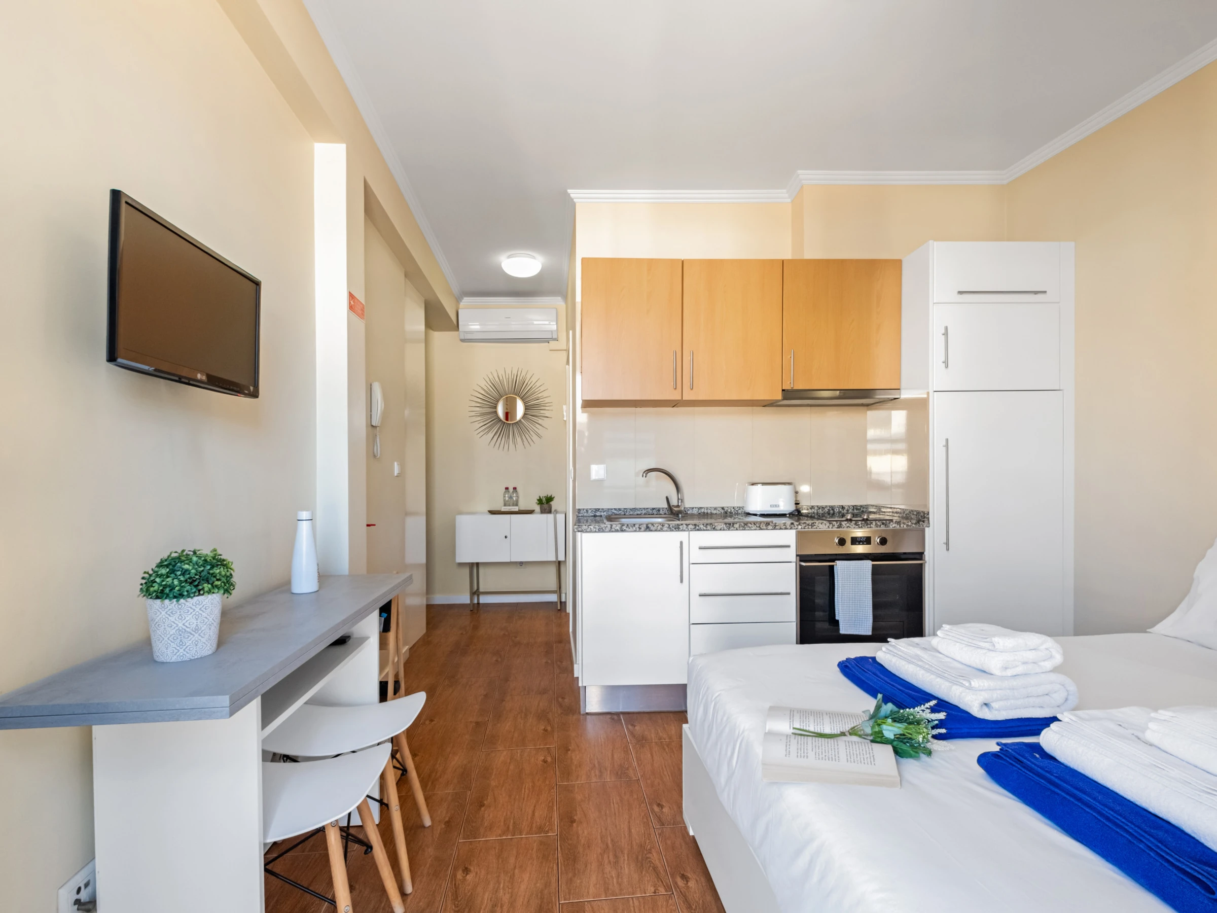 Este estudio tiene además una kitchenette, compacta pero totalmente equipada con fogón, horno, frigorífico y utensilios esenciales, que le permite preparar sus comidas con facilidad. Aun así, si prefiere explorar, encontrará a su puerta una amplia oferta de restaurantes y cafés, perfectos para descubrir los sabores locales.