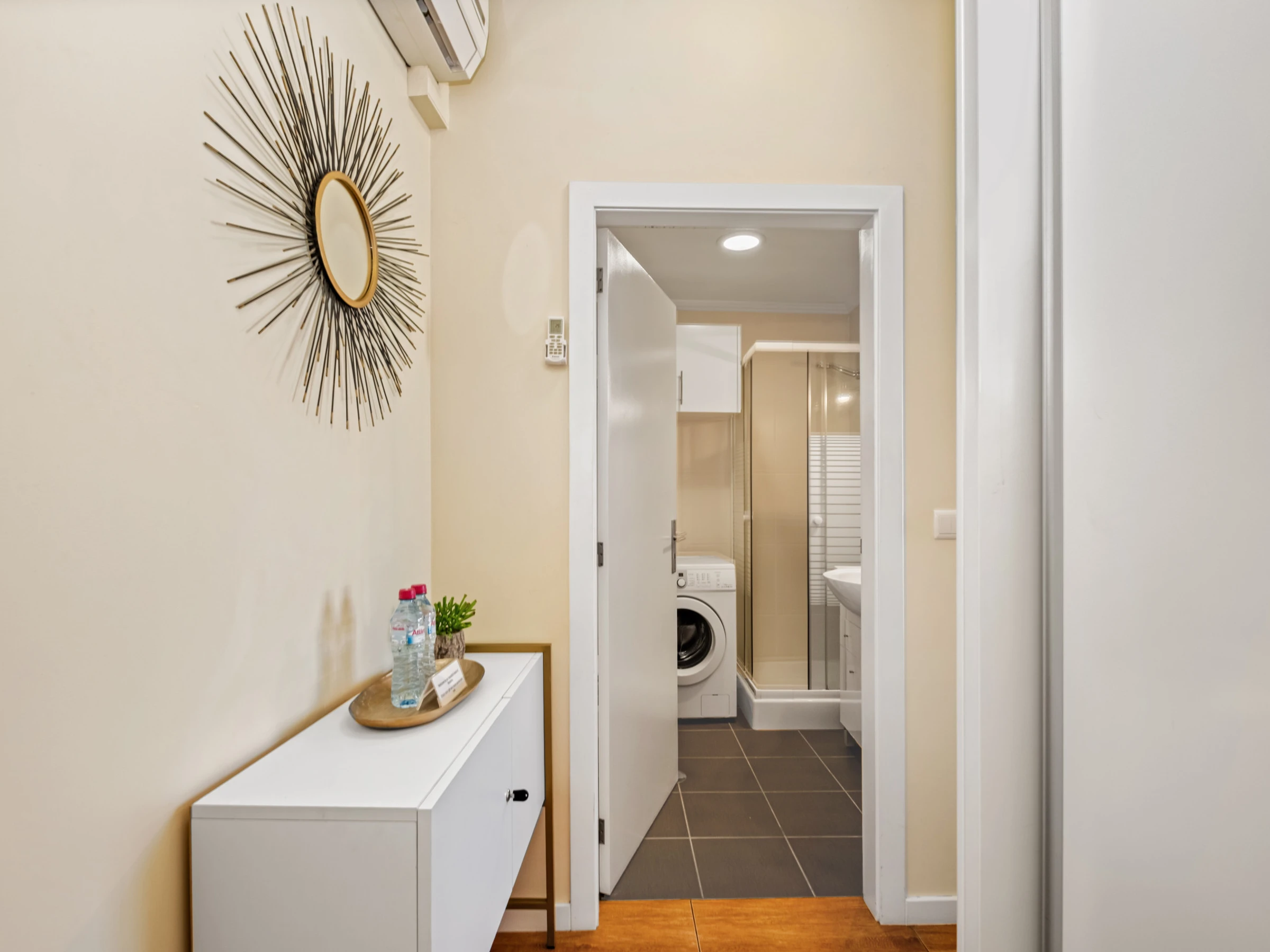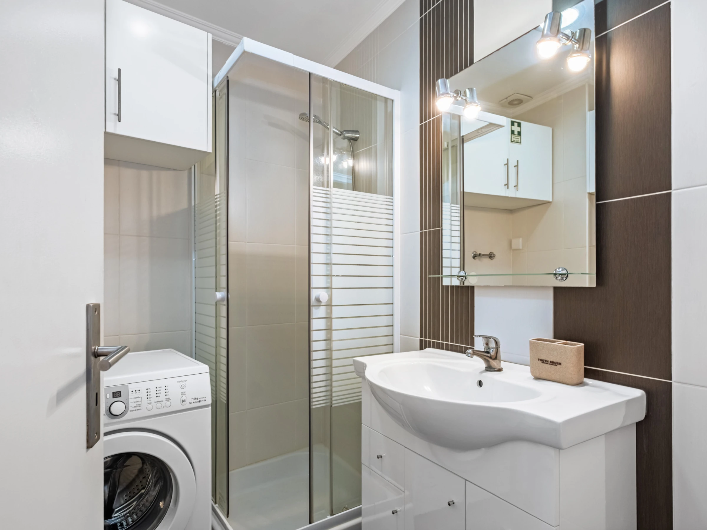 El baño privado, equipado con ducha y lavadora, garantiza toda la comodidad durante su estancia.