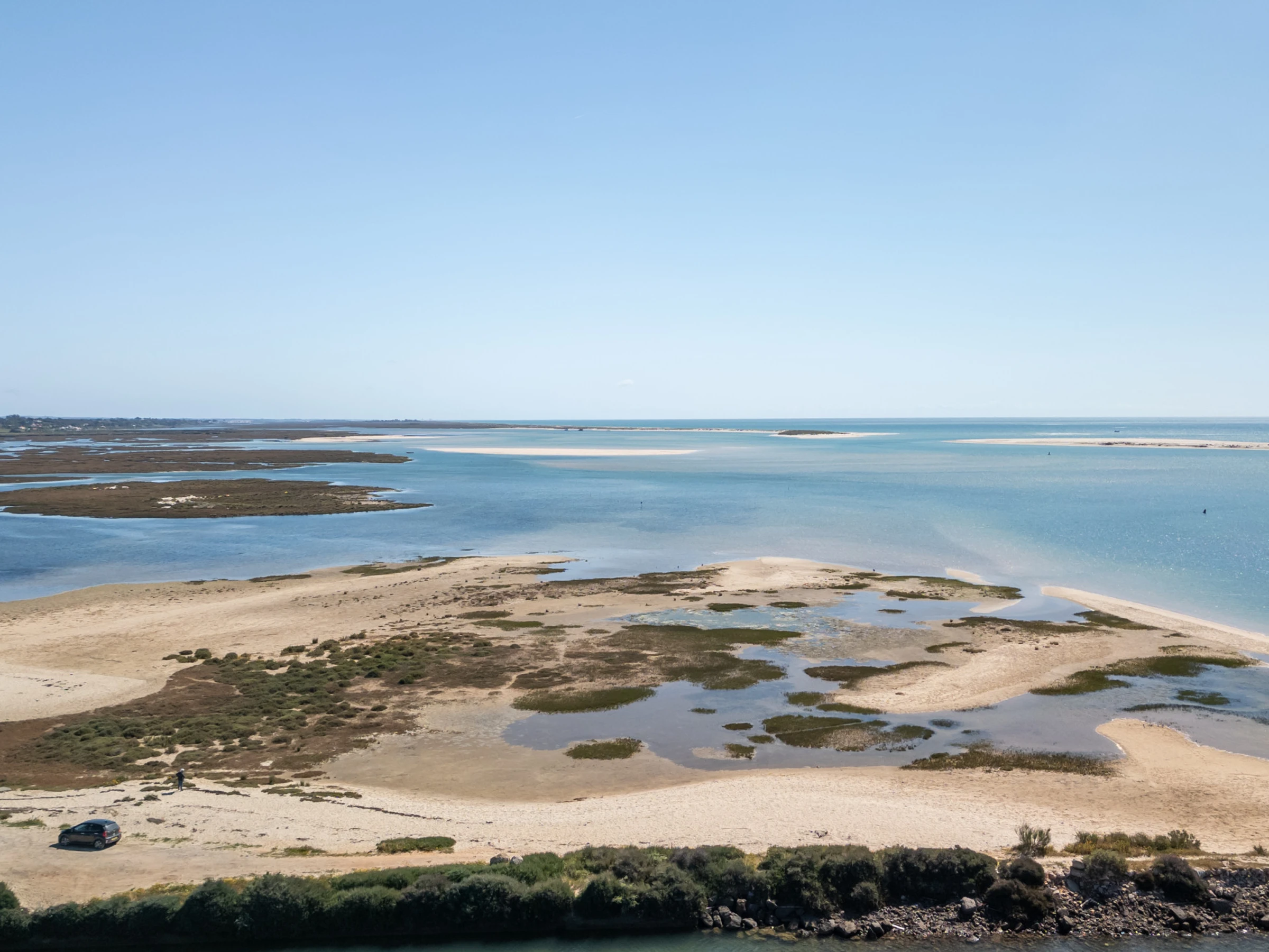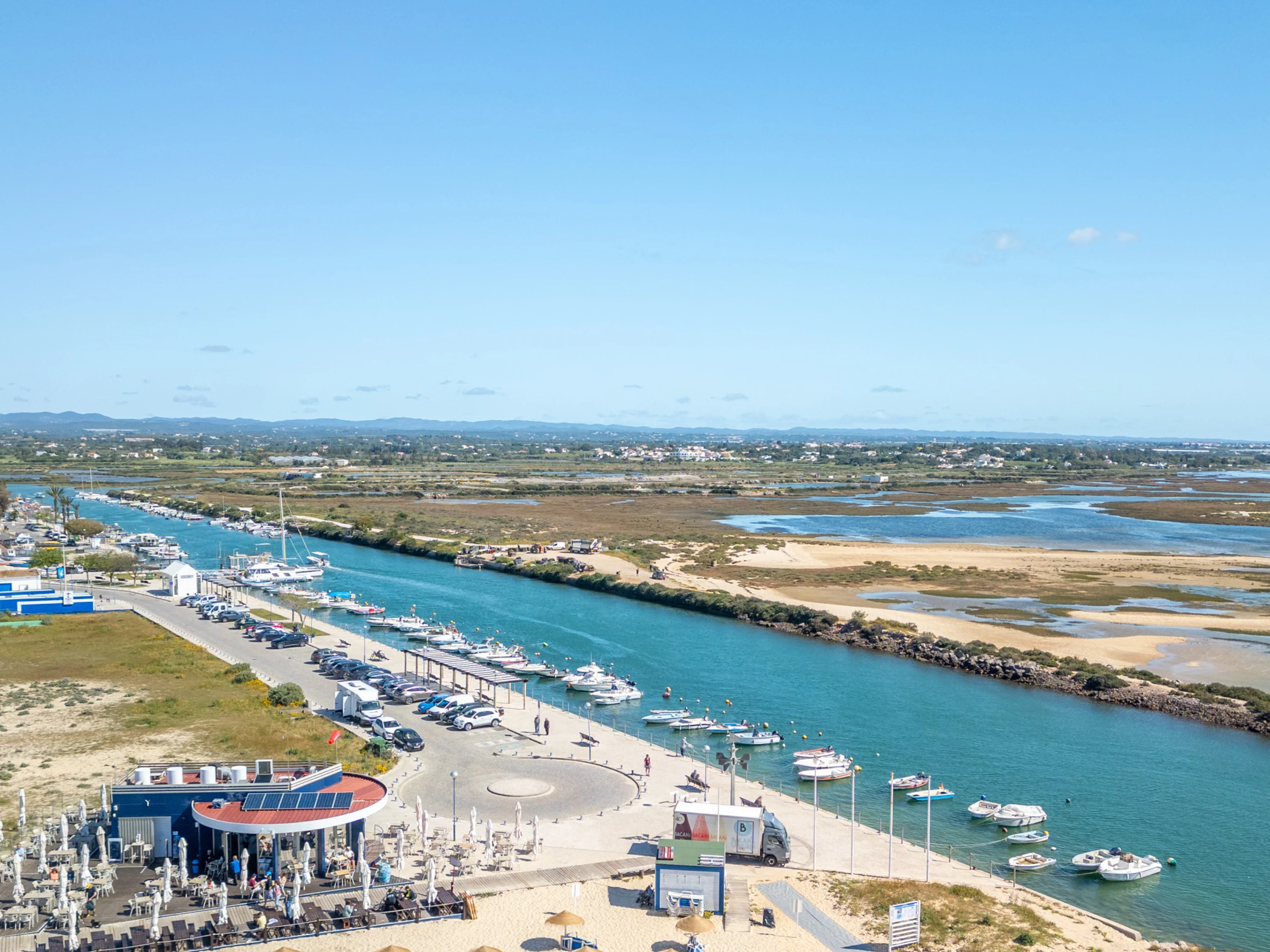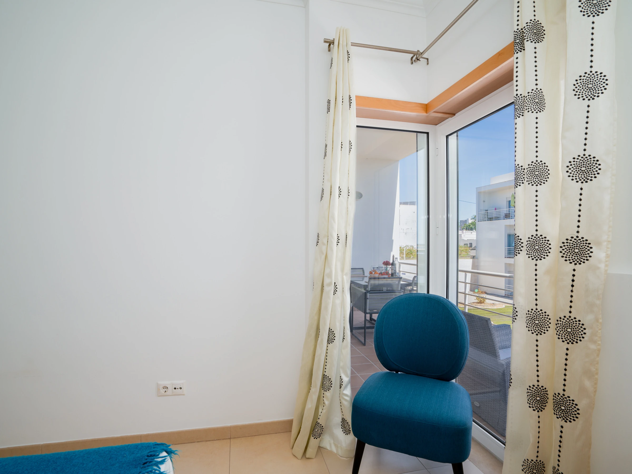 El apartamento cuenta con un balcón privado, perfecto para cenar al aire libre, disfrutar de un café matutino o simplemente sentarse con un libro mientras se disfruta del aire marino fresco y las vistas de la Ria Formosa.