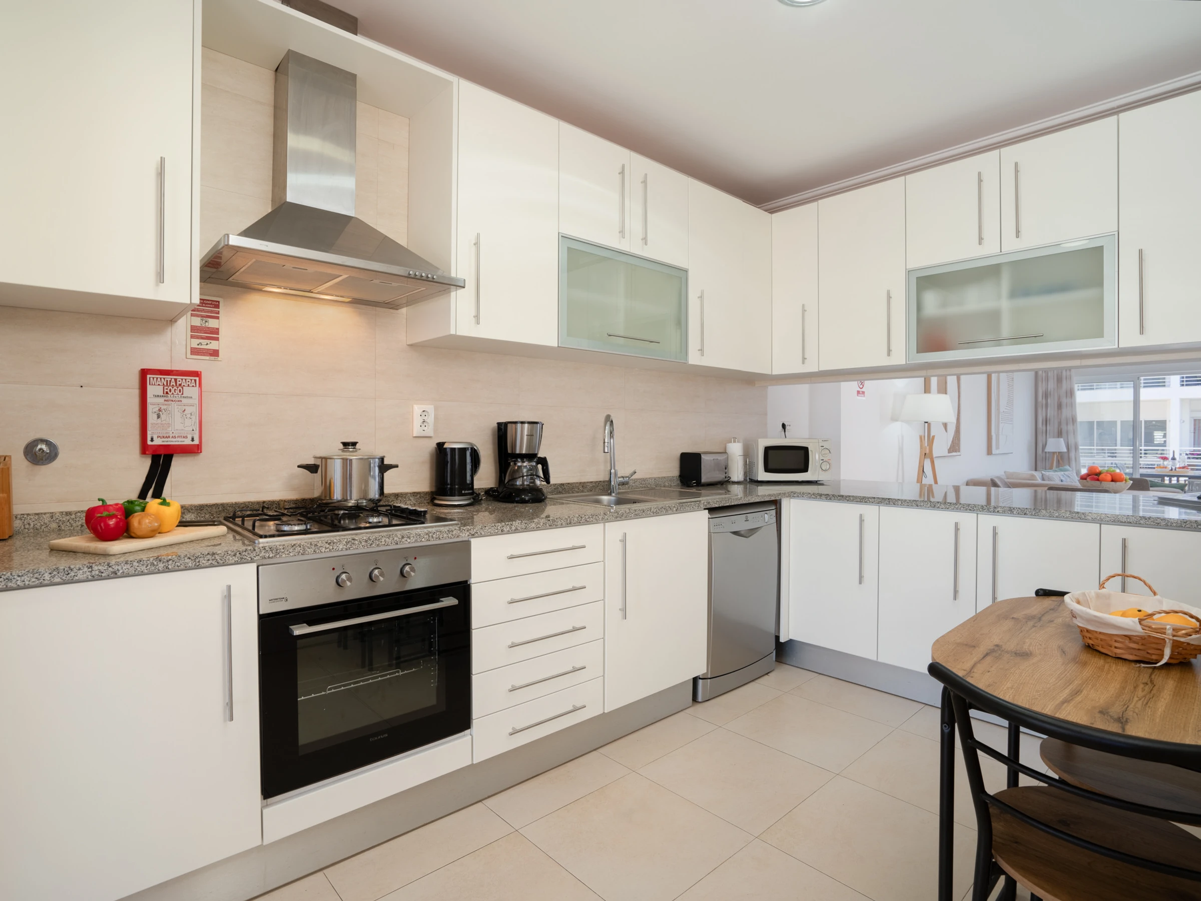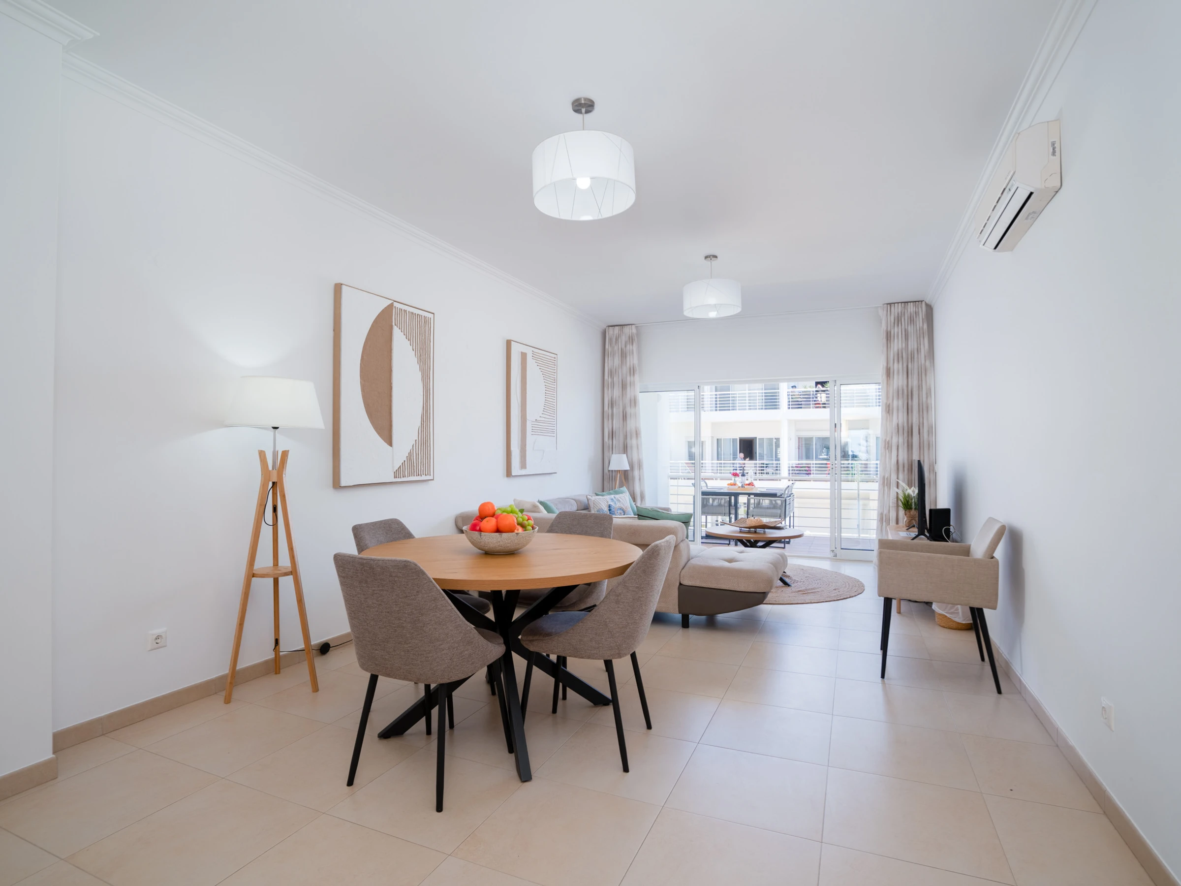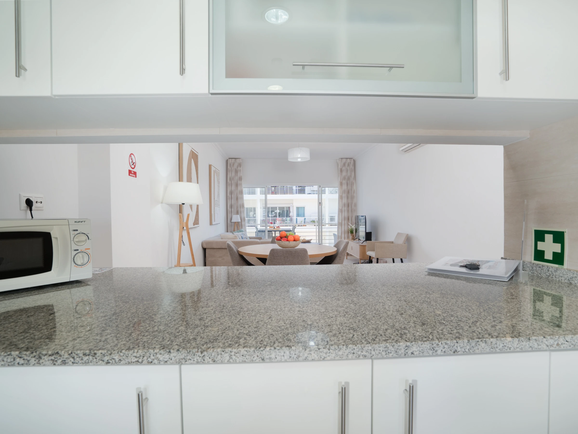 Este hermoso apartamento de primera planta disfruta de maravillosas vistas a través de la laguna de Ria Formosa hacia el Océano Atlántico. En su centro hay un luminoso espacio diáfano que combina un salón elegante con vistas al mar, una cocina totalmente equipada y una zona de comedor ideal para comidas relajadas o para entretener.