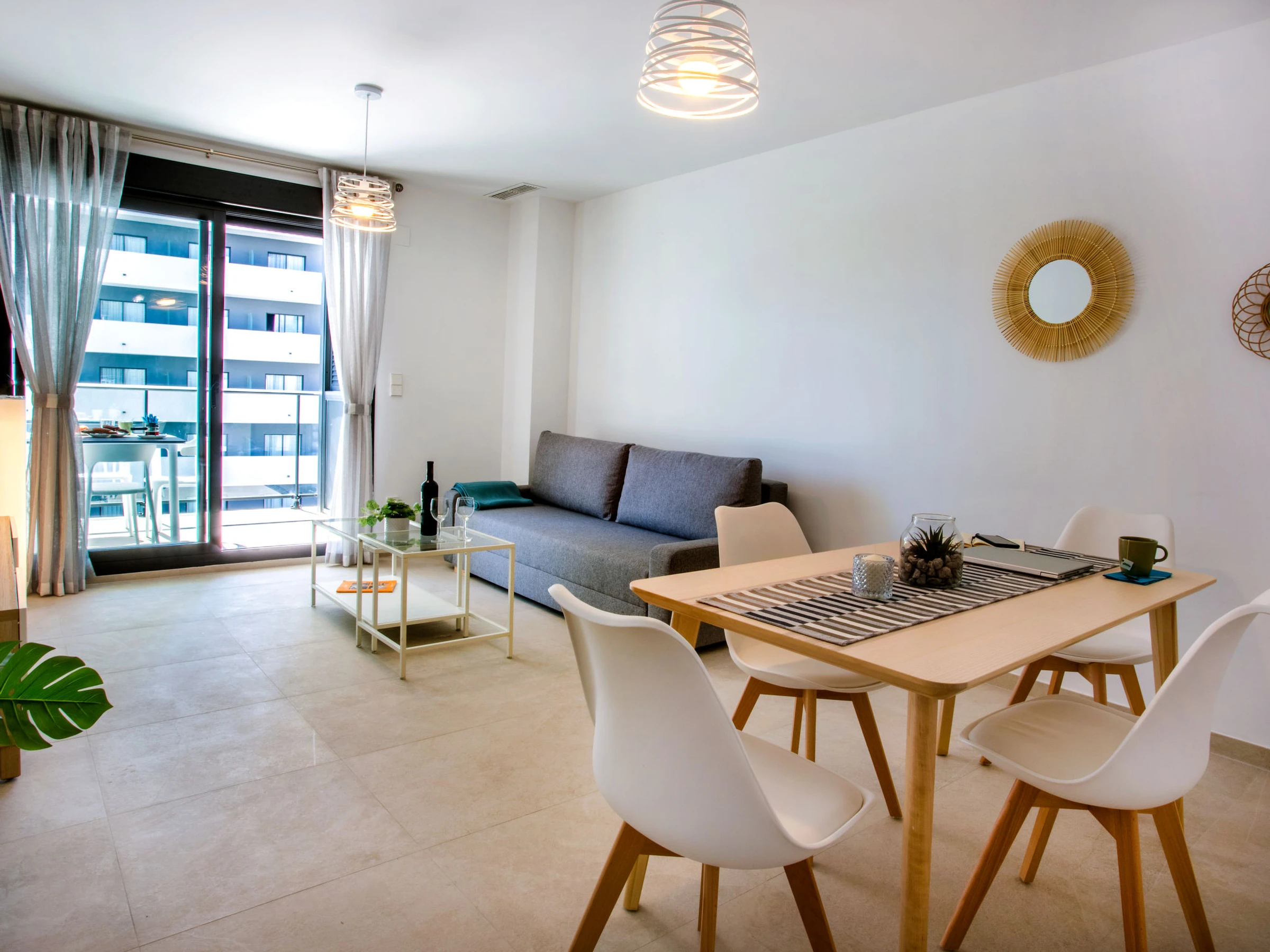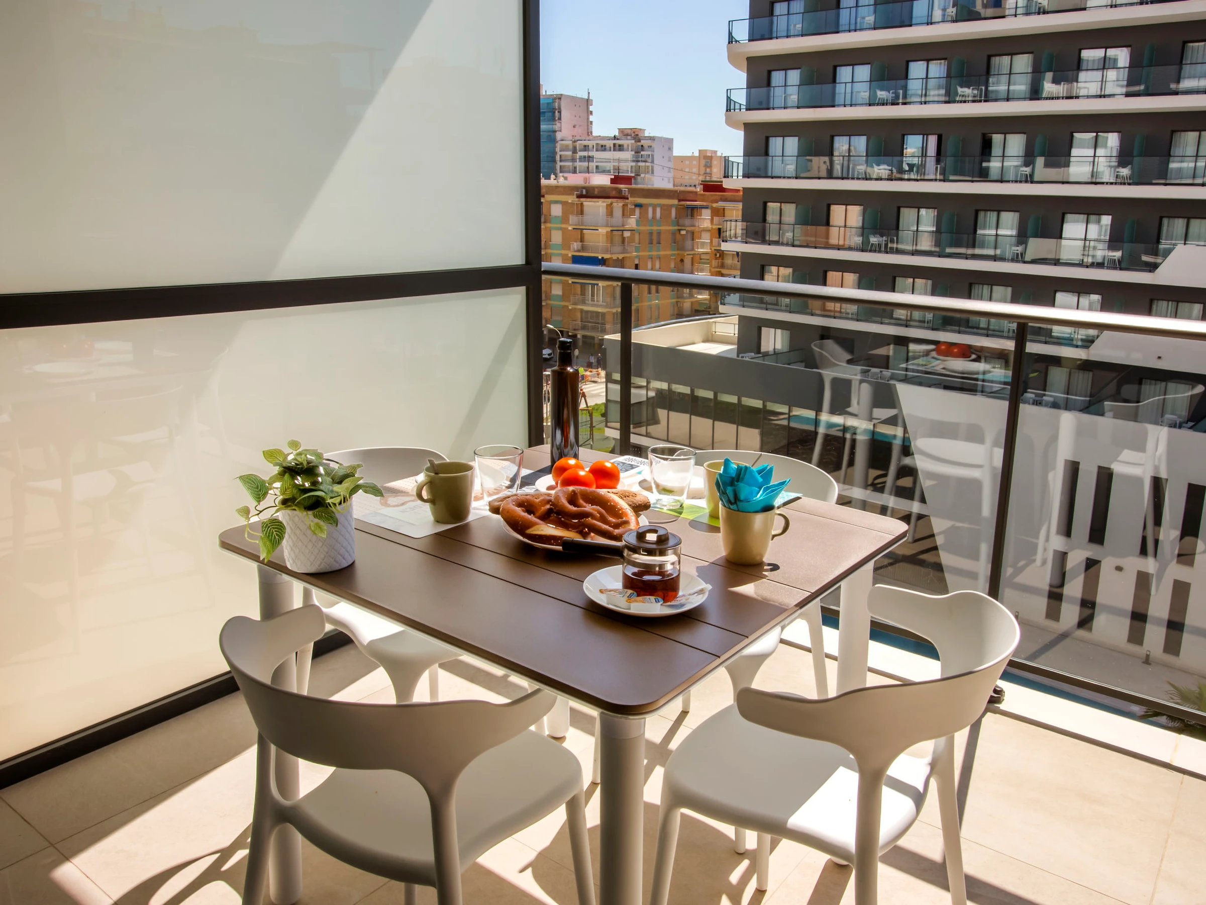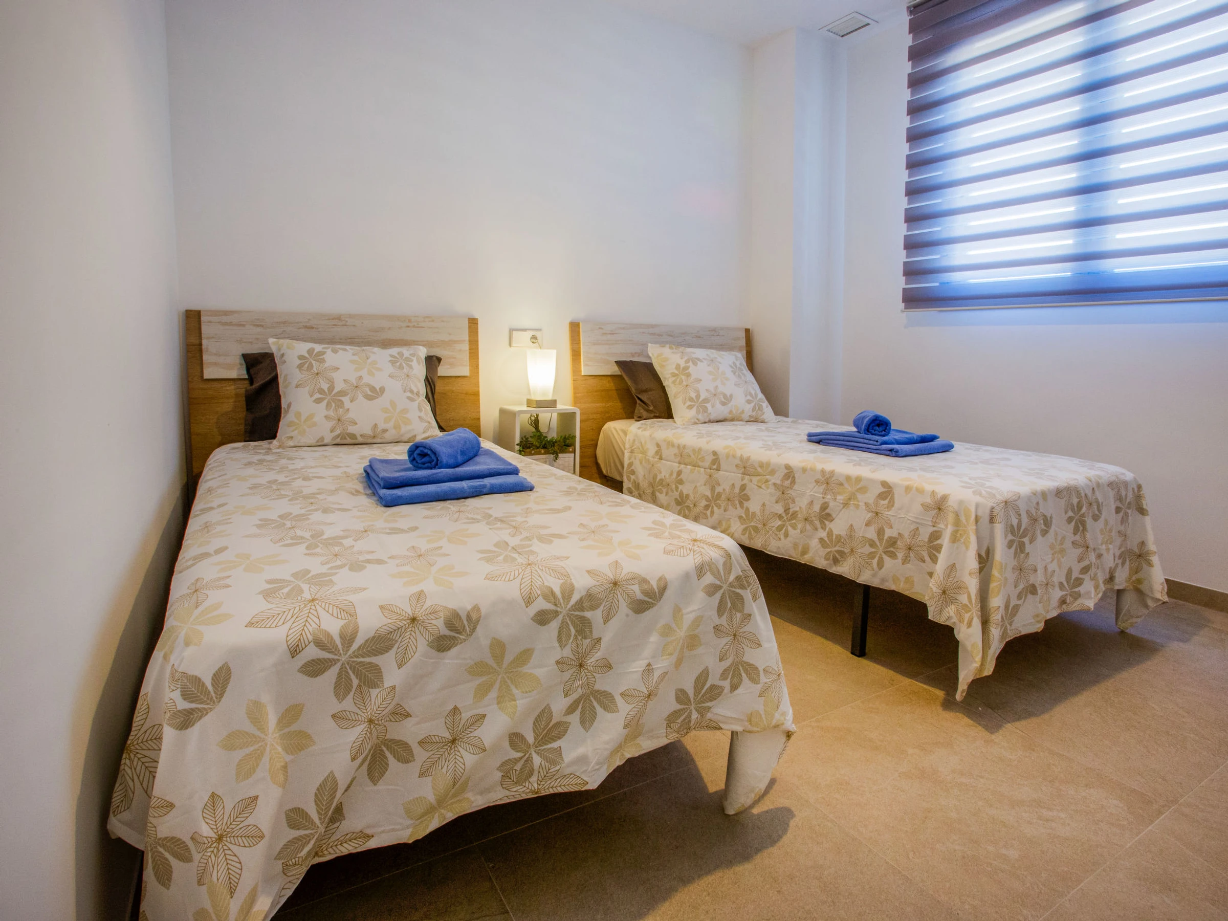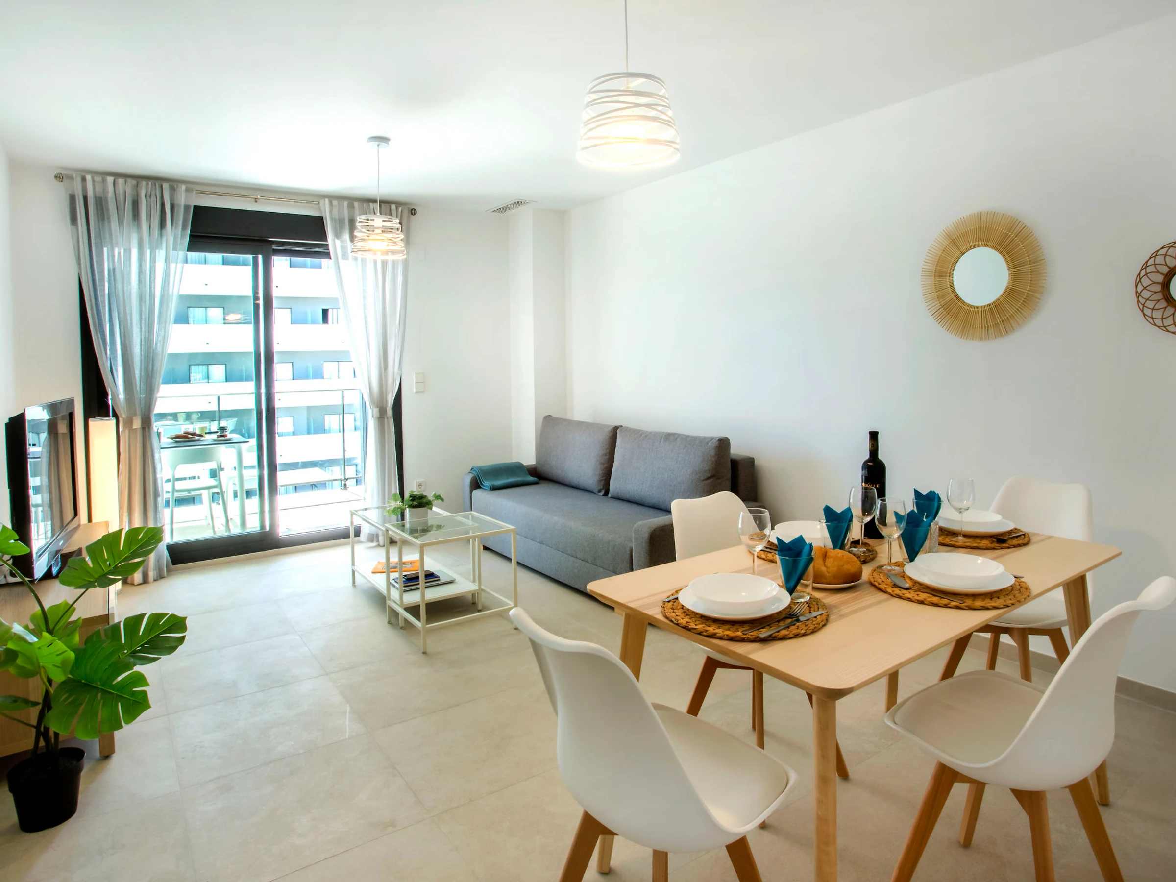 "El Alamo Gandia", apartamento de 3 estancias 75 m2. Espacioso y luminoso, con mobiliario muy bonito y moderno: salón-comedor con TV digital, aire acondicionado y bomba de calor, caliente. Salida a la terraza. 1 dorm. con 1 cama de matrimonio (150 cm, 190 cm de longitud), ducha/WC, aire acondicionado y bomba de calor, caliente. 1 dorm. con 2 camas (90 cm, 190 cm de longitud), aire acondicionado y bomba de calor, caliente. Cocina abierta (lavavajillas, 3 placas de vitrocerámica, tostadora, microondas, congelador, cafetera eléctrica). Ducha/WC. Terraza. Muebles de terraza. El alojamiento dispone de: lavadora, plancha, trona, cuna, secador de pelo. Internet (Wifi, gratis). Garaje. A tener en cuenta: casa para no fumadores. 1 mascota / perro. TV solamente ES. Pista de Pádel / Piscina adaptada para personas con movilidad reducida/Acceso para personas con movilidad reducida tanto desde el garaje como desde la calle. [hidden]