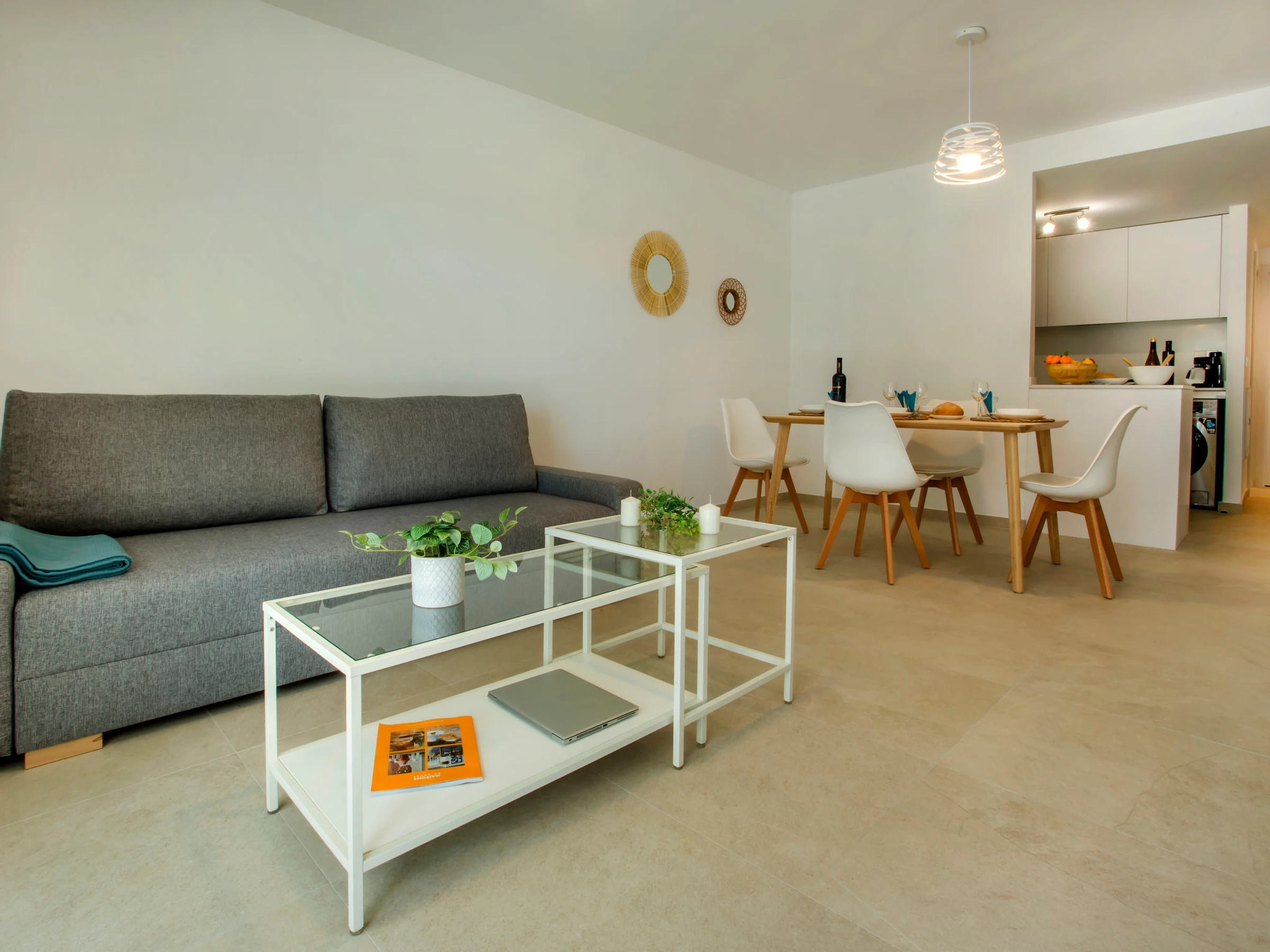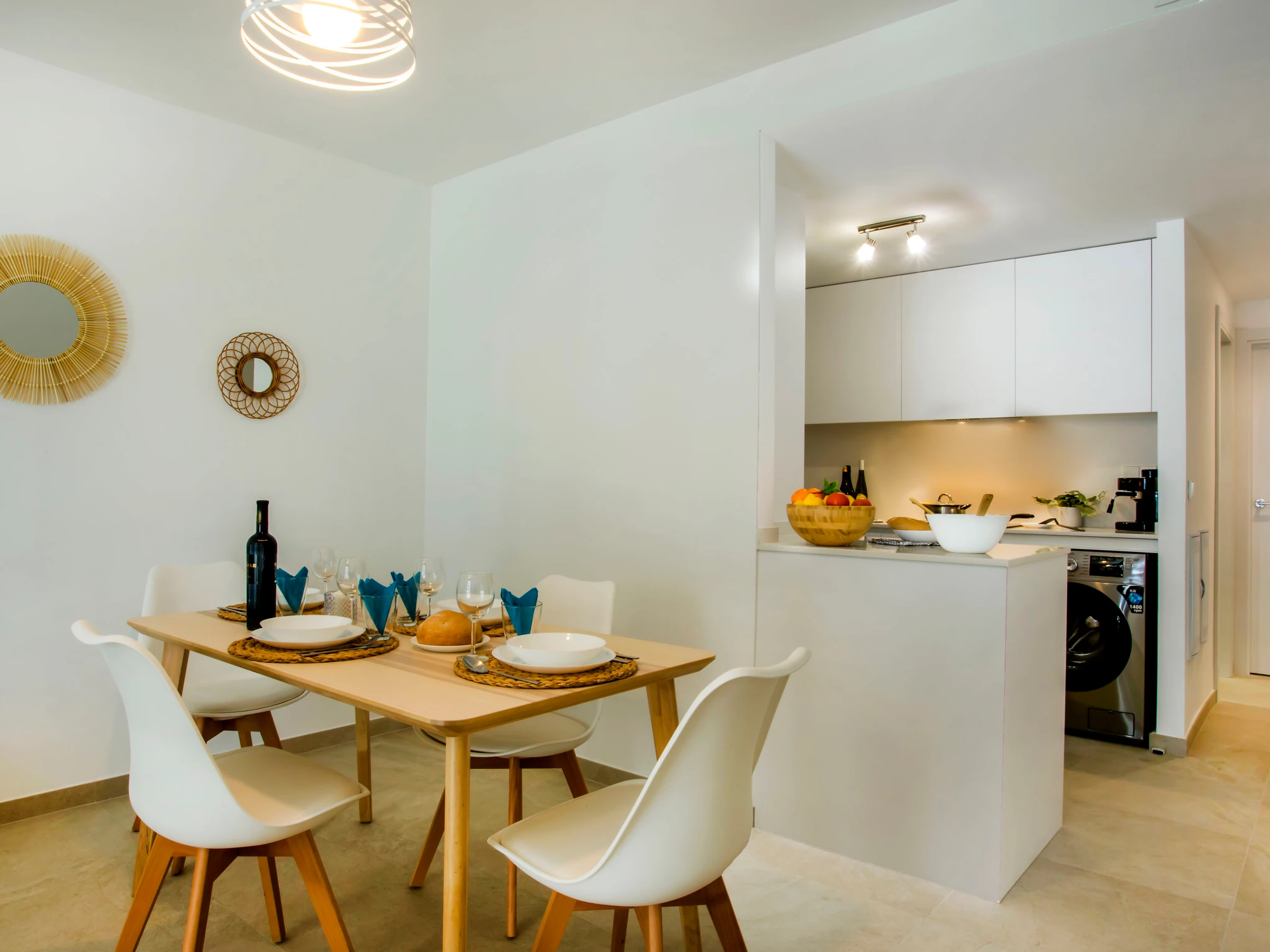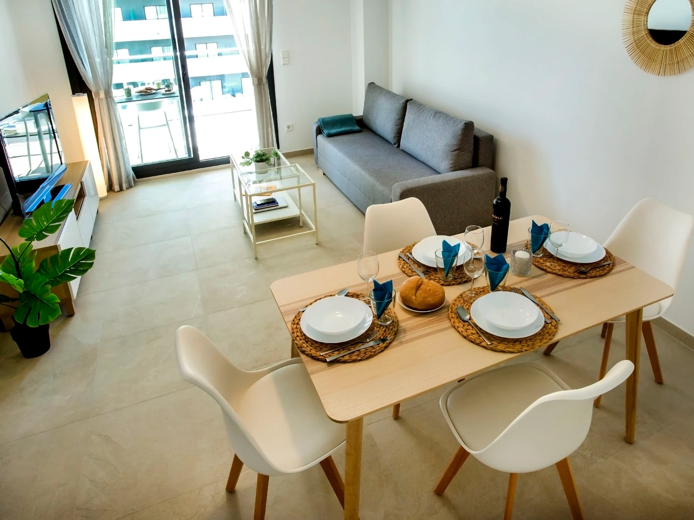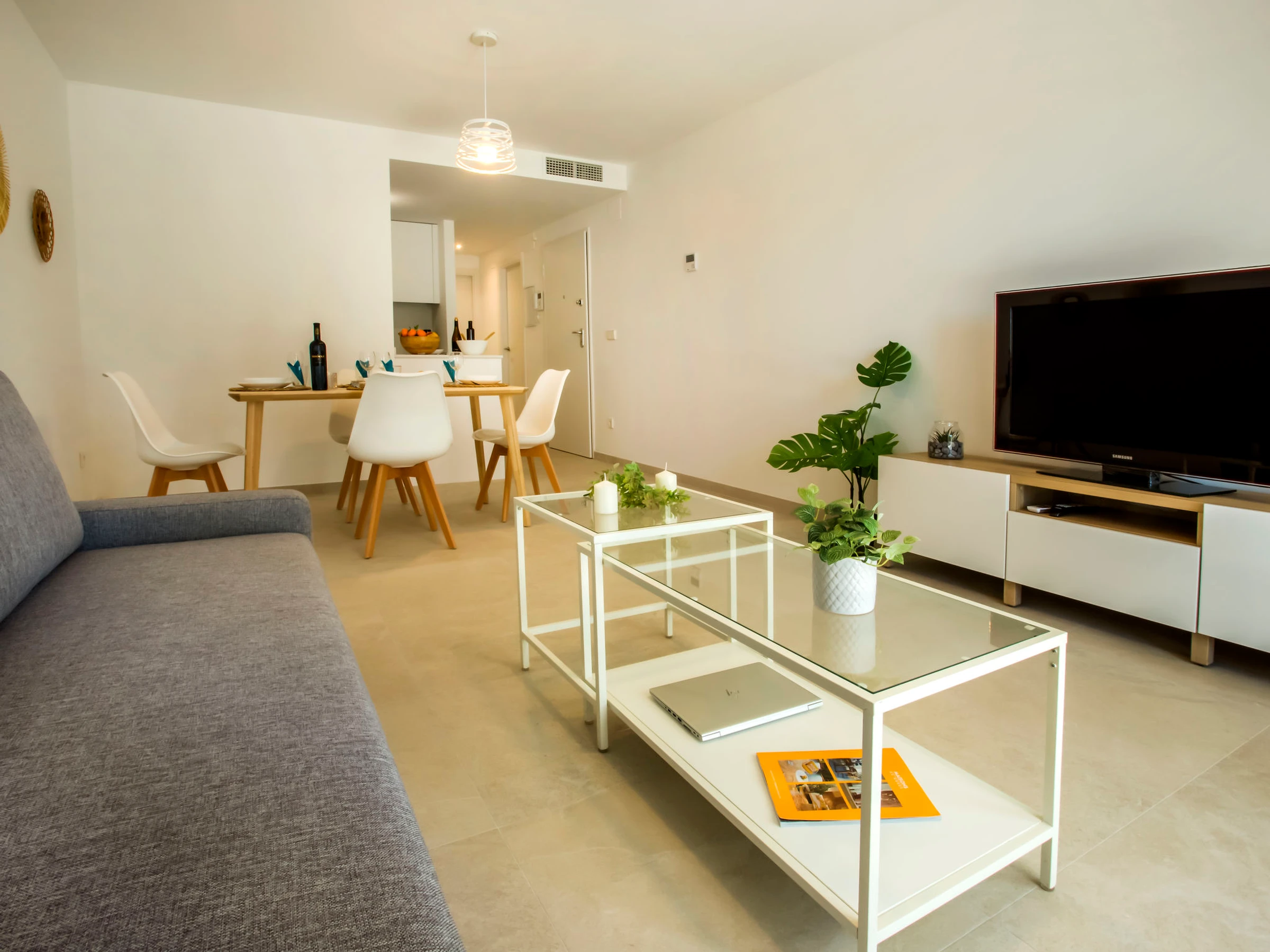 "El Alamo Gandia", apartamento de 3 estancias 75 m2. Espacioso y luminoso, con mobiliario muy bonito y moderno: salón-comedor con TV digital, aire acondicionado y bomba de calor, caliente. Salida a la terraza. 1 dorm. con 1 cama de matrimonio (150 cm, 190 cm de longitud), ducha/WC, aire acondicionado y bomba de calor, caliente. 1 dorm. con 2 camas (90 cm, 190 cm de longitud), aire acondicionado y bomba de calor, caliente. Cocina abierta (lavavajillas, 3 placas de vitrocerámica, tostadora, microondas, congelador, cafetera eléctrica). Ducha/WC. Terraza. Muebles de terraza. El alojamiento dispone de: lavadora, plancha, trona, cuna, secador de pelo. Internet (Wifi, gratis). Garaje. A tener en cuenta: casa para no fumadores. 1 mascota / perro. TV solamente ES. Pista de Pádel / Piscina adaptada para personas con movilidad reducida/Acceso para personas con movilidad reducida tanto desde el garaje como desde la calle. [hidden]
