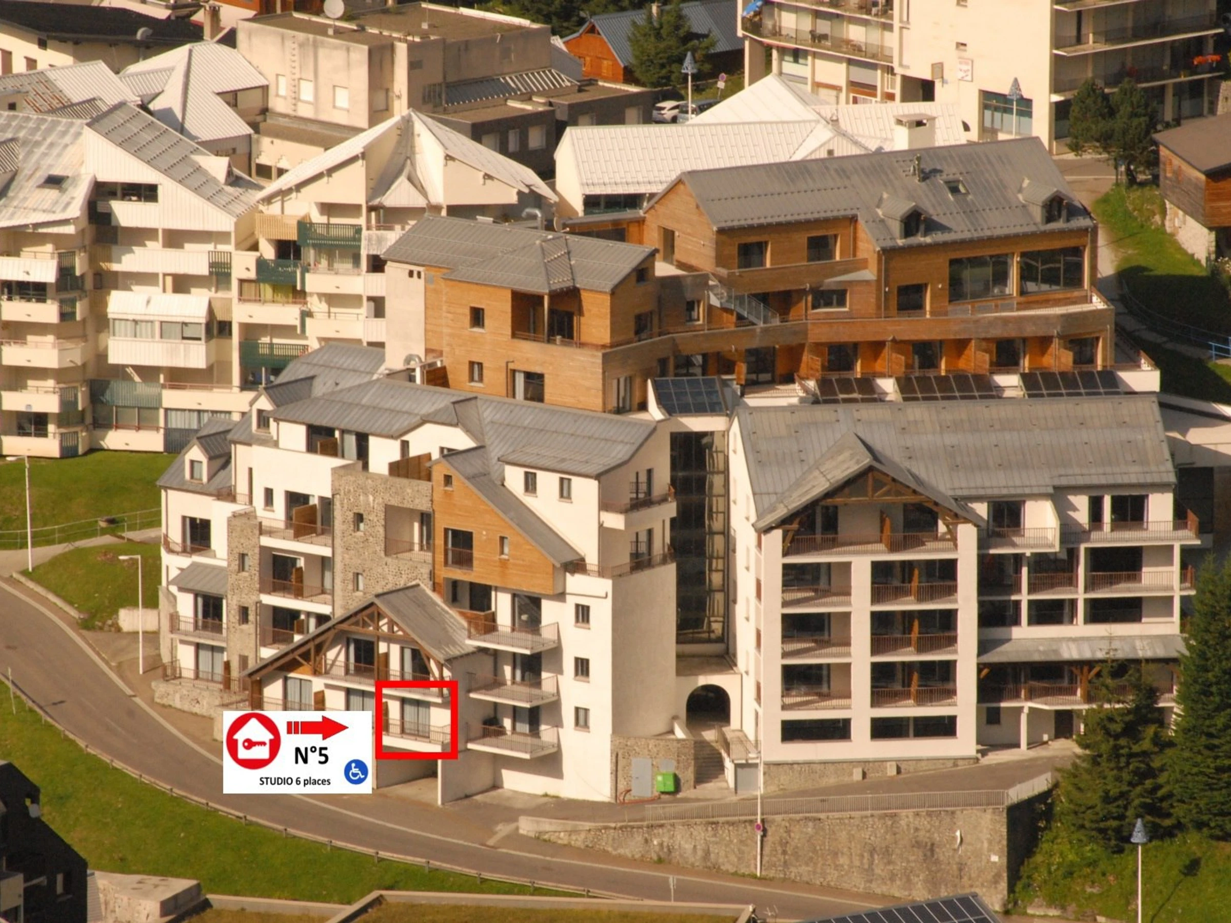 Residencia LE PORTILLO con piscina, estudio para 6 personas, de 52 m², orientación suroeste con vistas a las pistas y a la estación, en la primera planta con balcón.