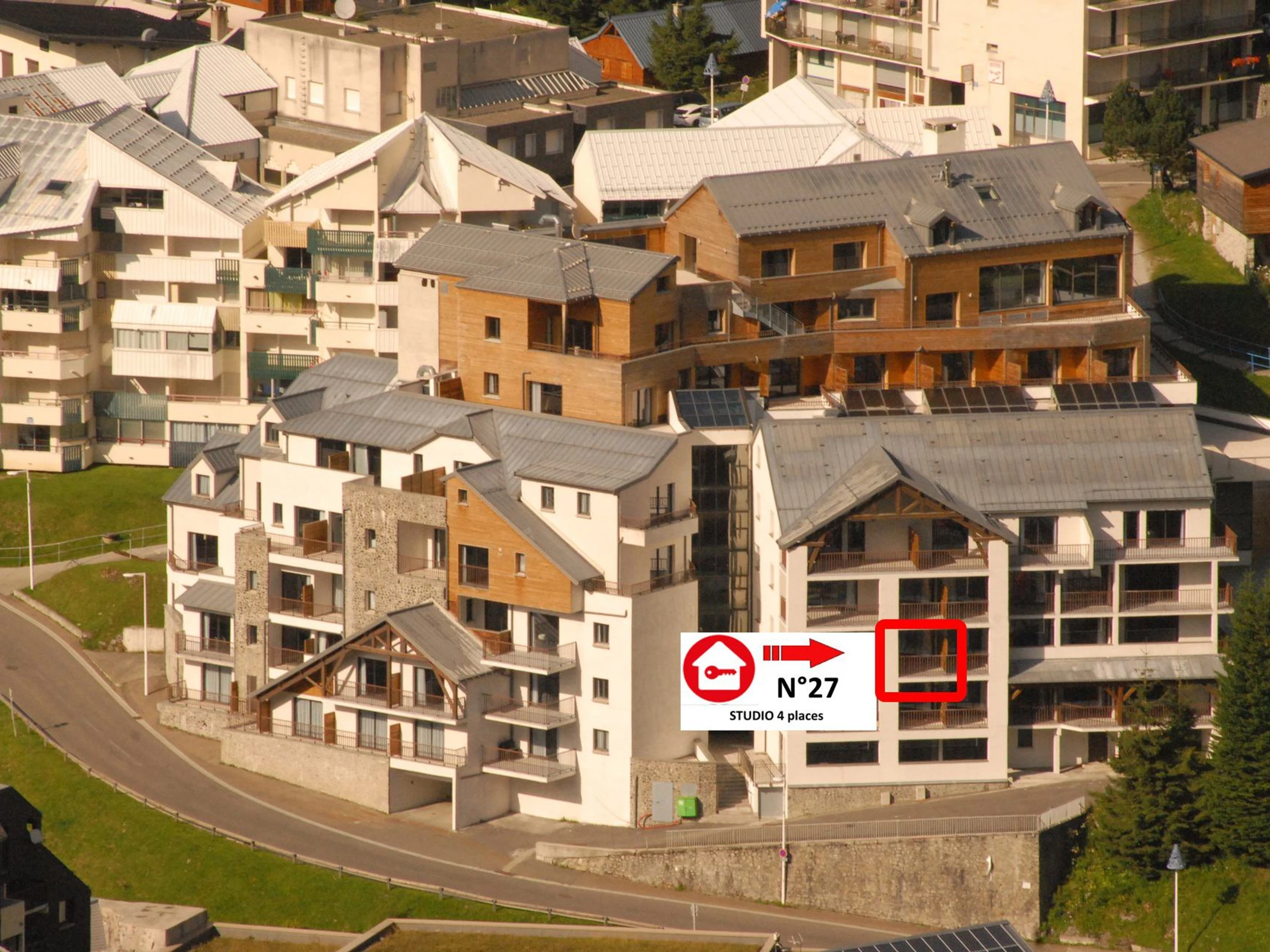 Residencia LE PORTILLO con piscina, estudio para 4 personas, de 29 m², orientación suroeste, vistas a las pistas y a la montaña, situado en la 2.ª planta con terraza.