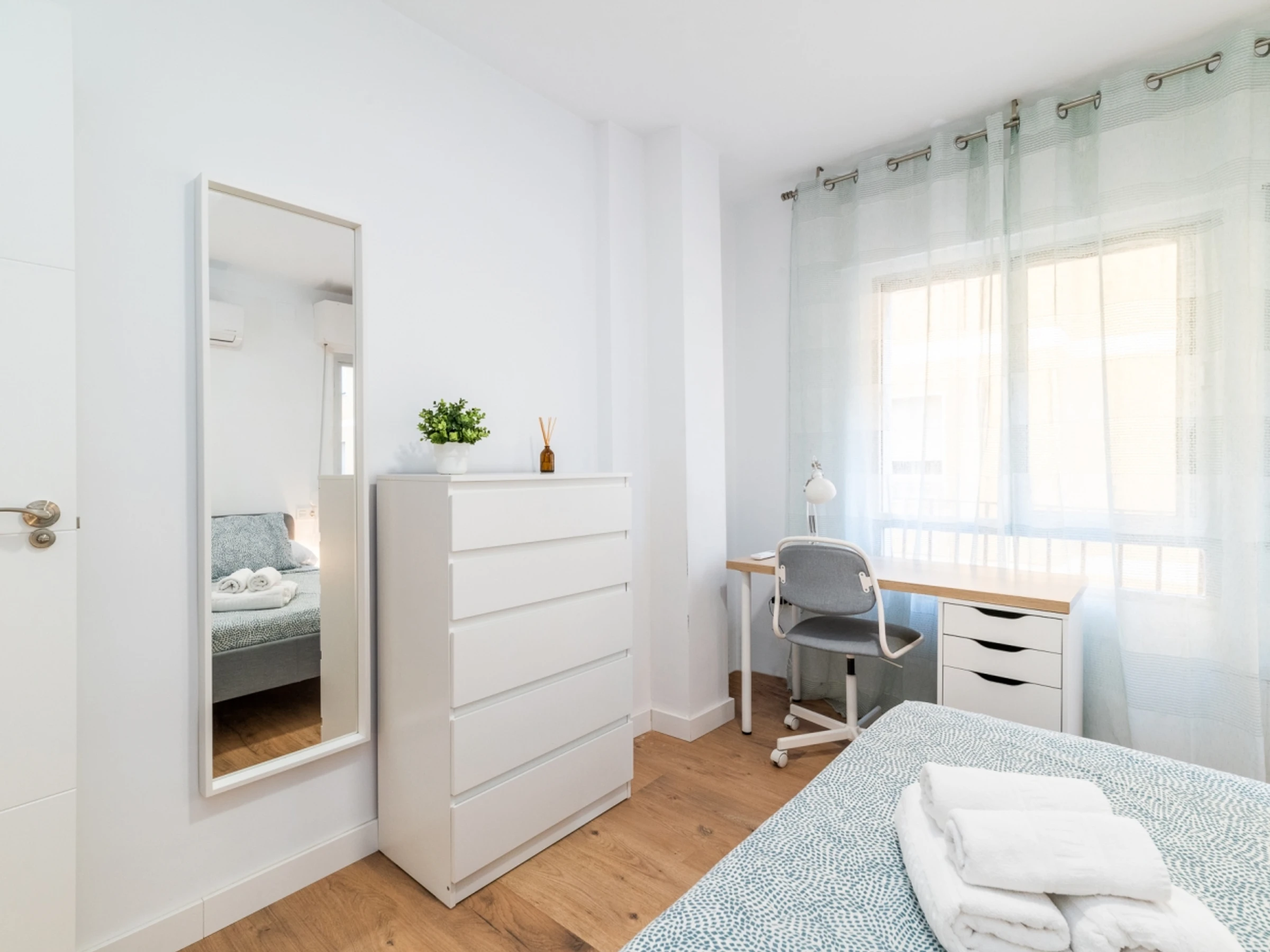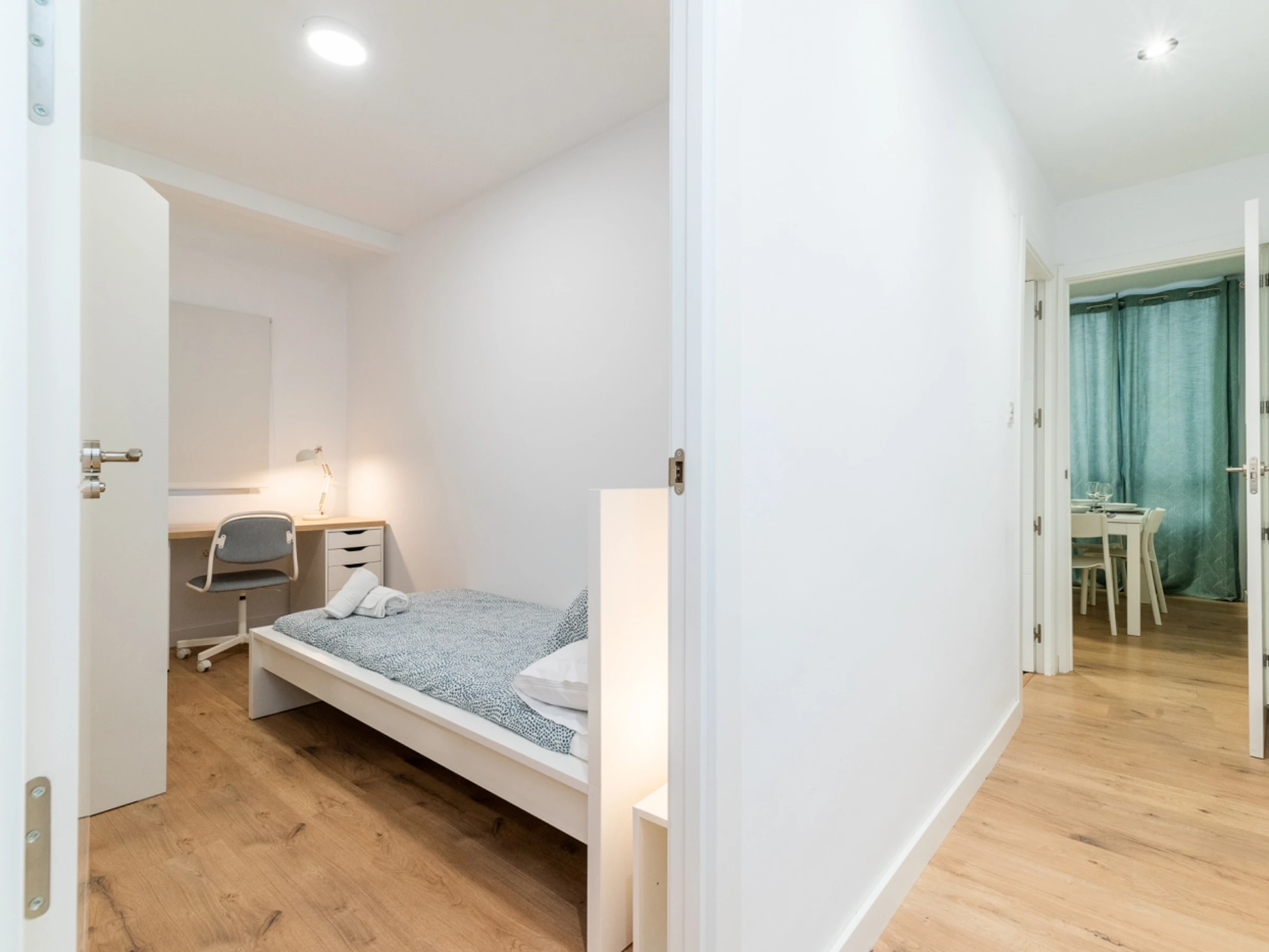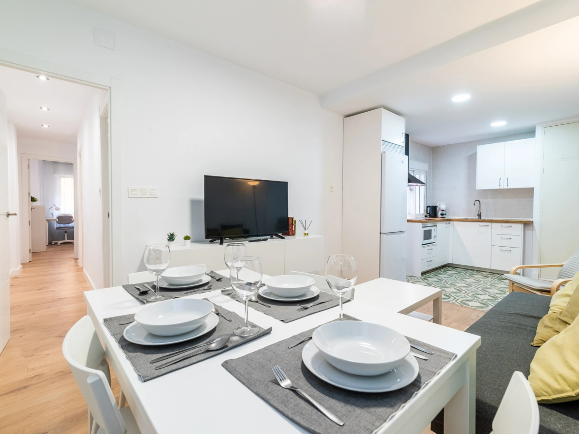 El espacioEste reformado apartamento con disponibilidad para 7 personas cuenta con dos dormitorios dobles con camas de 150 y un dormitorio individual.