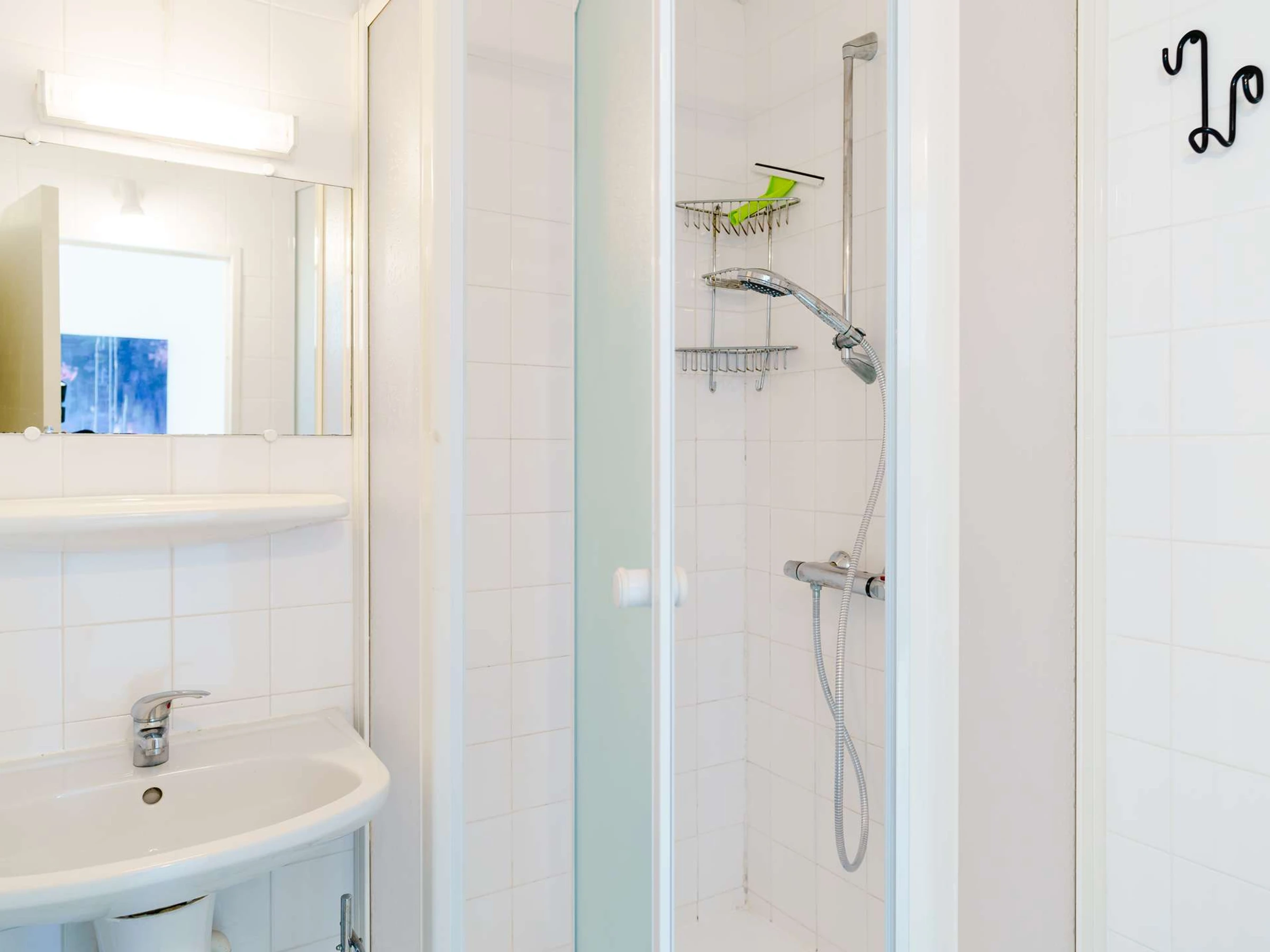 Planta alta: dos dormitorios con cama de matrimonio (160x200), 1 dormitorio con 2 literas (90x190) y 1 cama pequeña más (90x190), un cuarto de ducha con WC.