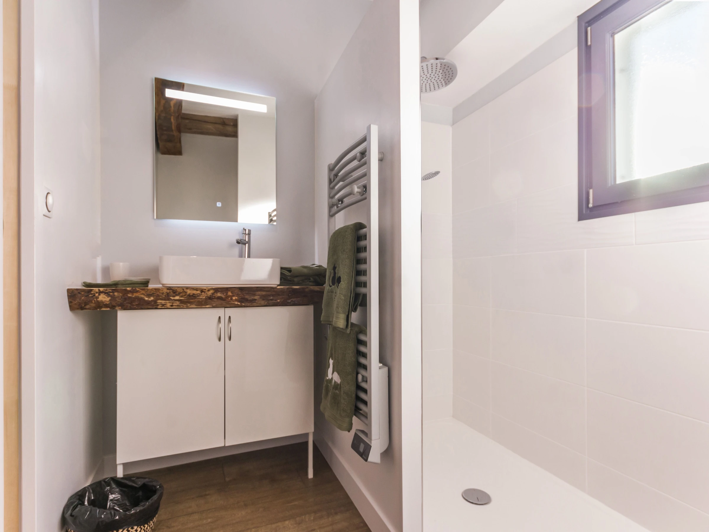 Planta baja: hermosa cocina equipada que da a una acogedora sala de estar, 1 dormitorio (cama de 160x200), baño con ducha (ducha a ras de suelo) y WC separado.