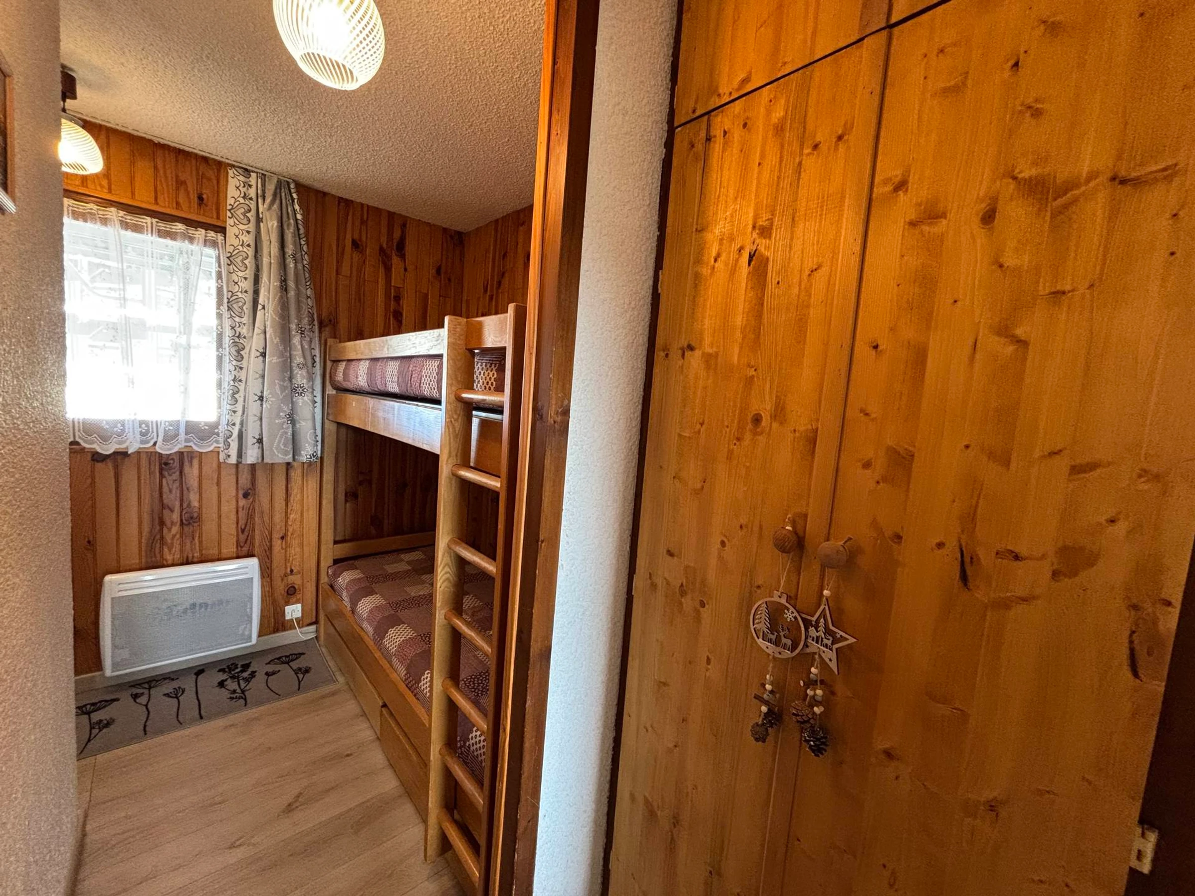 - cabina séparée du séjour par une porte : 2 lits superposés,