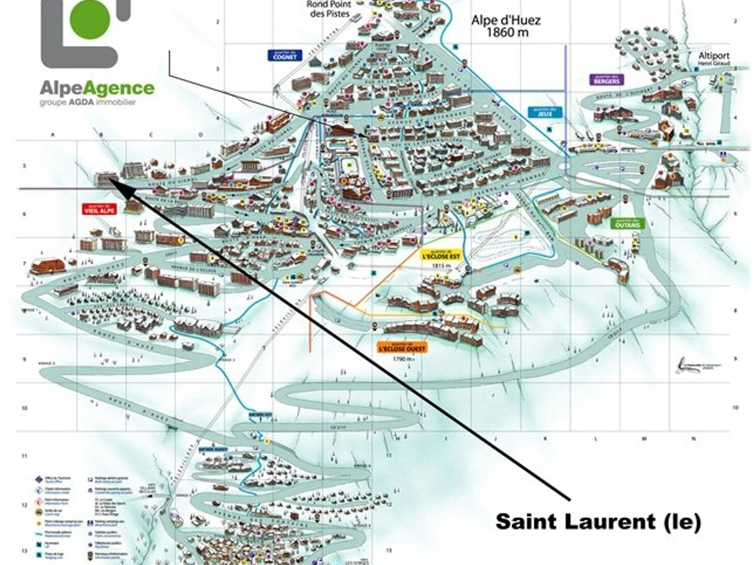 Residencia situada en el barrio de Cognet, pendiente que se une al telesilla Grande Sure al pie del edificio. A la llegada del telesilla Grande, posibilidad de bajar por la lúdica pista de la Granja de Marcel para llegar al inicio de las pistas de Grandes Rousses y de la ESF. Parking reservado para el edificio, sujeto a disponibilidad.