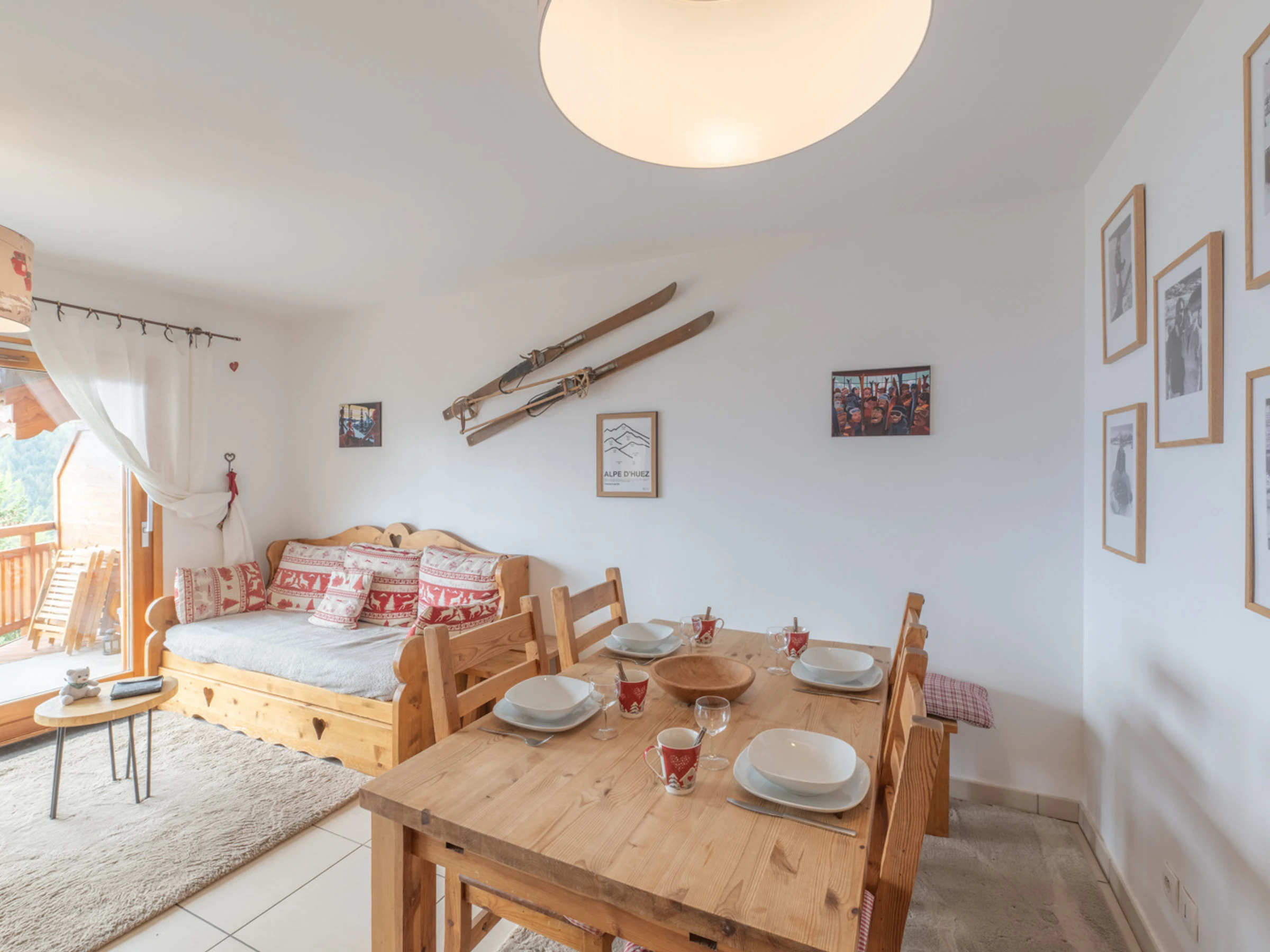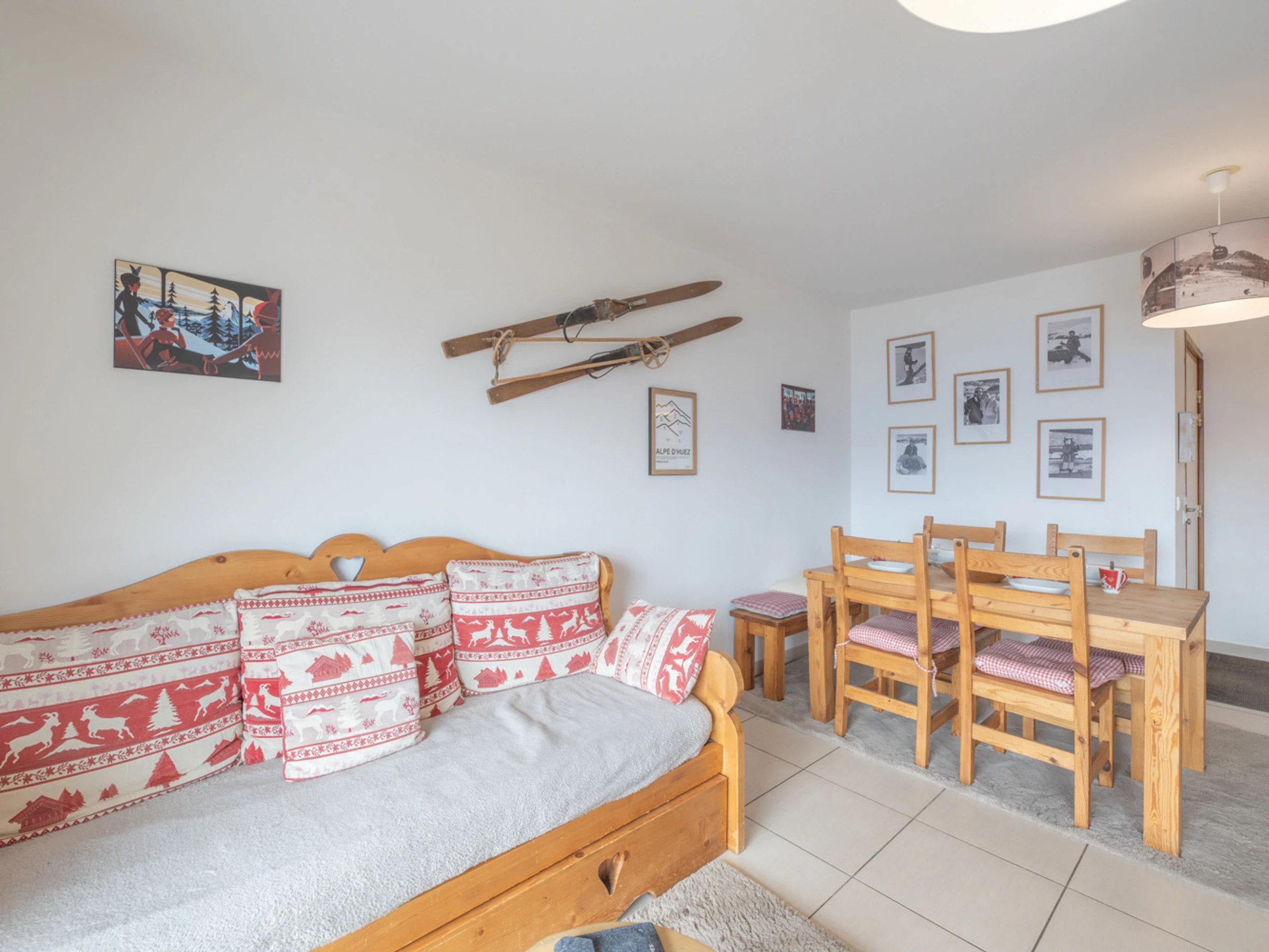 Los residentes pueden saborear la sencillez de los momentos compartidos con una copa de vino caliente en la terraza, mientras escuchan el suave murmullo del viento en los abetos. Su proximidad a las tiendas del distrito de Vieil Alpe lo convierte en un lugar de vacaciones ideal, donde cada estación revela sus encantos. Este condominio ilustra a la perfección el equilibrio entre la convivencia y la serenidad, haciendo de cada estadía una hermosa escapada al corazón de las montañas.