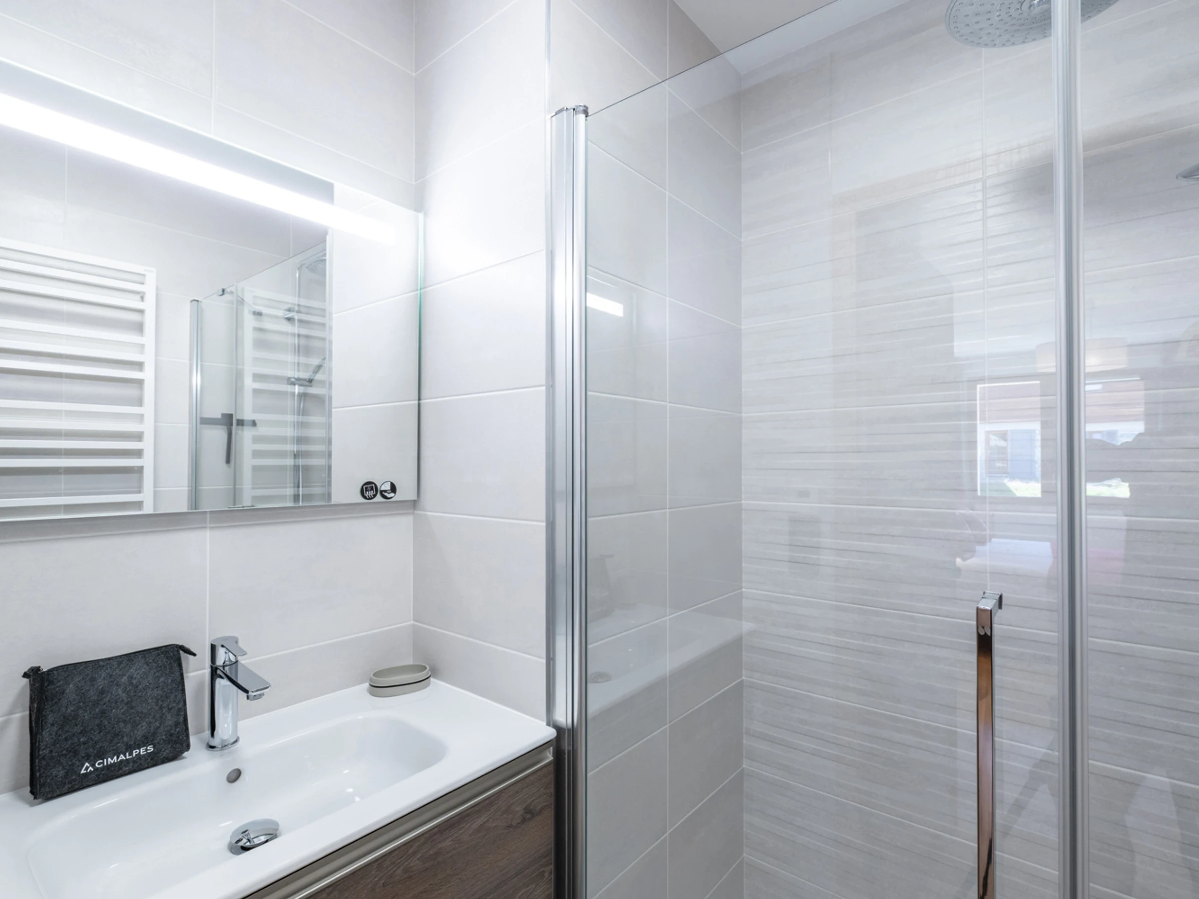 - 1 dormitorio doble con baño privado, cama doble y baño con ducha
