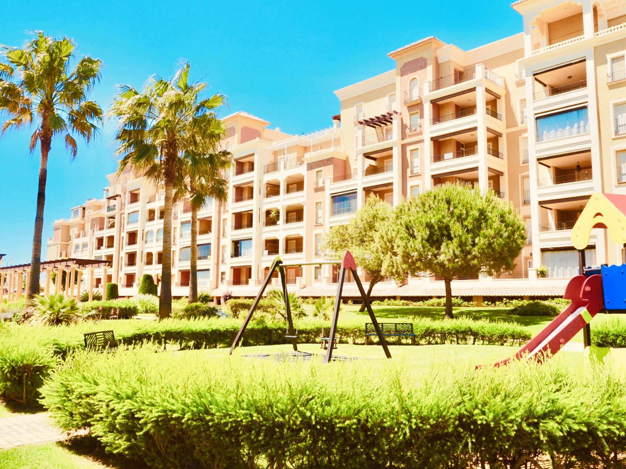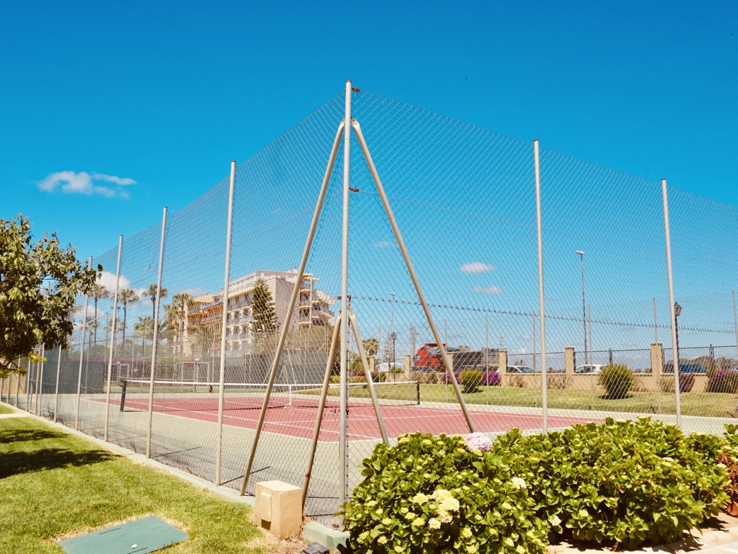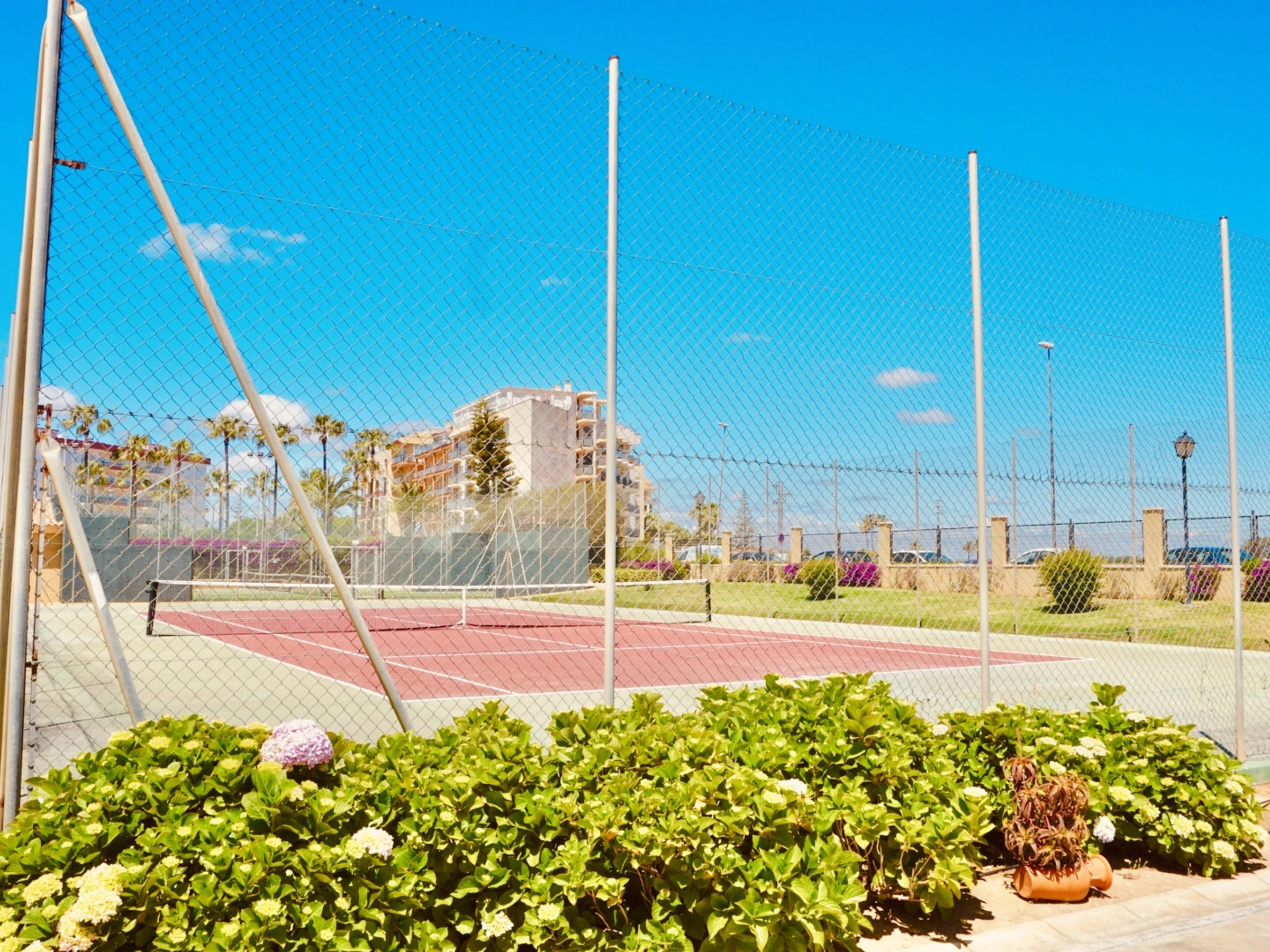 Dispone de dos piscinas (adultos e infantil), pistas de pádel, pista de tenis y parque infantil.