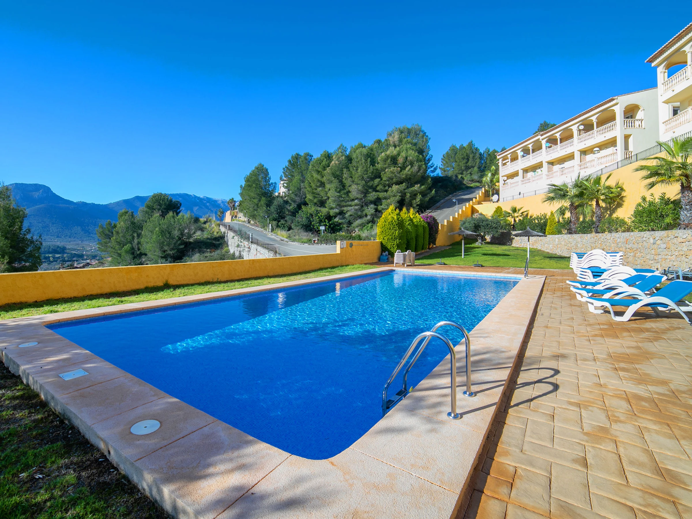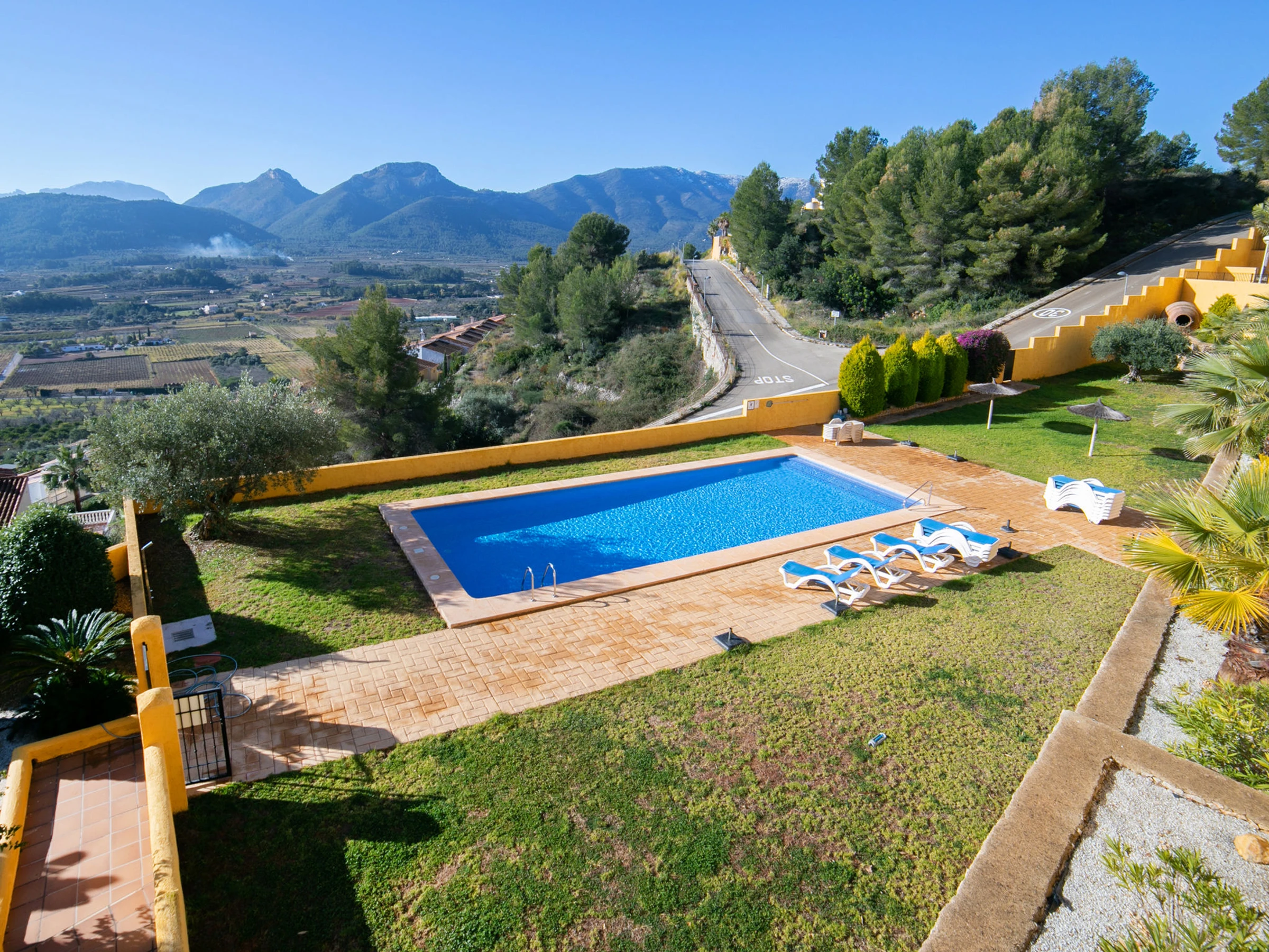 Urb. La Almazara: Casa semiadosada "Residencial Bellavista", agradable. A 2 km del centro de Jalón/Xaló, a 9 km del centro de Benissa, lugar aislado, tranquilo, soleado en una pendiente, a 16 km del mar, a 16 km de la playa. Comunitario: jardín con césped, piscina rectangular (Disponible por temporada: [hidden] - [hidden] con escalera interior. Ducha exterior, Aparcamiento junto a la casa. Supermercado 1 km, restaurante 2 km, bar 2 km, parada autobús 2.5 km, playa de arena "de Calpe" 16 km. Atracciones en los alrededores: Aqualandia, Terra Mítica, Mundomar, Terra Natura, Benidorm Palace (Benidorm), Fonts de l'Algar (Callosa d'en Sarriá).