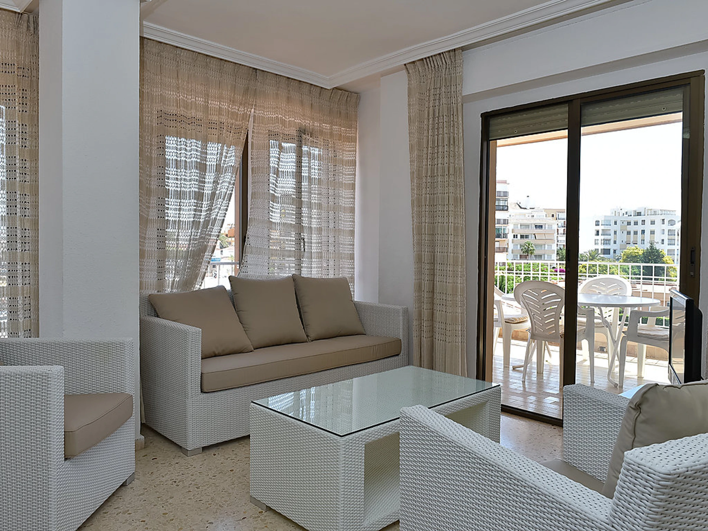Apartamento de 5 estancias 80 m2 en el 2° piso. Luminoso, con mobiliario funcional: salón-comedor con TV, DVD y ventilador. Salida a la terraza. 1 dorm. con 2 camas. Salida al balcón. 1 dorm. con 1 cama. Salida al balcón. 1 dorm. con 1 cama de matrimonio (2 x 150 cm), ventilador. Salida a la terraza. 1 dorm. con 2 camas. Cocina (horno, microondas, congelador). Baño/bidet/WC, ducha/WC. Terraza 10 m2. Muebles de terraza. Vista muy bonita al mar. El alojamiento dispone de: lavadora. Internet (Wifi, gratis). AT443417A