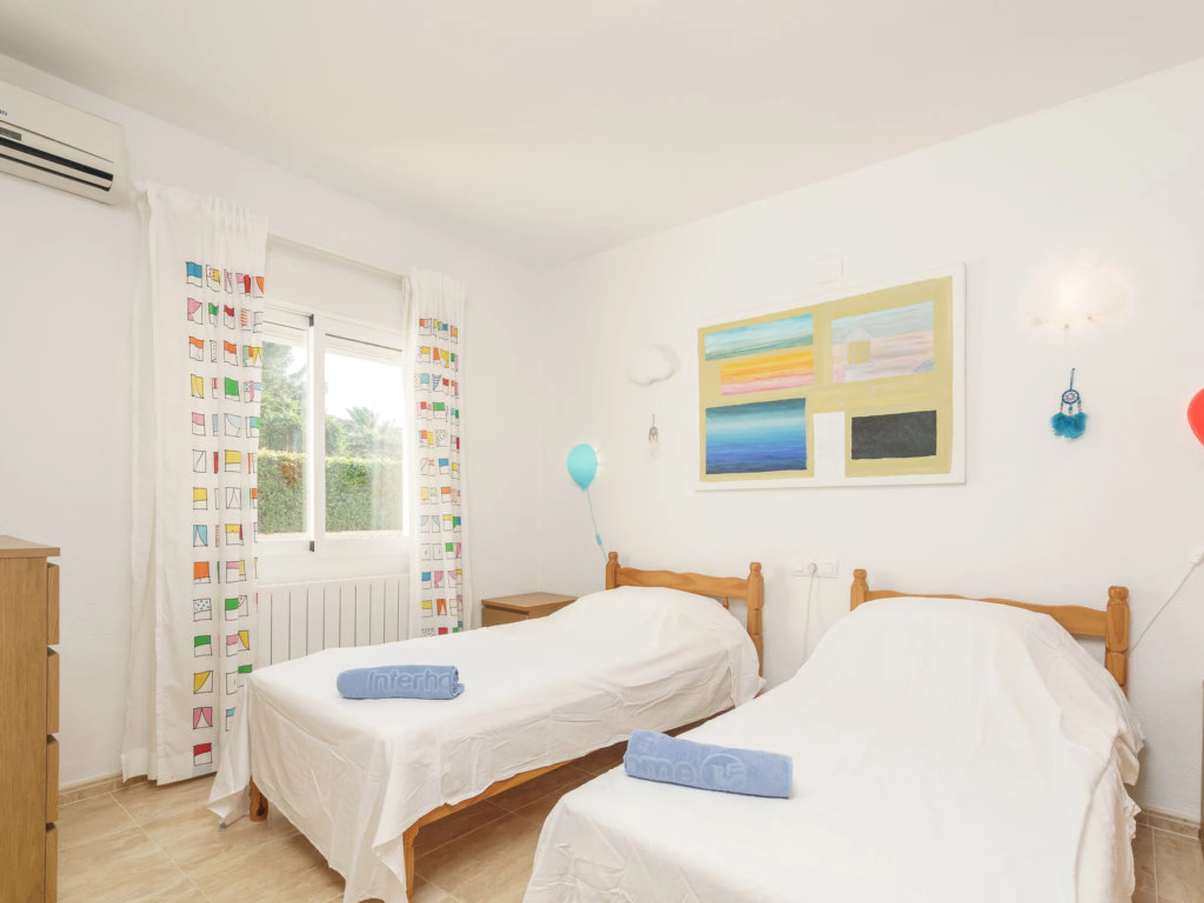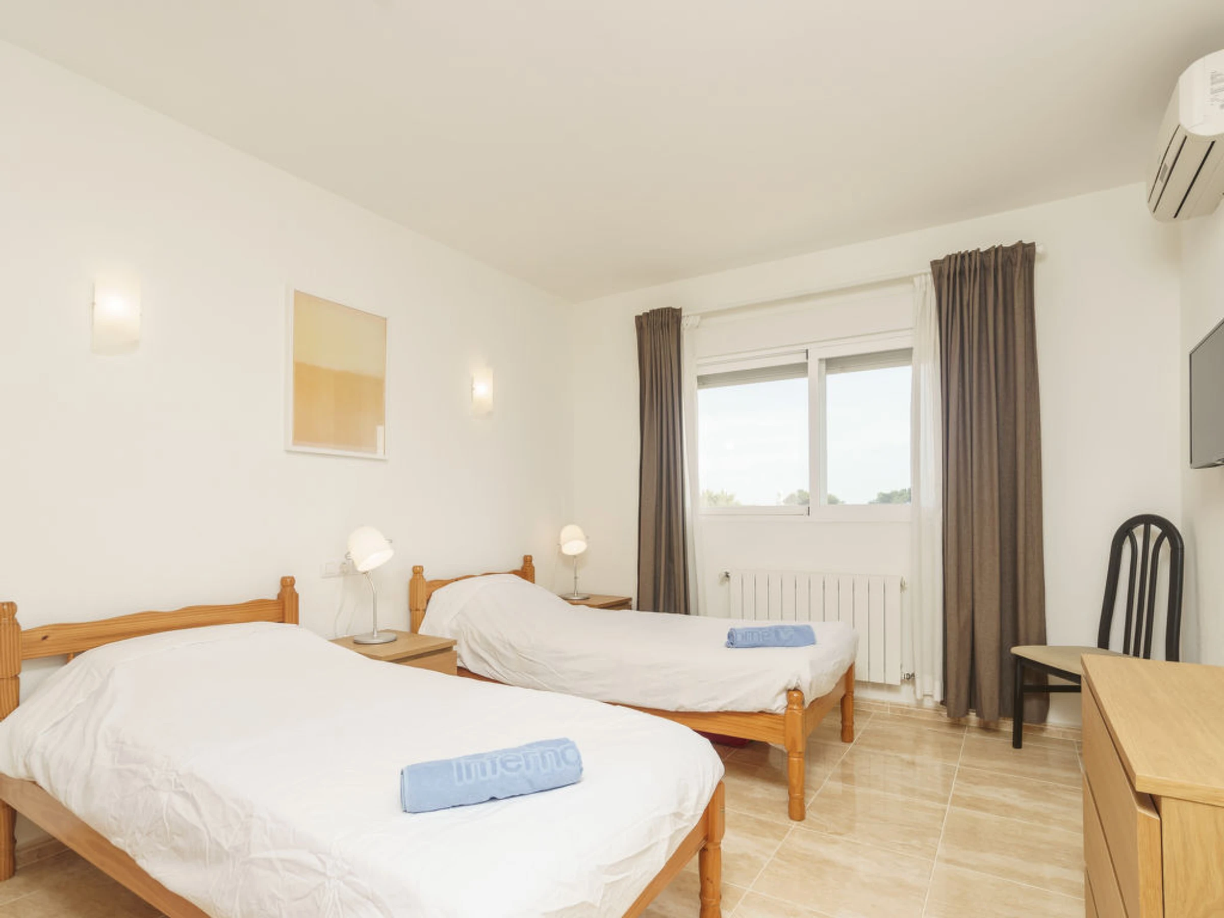 Casa 5 estancias 220 m2. Espacioso y luminoso, con mobiliario confortable y bonito: salón-comedor con estufa de azulejos y TV cable. Salida a la terraza. 1 dorm. con 1 cama de matrimonio (150 cm, 200 cm de longitud), aire acondicionado. Salida a la piscina. 1 dorm. con 2 camas y aire acondicionado. Cocina (horno, lavavajillas, 3 Placas de inducción, microondas, congelador, cafetera eléctrica). Salida a la terraza. Baño/bidet/WC. Planta superior: 1 dorm. con 1 cama de matrimonio (200 cm, 200 cm de longitud), aire acondicionado. Salida a la terraza. 1 dorm. con 2 camas, TV y aire acondicionado. Ducha/bidet/WC, doble lavabo. Muebles de terraza, barbacoa, tumbonas (8). El alojamiento dispone de: lavadora. Plaza de aparcamiento (vallada, 2 Coches). A tener en cuenta: adecuado para familias. Casa para no fumadores. AT438534A