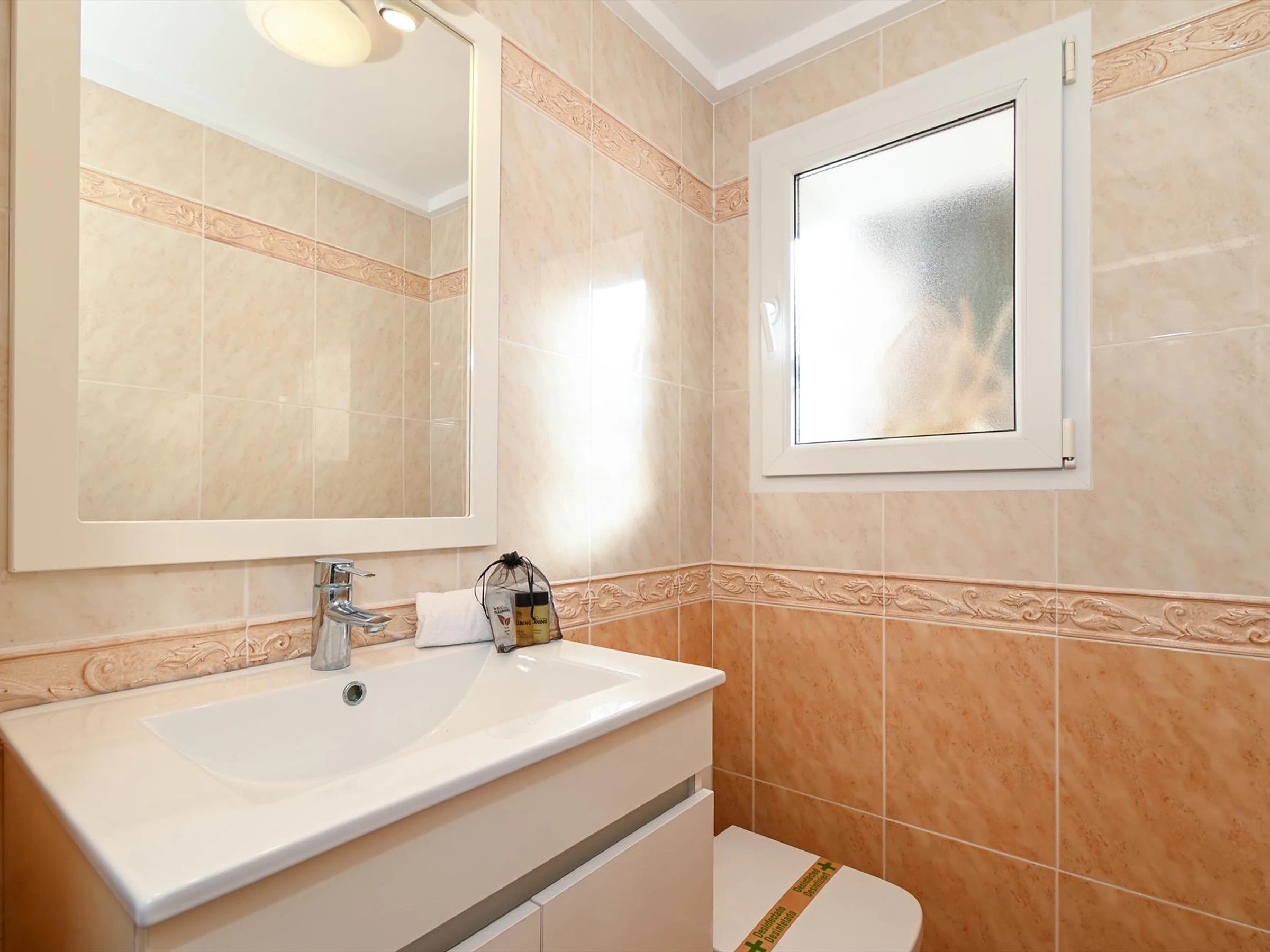 * baño con lavabo individual, ducha y WC Exterior de la villa