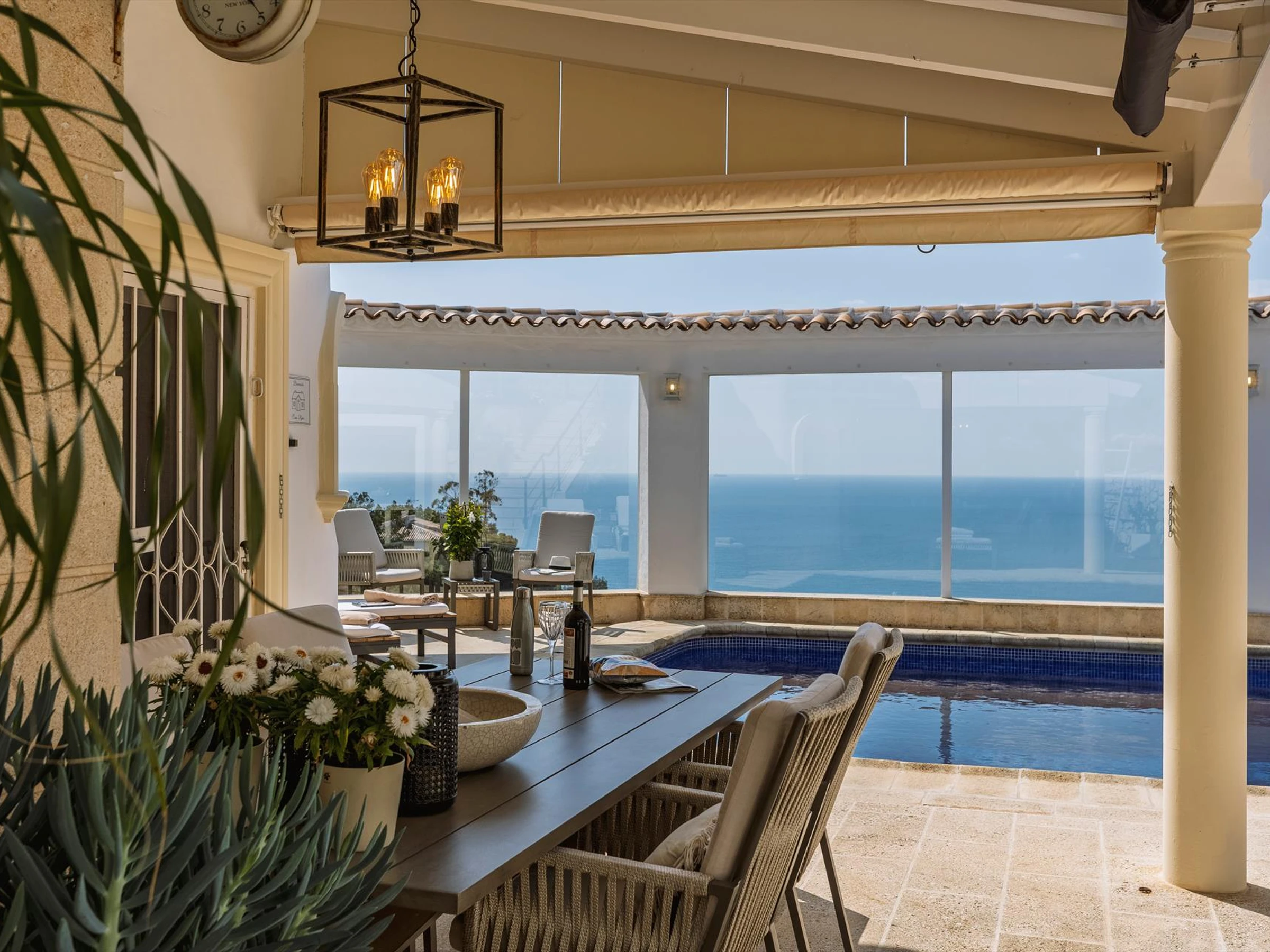 ofrece privacidad, una hermosa piscina y maravillosas vistas al mar. Su confort