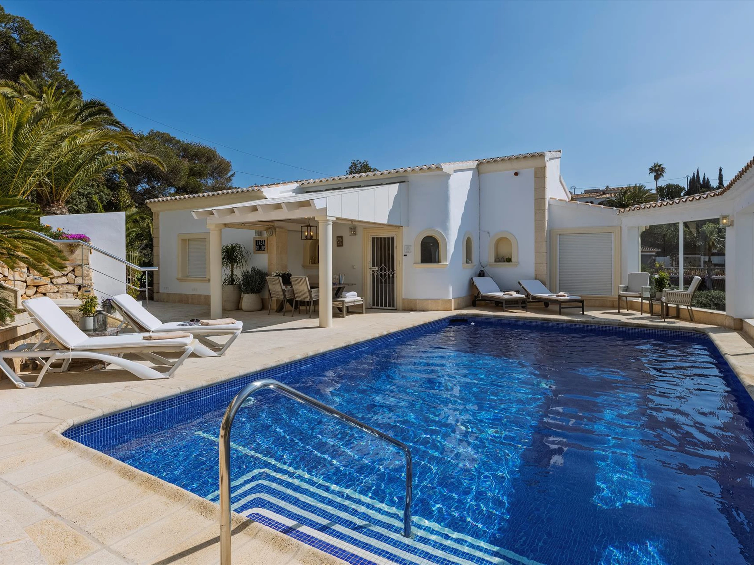 Maravillosa y encantadora villa en Jávea, Costa Blanca, España con piscina privada para 6 personas. La casa está situada en una zona residencial de playa y a 3 km de la playa de La Granadella, Jávea.