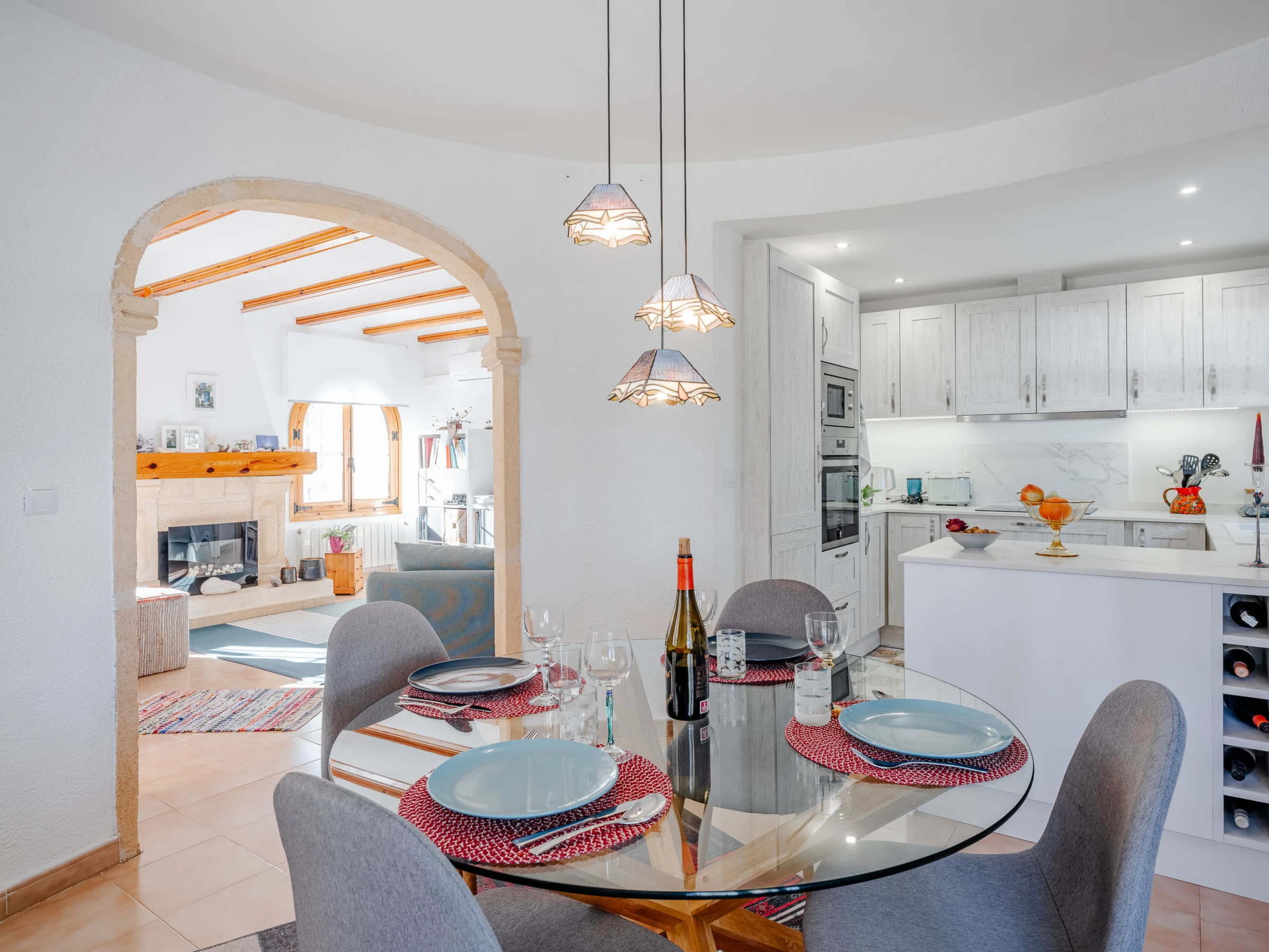 "Casa Sol & Sal", casa 3 estancias 120 m2 en 2 plantas. Espacioso y luminoso, con mobiliario confortable y de estilo: salón-comedor con TV satélite, aire acondicionado y bomba de calor, caliente. Salida a la terraza, al balcón cubierto, a la piscina. Cocina abierta (horno, lavavajillas, 3 Placas de inducción, tostadora, hervidor de agua eléctrico, microondas, congelador, cafetera eléctrica, Cápsulas de café (Krups) extra). Planta superior: 1 dorm. con 1 cama de matrimonio (160 cm, 200 cm de longitud), baño/WC, aire acondicionado, ventilador y bomba de calor, caliente. 1 dorm. con 1 cama de matrimonio (160 cm, 200 cm de longitud), aire acondicionado y bomba de calor, caliente. Ducha/WC. Terraza grande. Muebles de terraza, barbacoa, tumbonas, porche, rincón para sentarse. El alojamiento dispone de: lavadora, plancha, secador de pelo. Internet (Wifi, gratis). Plaza de aparcamiento. [hidden] // Reg. Nr.: ESFCNT00000307100035409400000000000000000000000000005