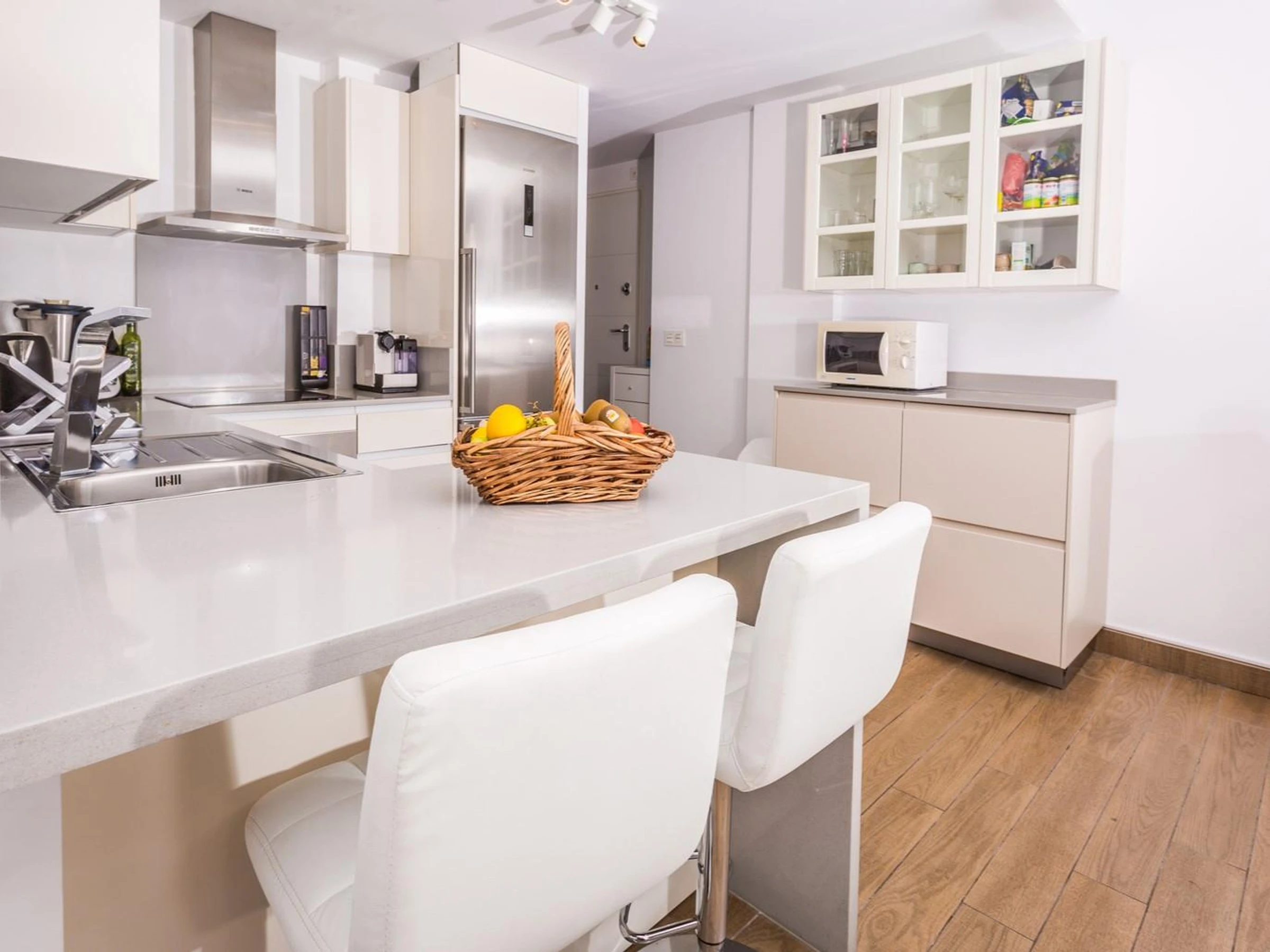 * Cocina con placa eléctrica, horno eléctrico, microondas, lavavajillas,