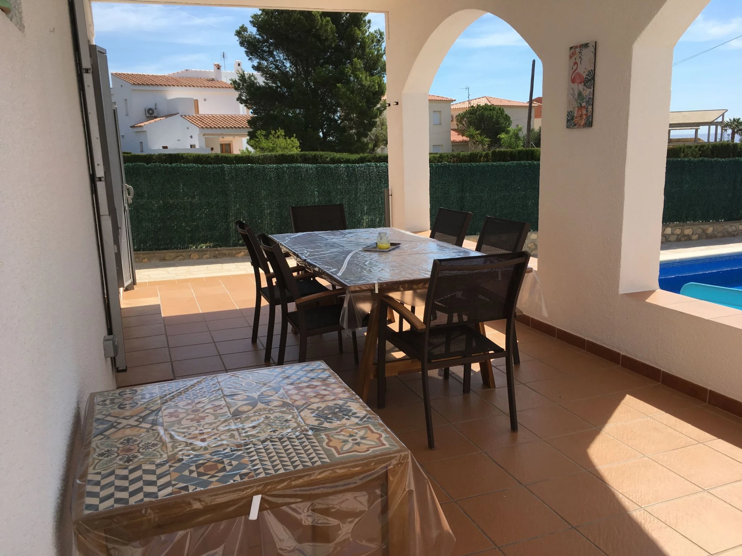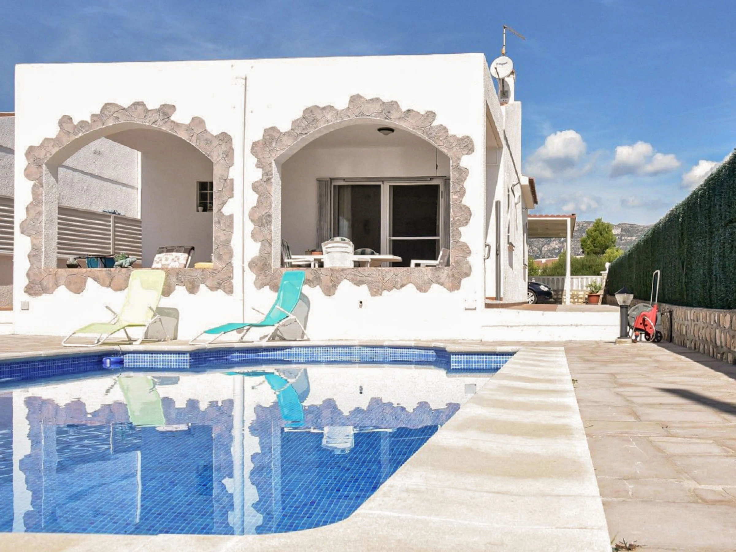 Urb. Calafat a 8 km de L'Ametlla de Mar: Villa "Cala Almadrava", agradable, confortable. A 100 m del mar, a 100 m de la playa. Privado: terreno (vallada), piscina (8 x 4 m, 80 - 190 cm de profundidad, Disponible por temporada: [hidden] - [hidden] Ducha exterior, muebles de jardín, barbacoa, mantenimiento de la piscina a través del propietario/jardinero aparcamiento junto a la casa. Supermercado, restaurante, bar 200 m. Puerto deportivo 500 m. Atracciones en los alrededores: Parque Portaventura 48 km, parque Aquopolis 51 km, parque natura del Delta del Ebro 35 km, Tarragona 57 km, Reus 48 km, Barcelona 153 km. A tener en cuenta: coche recomendable. Grupos de jóvenes sólo bajo petición.