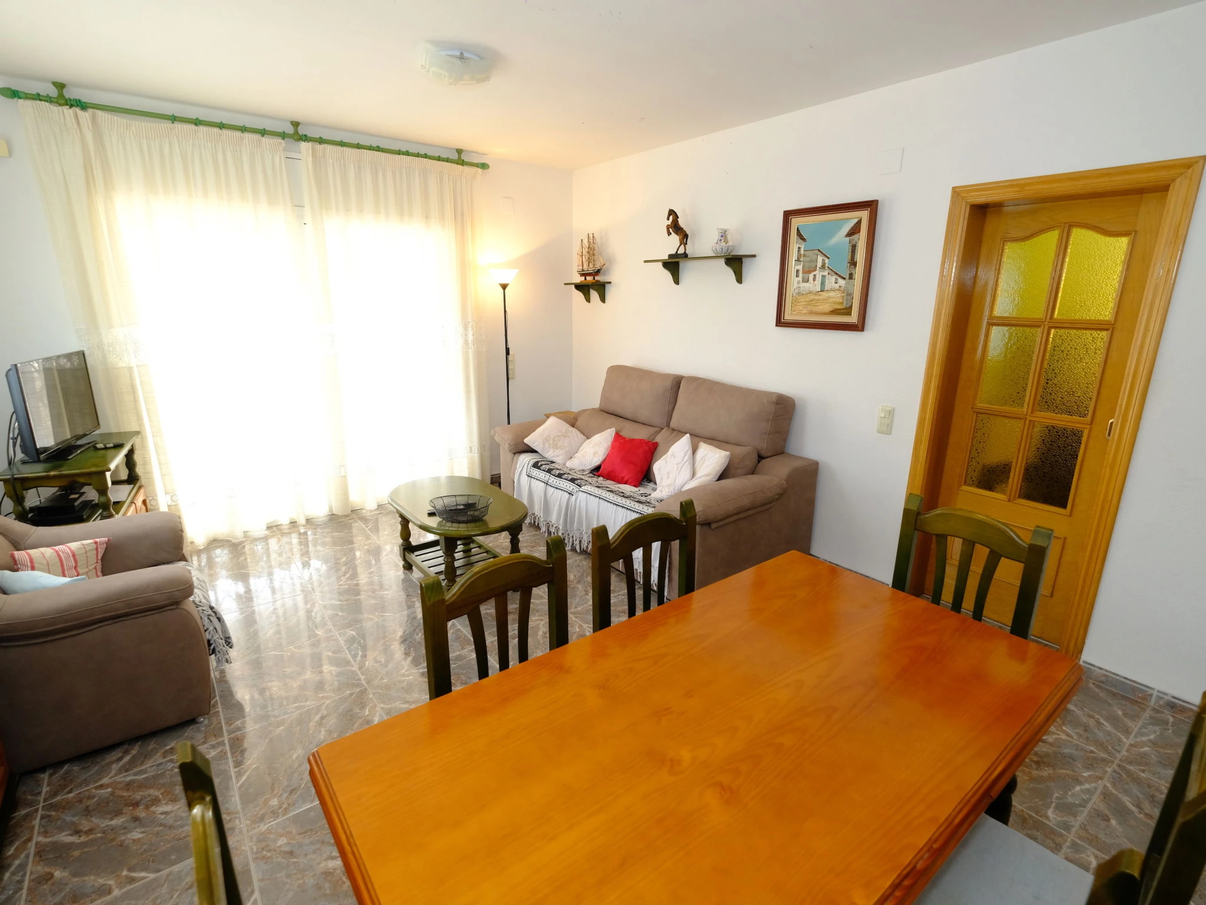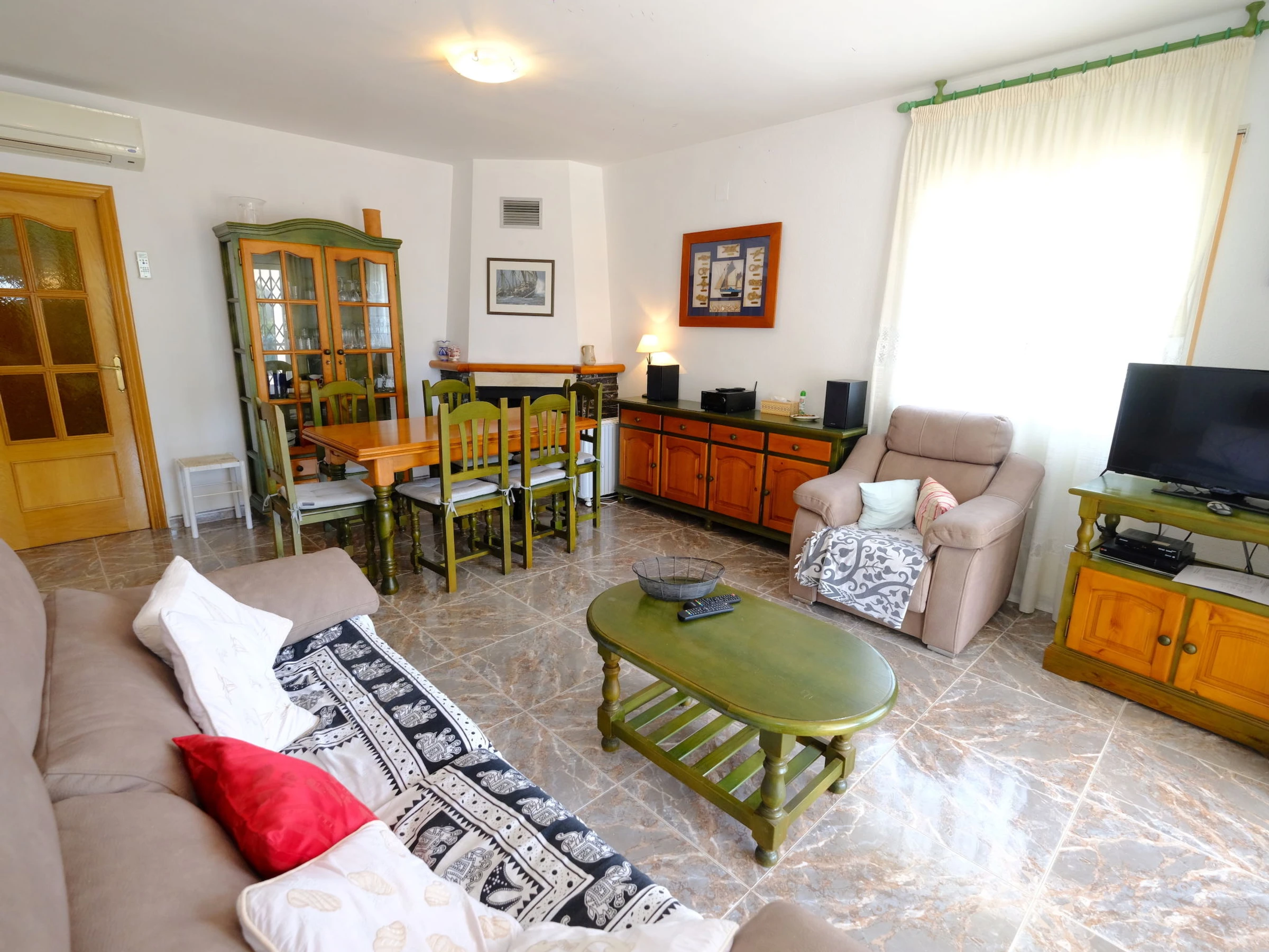"Cala Almadrava", casa 4 habitaciones 75 m2. Con mobiliario funcional y confortable: salón-comedor con mesa de comedor, TV satélite, TV digital y aire acondicionado. 2 dorm., cada habitación con 1 cama de matrimonio (150 cm), ventilador. 1 dorm. con 1 x 2 literas (90 cm). Cocina (horno, lavavajillas, 4 placas de vitrocerámica, hervidor de agua eléctrico, microondas, cafetera eléctrica). Baño/bidet/WC, ducha/WC, WC separado. Ningún tipo de calefacción. Muebles de terraza, barbacoa. Vista al mar. El alojamiento dispone de: lavadora, plancha, secador de pelo. Internet (Wifi, gratis). Plaza de aparcamiento junto a la casa. A tener en cuenta: adecuado para familias. 1 mascota / perro. TV solamente ES, FR. [hidden]