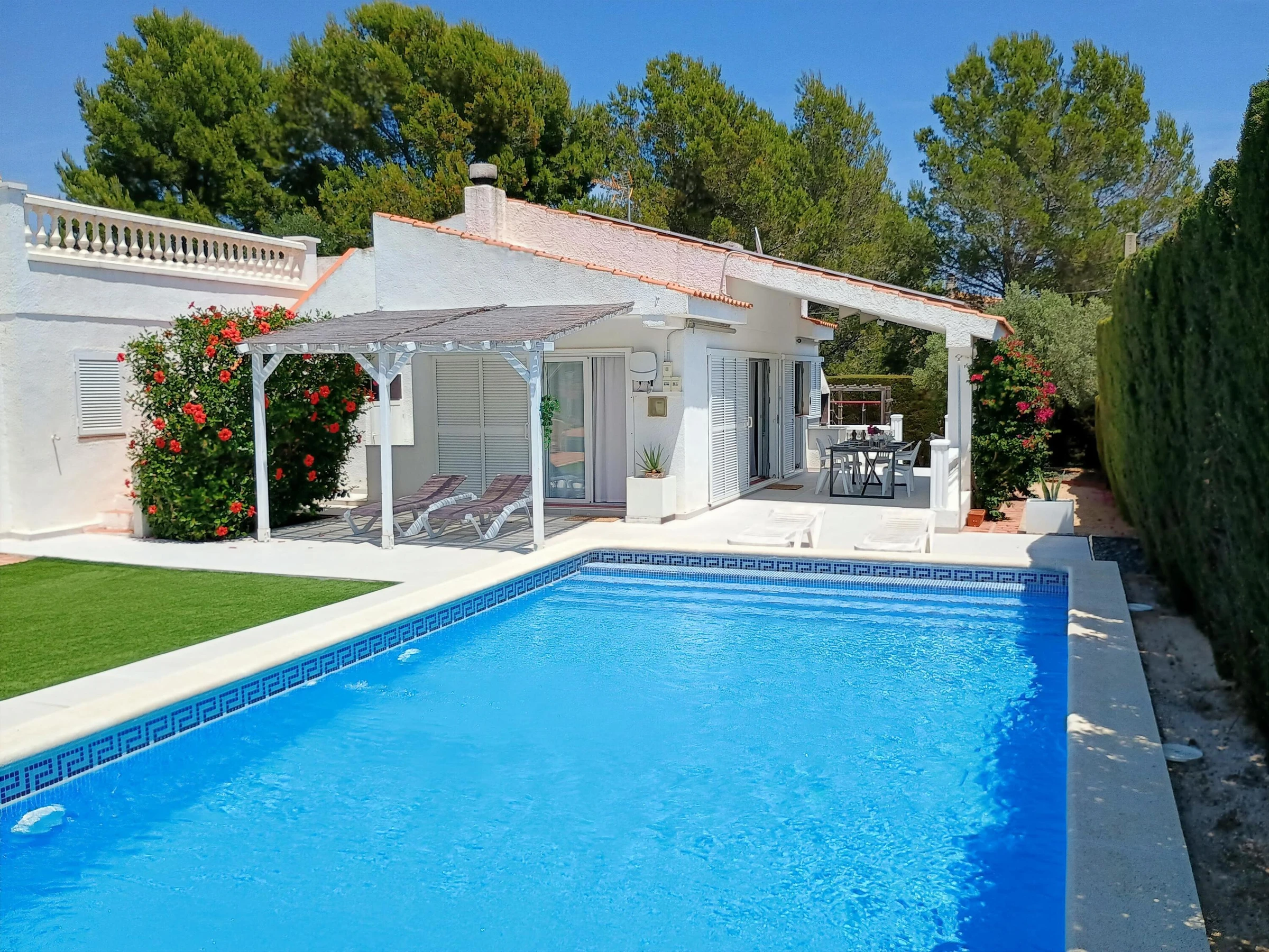 Chalet independiente construido en una parcela de 700 m2, jardín con césped y piscina de 8x4 m. Situado a unos 300 m. del mar, a 500 m. del Puerto Deportivo de Calafat y unos 600 m. de la playa de arena fina "La Almadrava". La vivienda (sin contar terrazas) tiene una superficie de 100 m2 y consta de una habitación con cama de matrimonio y una cama simple, una habitación con literas de la cual se accede a otra habitación con cama de matrimonio, un aseo, un baño con bañera, cocina con barra americana, sala de estar comedor, desde el que se sale a porche de 20 m2 cubierto con barbacoa. La casa dispone de ducha exterior. Dispone de menaje de cocina, vajilla, cristalería, etc., encimera de gas, horno eléctrico, nevera con congelador, lavadora, lavavajillas, microondas y televisor. Este alojamiento da la bienvenida a familias y grupos de adultos responsables, pero no permite eventos o fiestas de jóvenes. DESCRIPCION DE LA ZONA La Costa Dorada es la más laureada de Catalunya con 37 playas distinguidas con la Bandera Azul, por su calidad y por su excelente estado de conservación. Son playas y pequeñas calas de ensueño de aguas turquesas y cristalinas, la mayoría sin aglomeraciones y algunas de ellas vírgenes. Un escenario perfecto para recorrer a pie a través de la ruta GR-92, hacer una excursión en bicicleta, barco o kayak, o practicar submarinismo y descubrir los secretos que yacen en el fondo del Golfo de Sant Jordi. En la costa Dorada, se encuentra el frente marítimo de Calafat,donde encontramos la urbanización, circuito de velocidad y puerto con el mismo nombre. Calafat urbanización tranquila y de alto standing, con más de 2 Km de costa …Está situada en el término municipal de la población marinera de L’Ametlla de Mar, conocida por la alta calidad de su pescado. A 20 minutos hacia el sur encontraréis el Parque Natural del Delta del Ebro y podéis probar alguno de los restaurantes donde se cocina el mejor arroz del país. Podrás sumergirte con los atunes más grandes del mundo y disfrutar de momentos apasionantes, navegando en un moderno e innovador catamarán. PorAventura World es un destino vacacional único lleno de diversión para toda la familia, a sólo 30 minutos de Calafat.