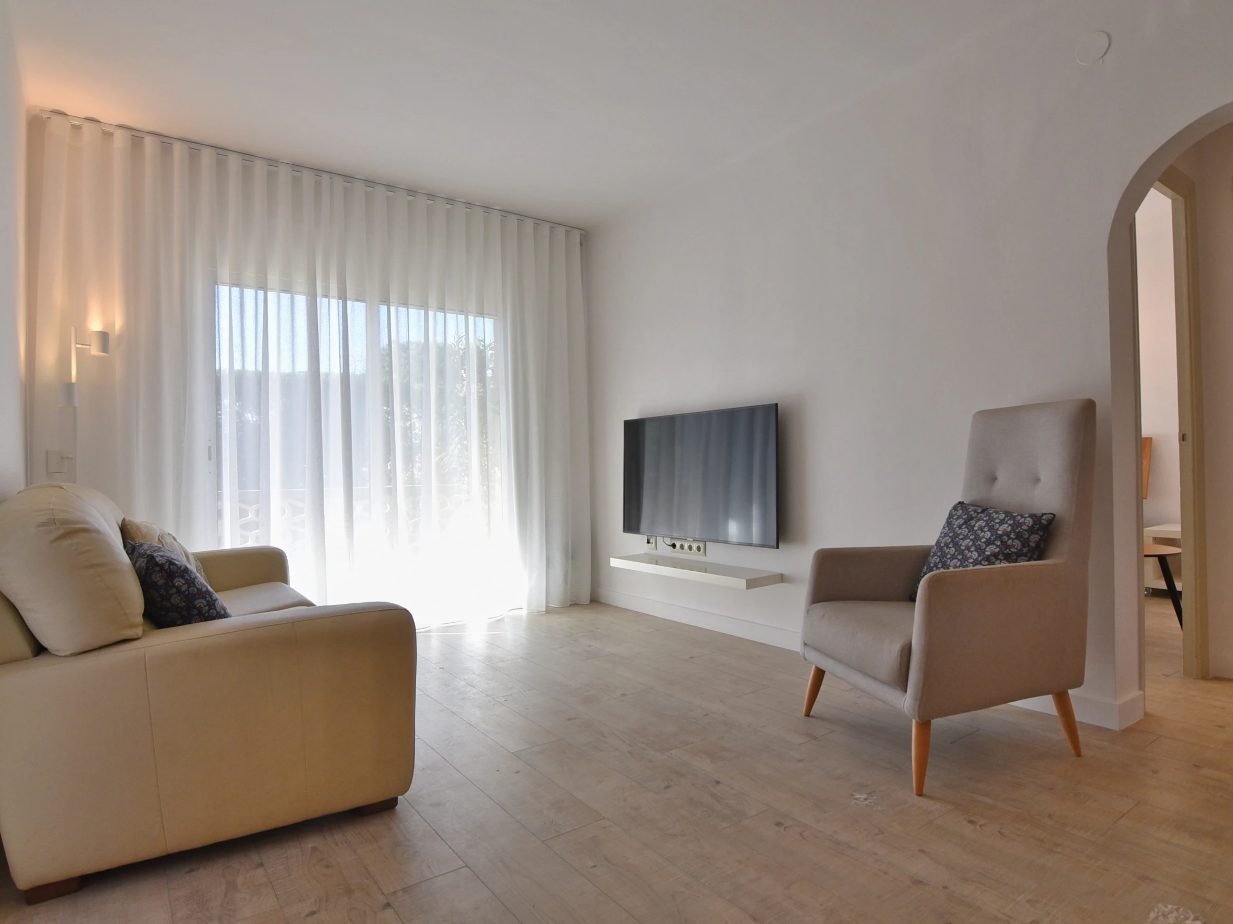 El salón dispone de aire acondicionado, es suficiente para llegar a todas las estancias del alojamiento.
