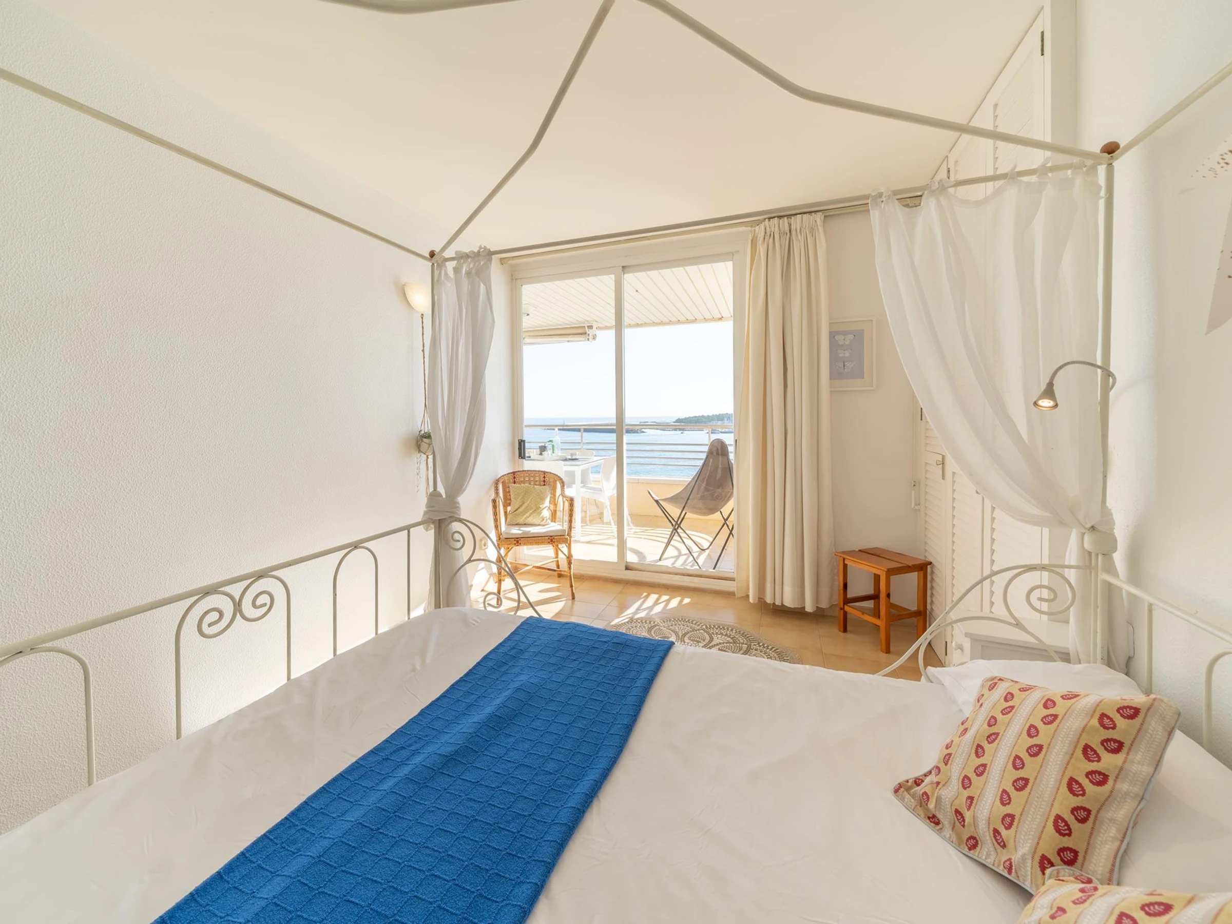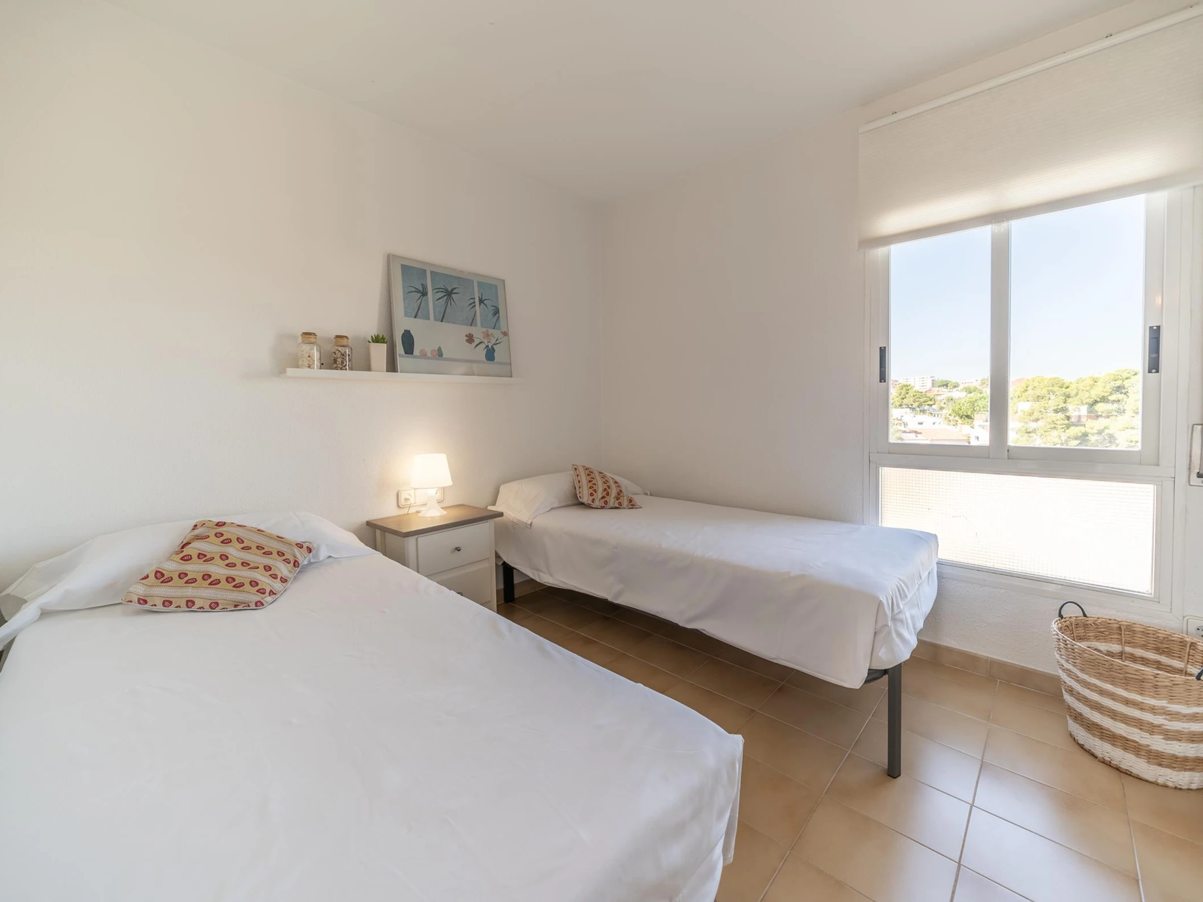 El apartamento dispone de una cocina independiente, un salón-comedor con salida a la terraza, donde podrá disfrutar de comidas con familia y amigos contemplando la magnífica vista al mar. Tiene dos habitaciones, la primera con una cama doble, salida a la terraza y vista al mar; una segunda con dos camas individuales así que dos cuartos baño con ducha.