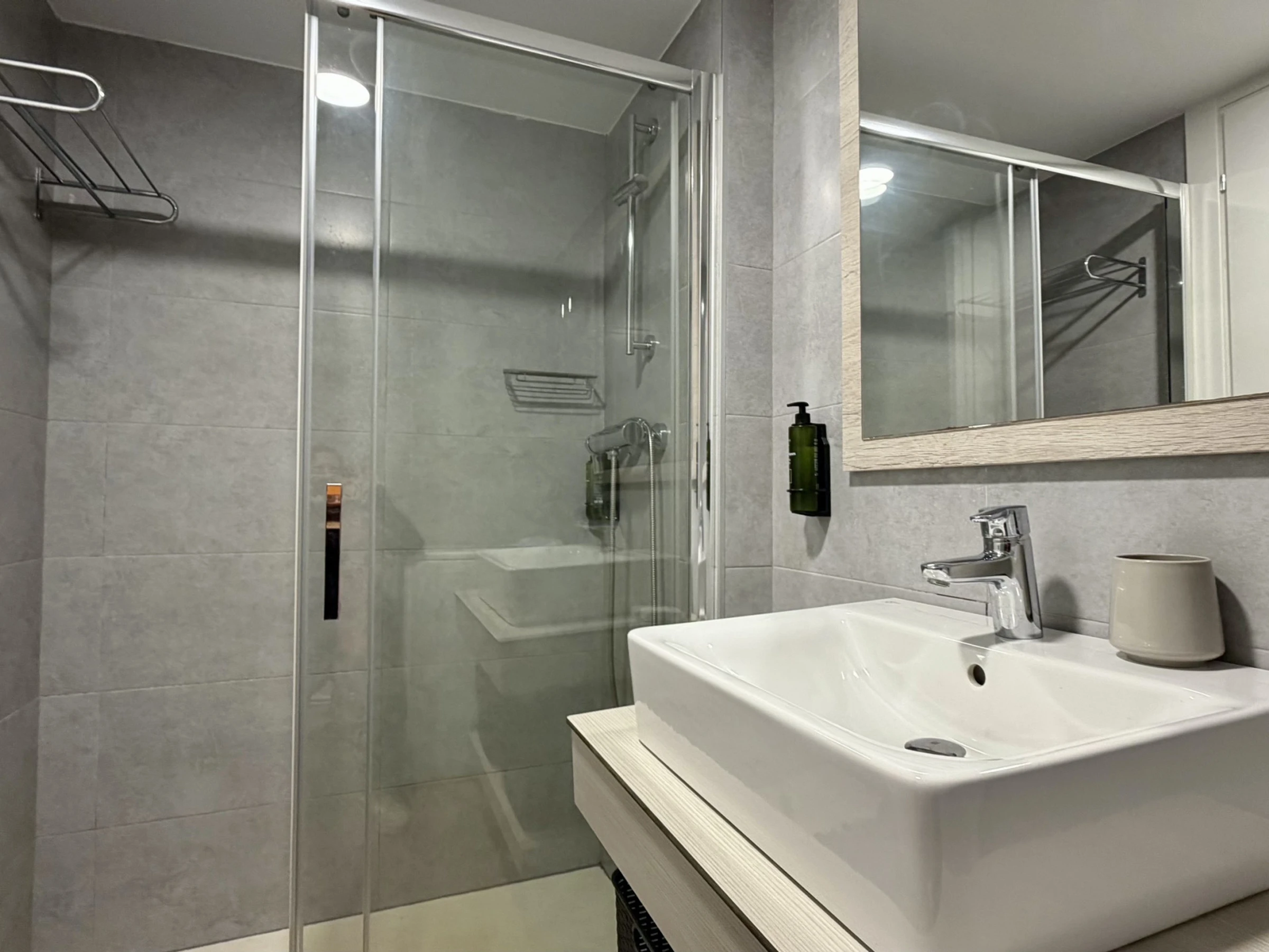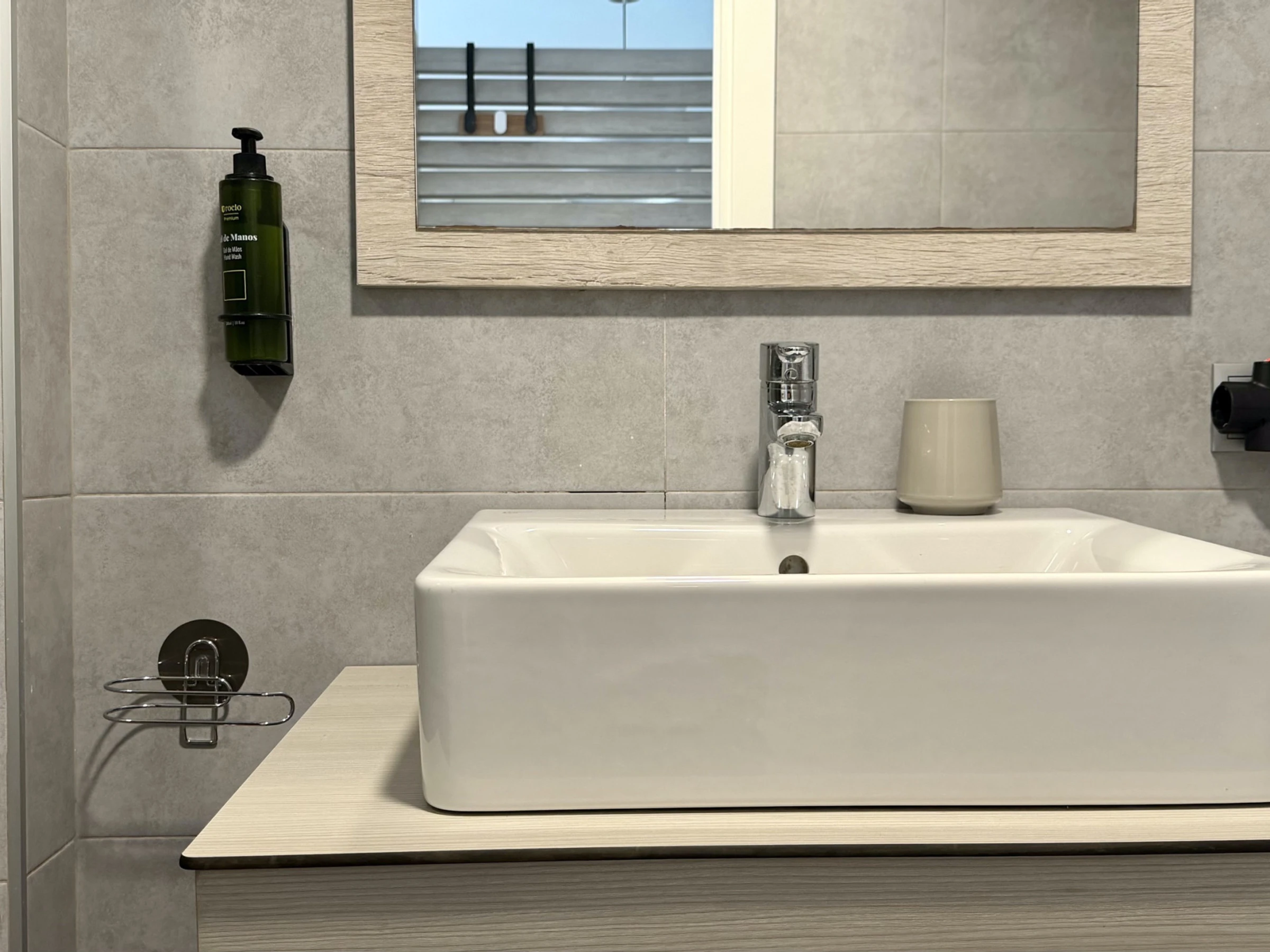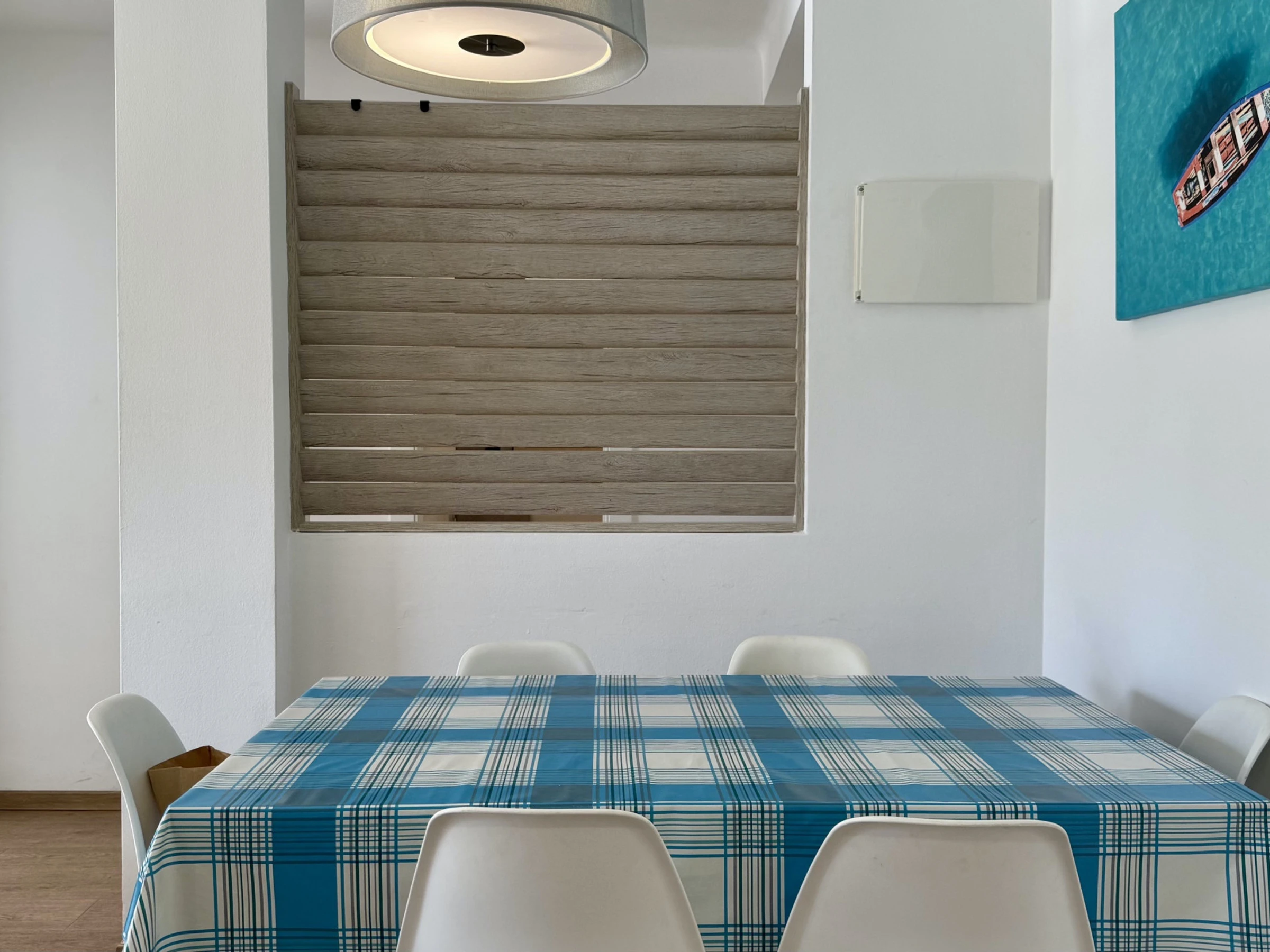 El apartamento cuenta con una cocina americana completamente equipada, ideal para preparar comidas en familia. Dispone de electrodomésticos modernos como nevera, congelador, lavadora, lavavajillas, horno, freidora, tostadora y máquina de café. La zona de cocina está diseñada para facilitar la preparación de comidas y compartir momentos juntos.