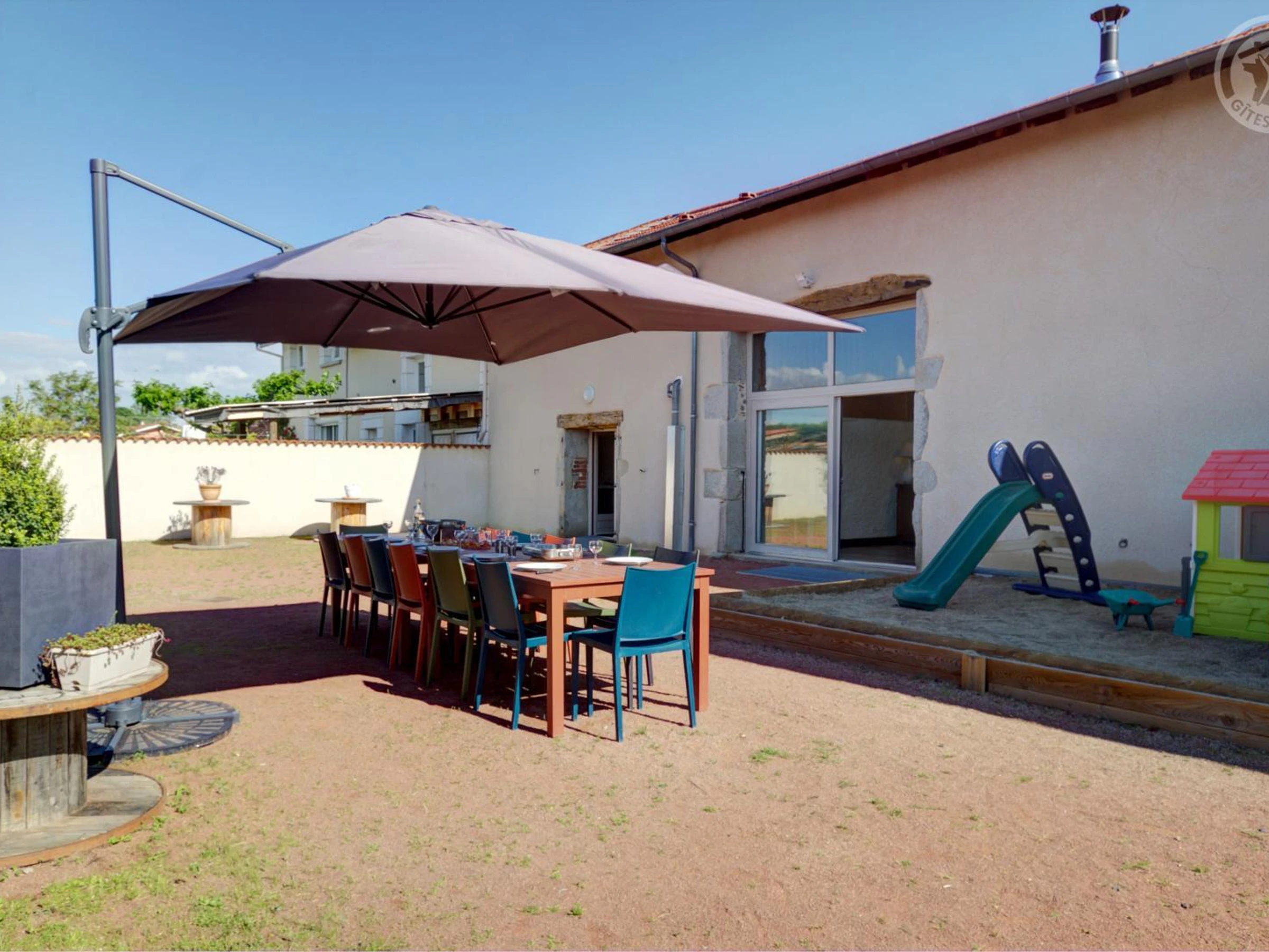 Casa rural de 230m² (planta baja + planta alta). En la planta baja, la casa rural se abre a los salones: el salón con comedor y salón de relajación (TV, futbolín), la cocina totalmente equipada con un piano para preparar deliciosos platos. En este nivel encontramos un amplio dormitorio con cama de 160 y baño completo con ducha y WC. La primera planta consta de dos dormitorios para dos personas (con una cama de 160 cm), un dormitorio abuhardillado (situado en el ático, ideal para adolescentes: 2 camas de 90 cm y 1 cama de 140 cm), un baño y un aseo independiente. El entrepiso está equipado con un BZ convertible que se puede utilizar como cama supletoria. El quinto dormitorio de la casa rural es una suite situada en un anexo contiguo, con entrada independiente y baño completo y privado (1 cama de 160 cm, ducha y WC). 3 dormitorios están equipados con aire acondicionado. En el corazón del pueblo, esta antigua granja típica de la llanura de Forez ha sido restaurada para ofrecerle una estancia confortable con su tribu. Dispondrá de un bonito patio cerrado de 1.000 m² donde podrá jugar a petanca, ping-pong, etc. mientras los niños están en el arenero gigante jugando con los juegos al aire libre: tobogán, casita de jardín, jaula de fútbol... Para ofrecer Para tus momentos de relax, Christian ha convertido el bonito chapi cubierto en una zona de bienestar: un SPA de 6 plazas con zona de bar. Sus momentos de intercambio podrán continuar alrededor del brasero y sus muebles de jardín. Los interiores son igual de espaciosos para que puedas encontrarte cómodamente en el gran salón (techos altos, estructura de madera, etc.) ¡con equipamiento adecuado para tu grupo! Para que tu estancia sea aún más placentera, los servicios públicos y la calefacción están incluidos.