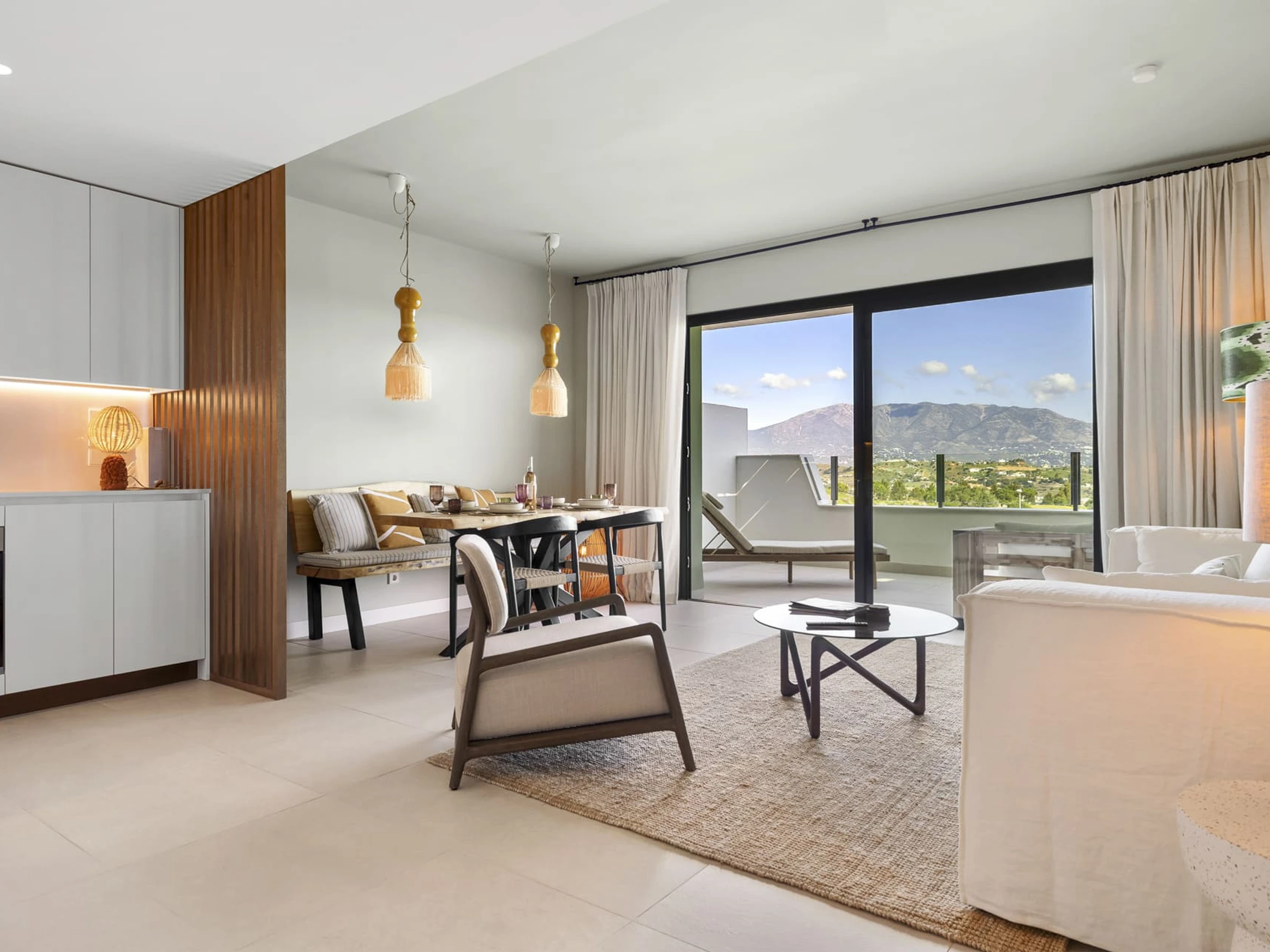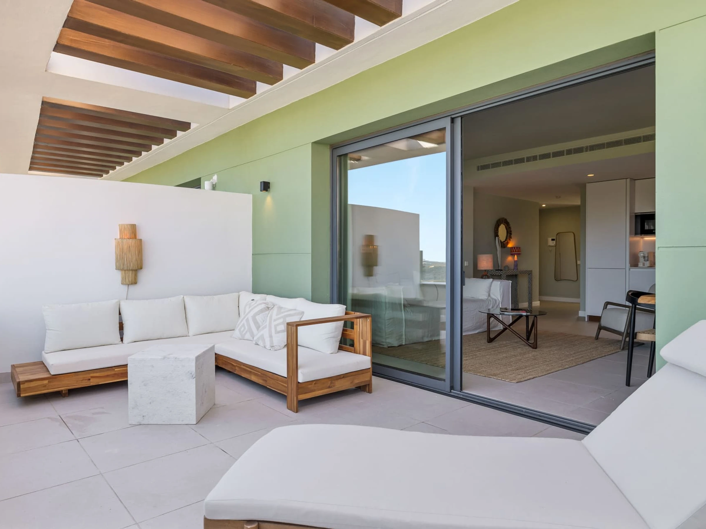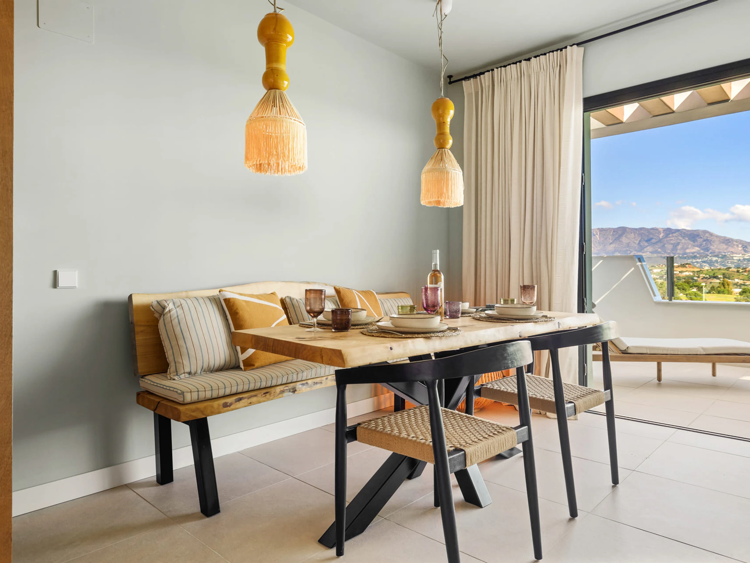 Disfruta del suave clima de la Costa del Sol desde la hermosa terraza, donde puedes tomar tu café de la mañana mientras disfrutas de las impresionantes vistas a la montaña, o admirar las estrellas por la noche. En el interior, la acogedora sala de estar con muebles cómodos, televisión y WiFi es perfecta para relajarse después de un día de exploración. Gian también cuenta con una cocina totalmente equipada, aire acondicionado, lavadora, espacio de trabajo y luces Hue para crear la atmósfera perfecta para noches acogedoras.