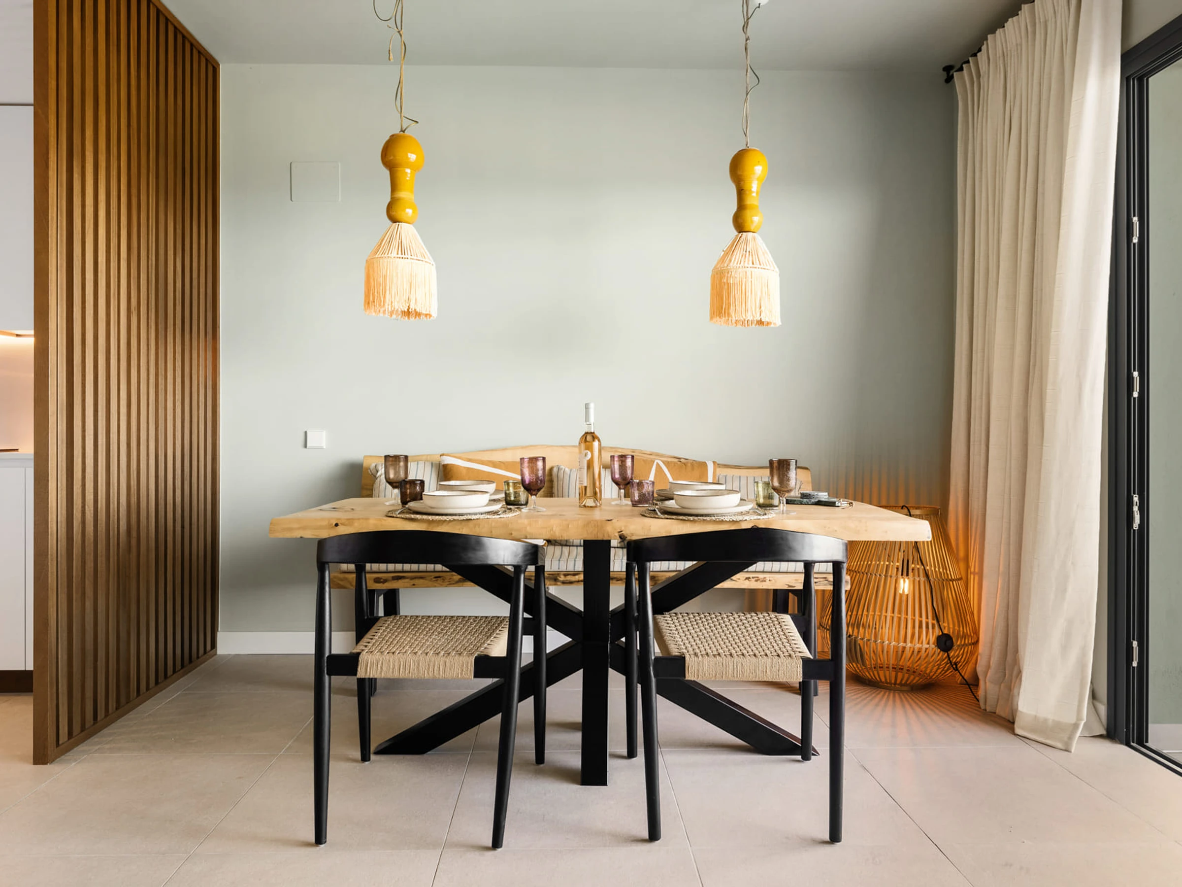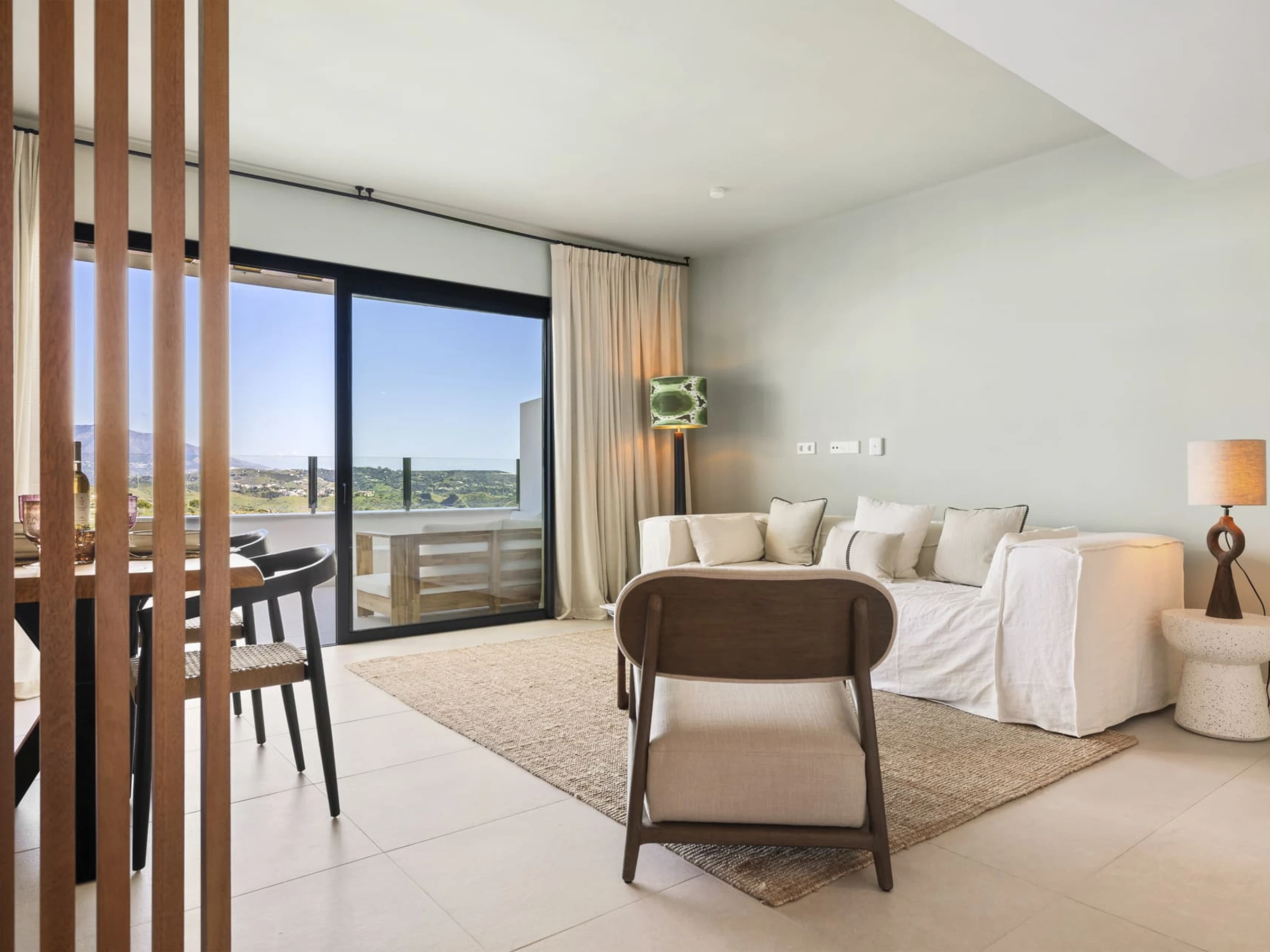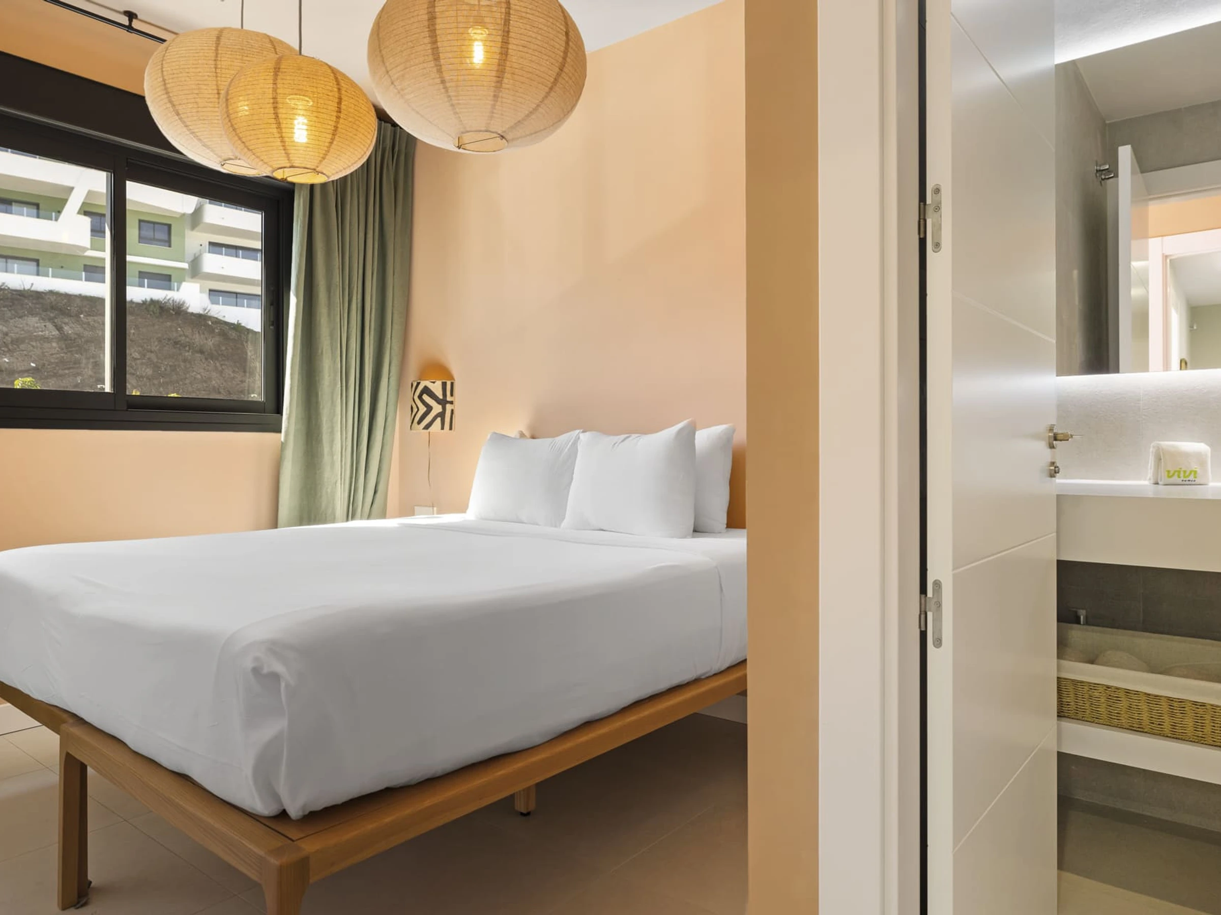 Disfruta del suave clima de la Costa del Sol desde la hermosa terraza, donde puedes tomar tu café de la mañana mientras disfrutas de las impresionantes vistas a la montaña, o admirar las estrellas por la noche. En el interior, la acogedora sala de estar con muebles cómodos, televisión y WiFi es perfecta para relajarse después de un día de exploración. Gian también cuenta con una cocina totalmente equipada, aire acondicionado, lavadora, espacio de trabajo y luces Hue para crear la atmósfera perfecta para noches acogedoras.
